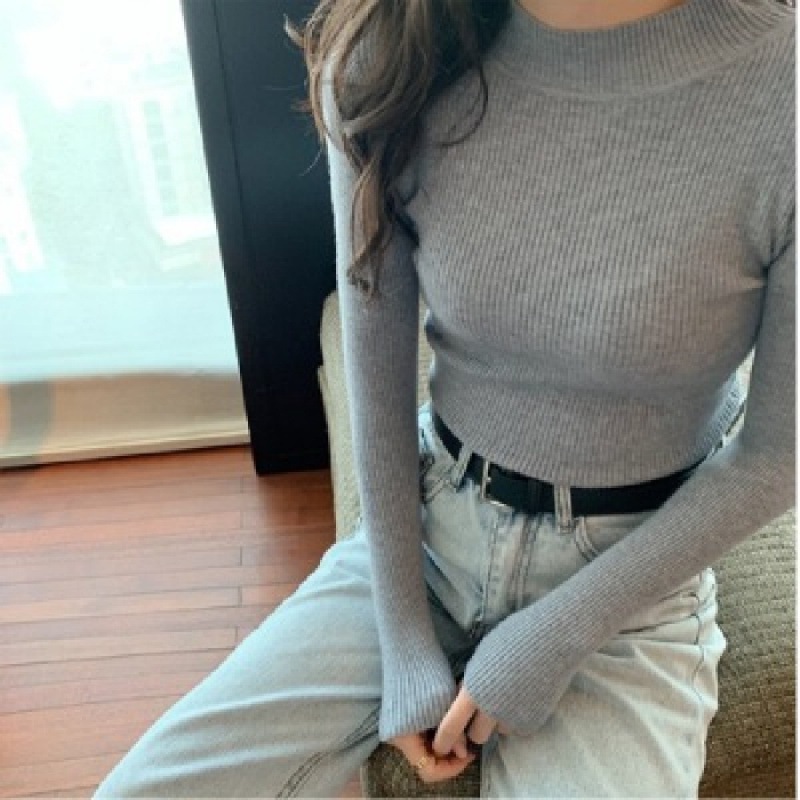 2023 가을과 겨울 새로운 하프 터틀넥 스웨터 여성용 베이스 셔츠 내부 착용 겉옷 유행 달콤한 소녀 니트 셔츠스토어 가기