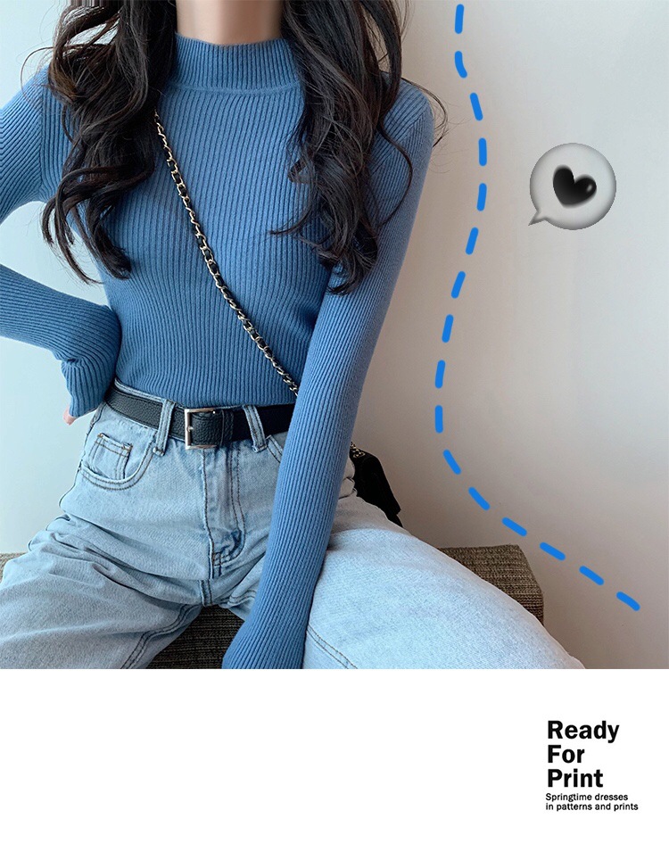 2023 가을과 겨울 새로운 하프 터틀넥 스웨터 여성용 베이스 셔츠 내부 착용 겉옷 유행 달콤한 소녀 니트 셔츠
