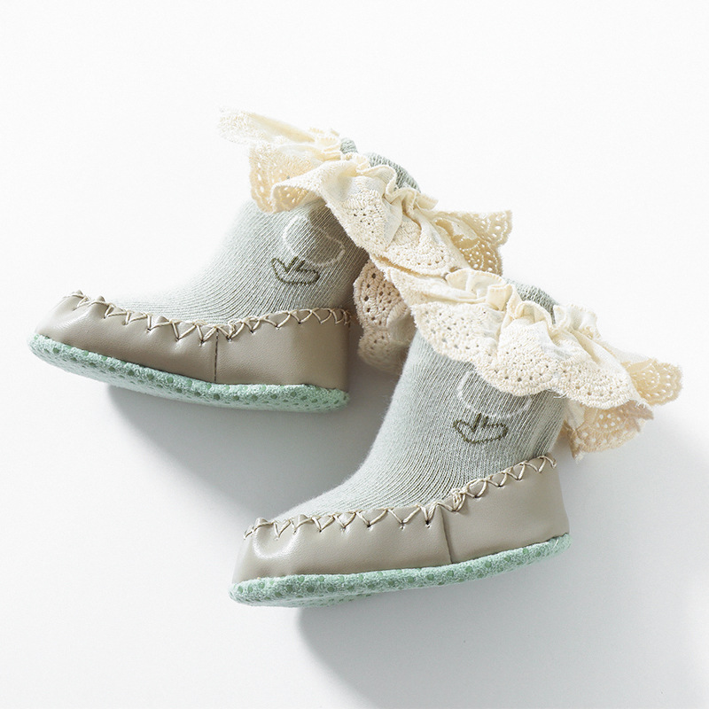 2023 가을과 겨울 가죽 바닥 신발 아기 양말 튜브 미끄럼 방지 한국 레이스 공주 양말 유아 양말 신발스토어 가기