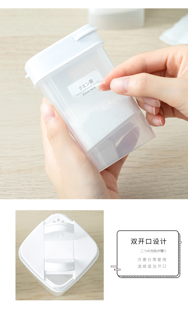 일본 분말 저장 병 베이킹 소다 클리너 구연산 보관 상자 230ml 측정 뚜껑 이중 개방