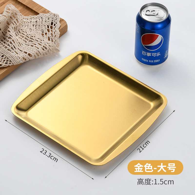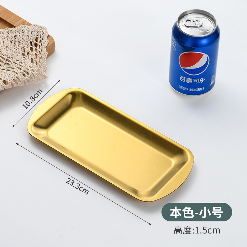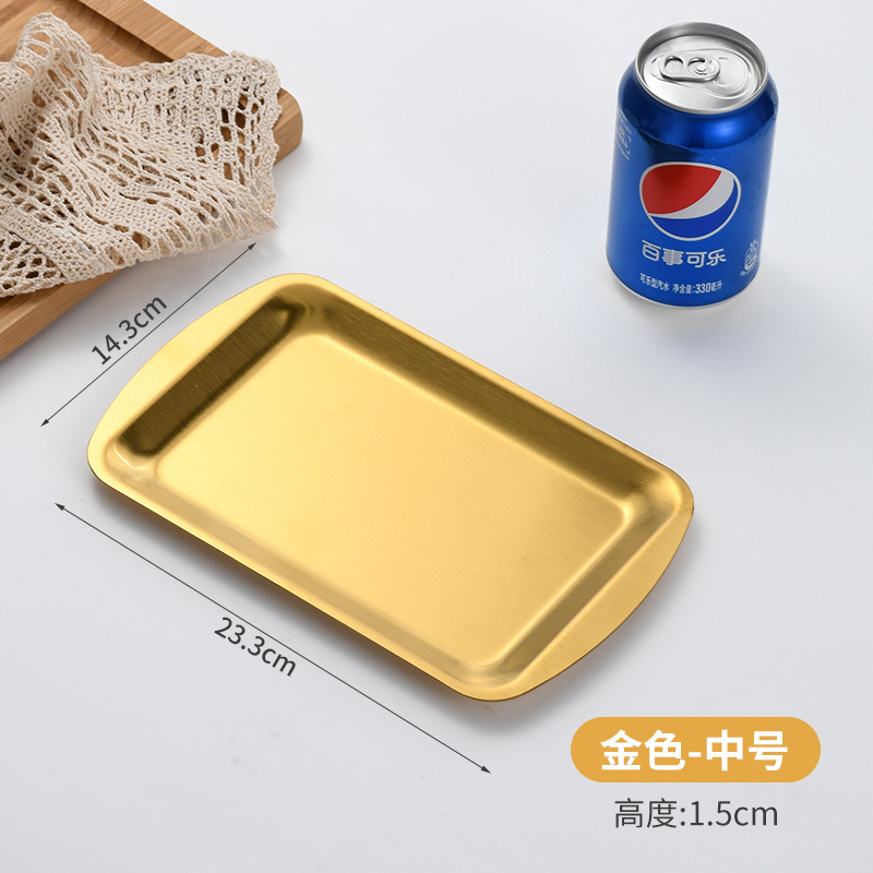 스테인레스 스틸 한국식 식기 304 스낵 플레이트 직사각형 두꺼운 치킨 윙 플레이트 바베큐 플레이트 딤섬 트레이 골드
