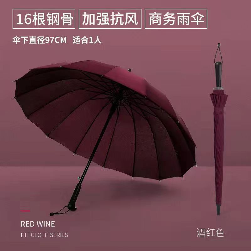 • 16 뼈 자동 긴 우산 미디엄 블랙