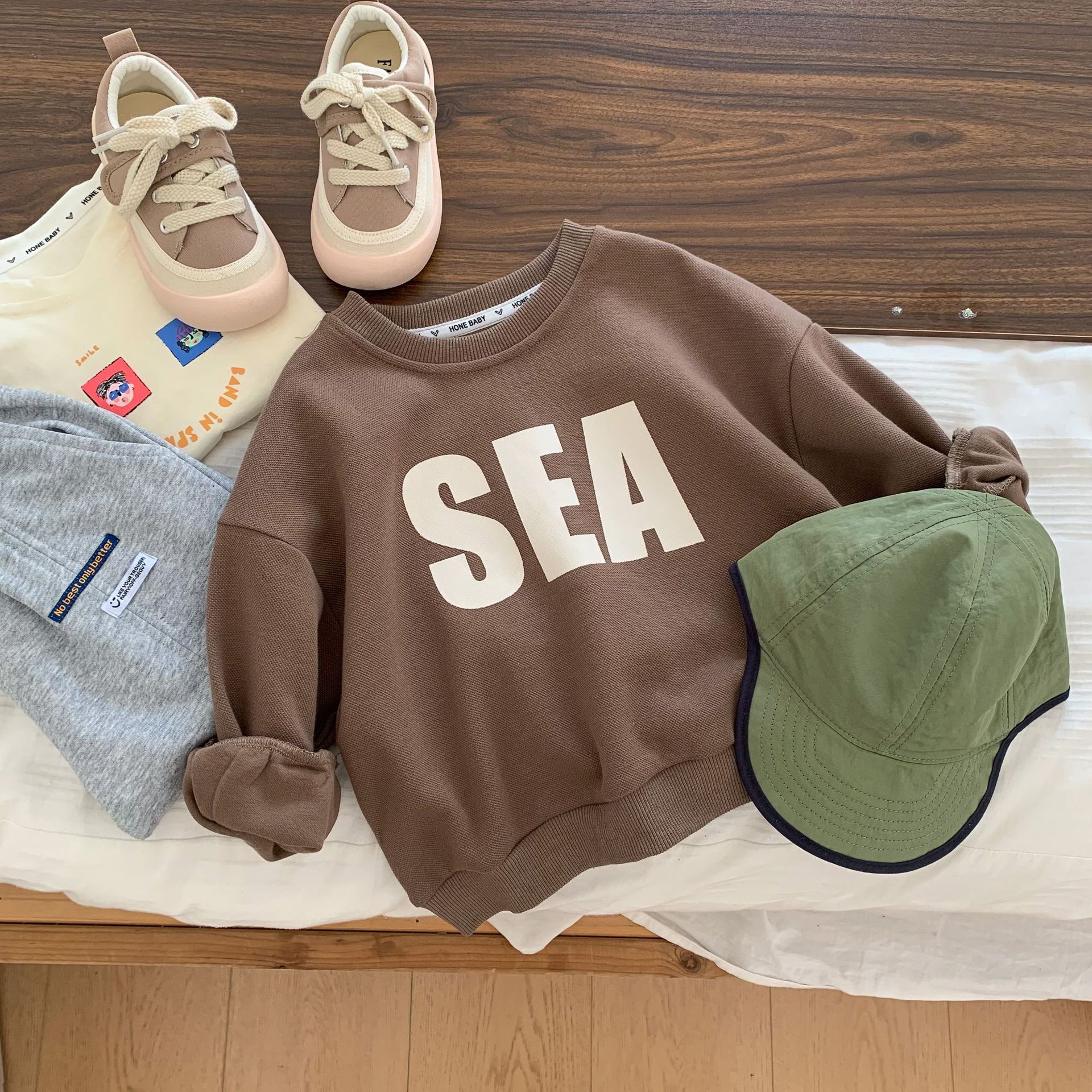 어린이 스웨트셔츠 2025 백청 가을 신상 남아용 한국 스타일 프린트 레터 스웨트셔츠 유아 상의 트렌디 C0211