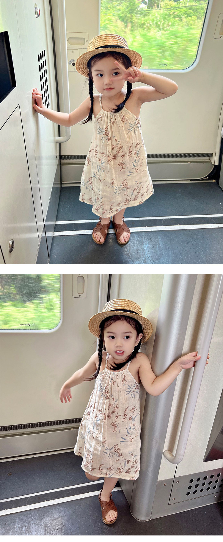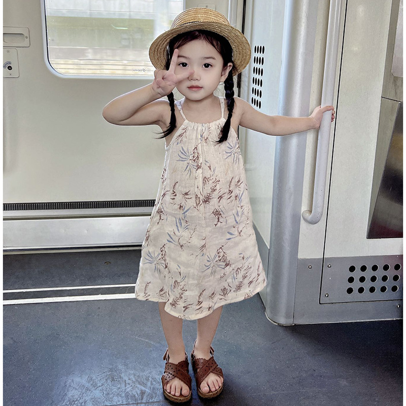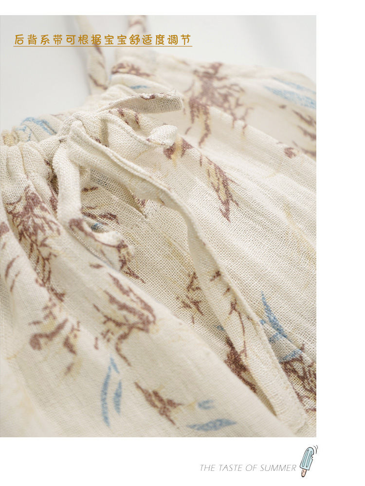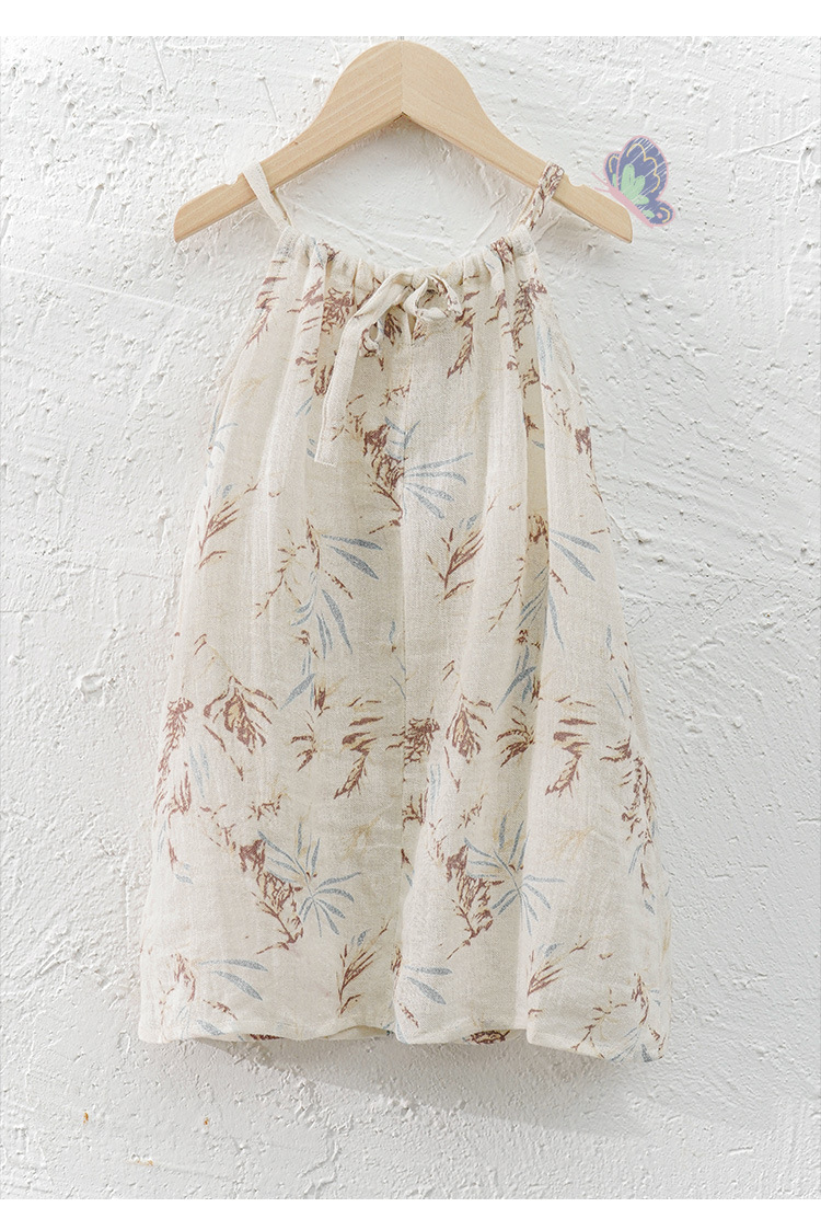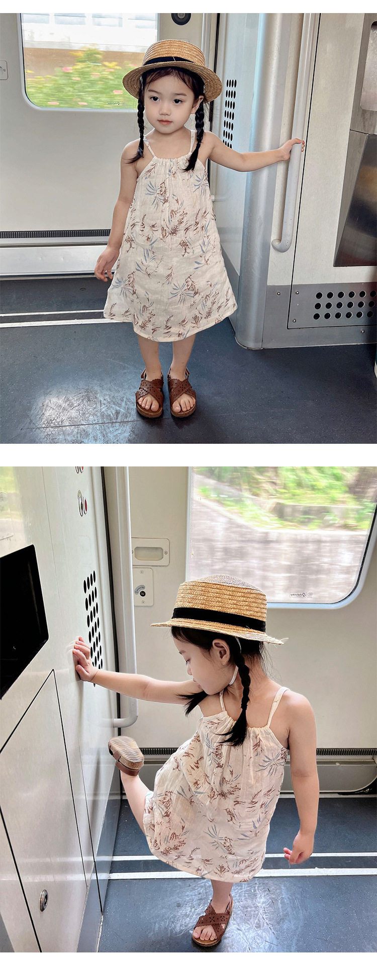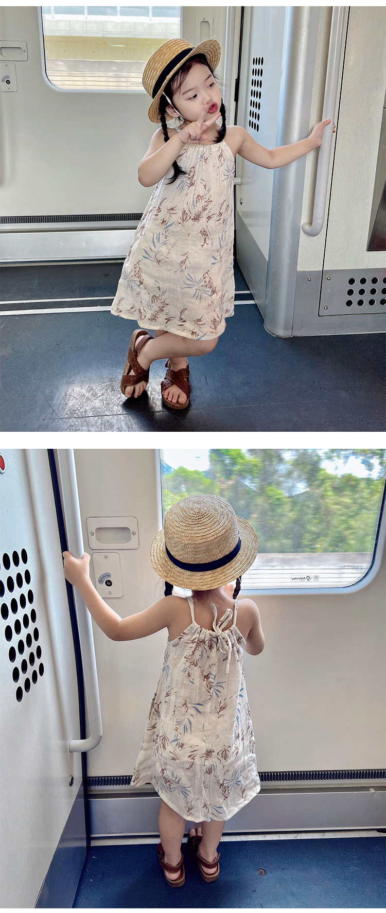 소녀의 모리 스타일 린넨 목 원피스 여름 틈새 인쇄 아기 소녀의 민소매 레이스 업 조끼 원피스 부모-자식 원피스스토어 가기