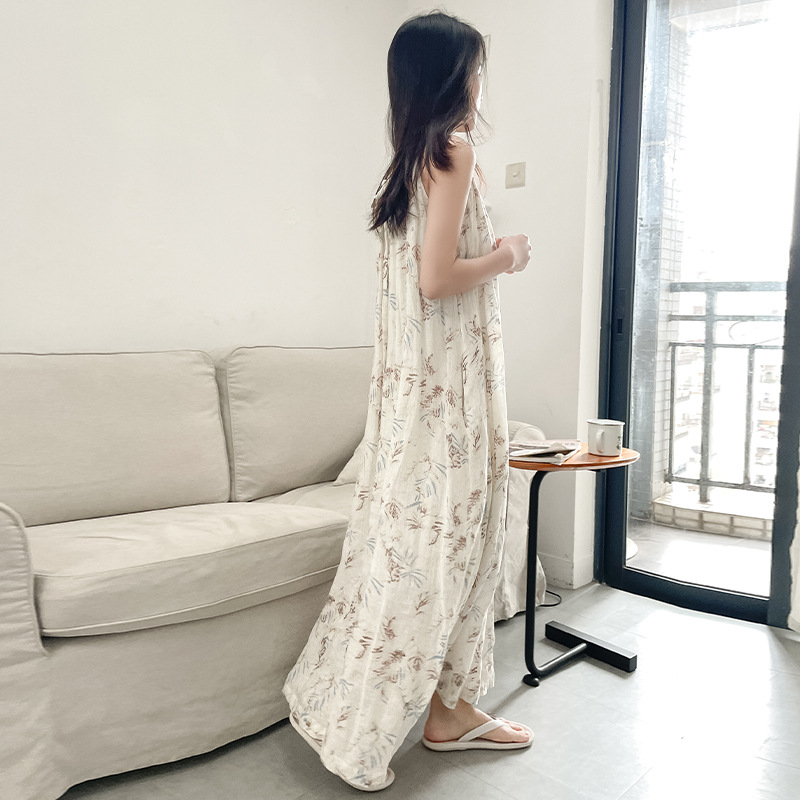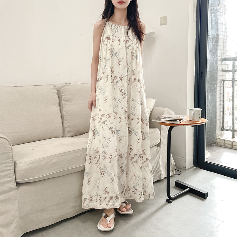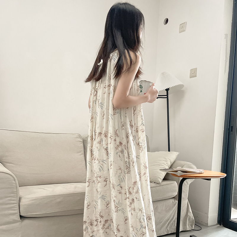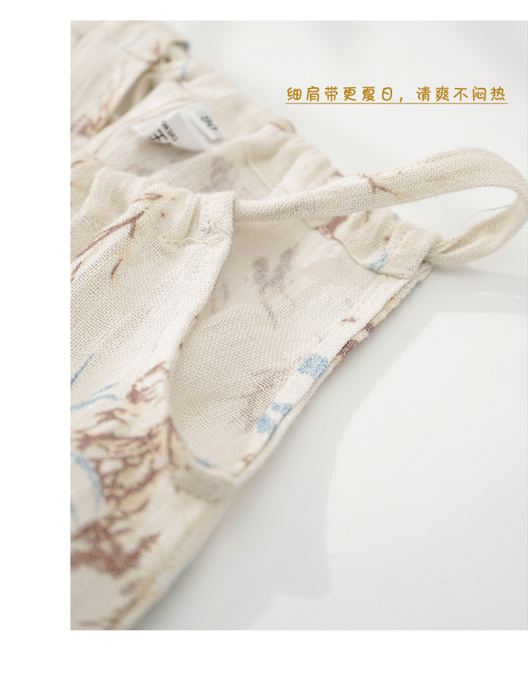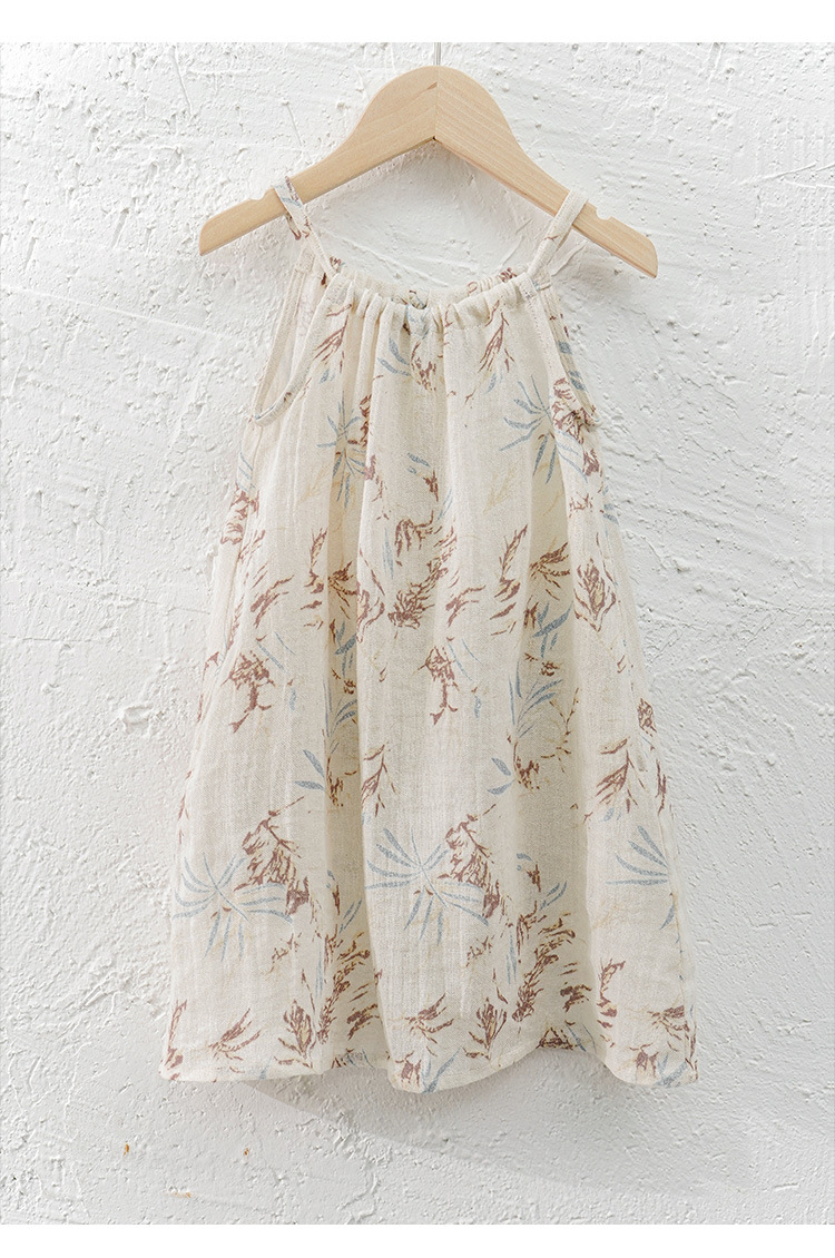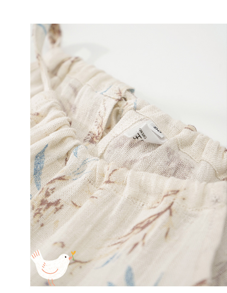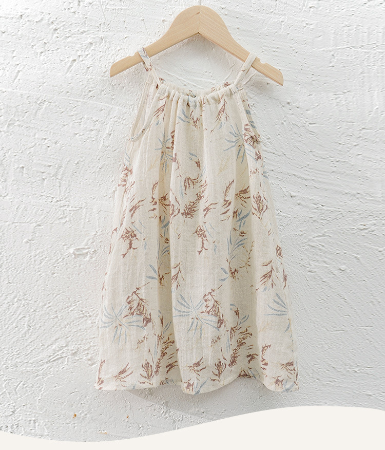 소녀의 모리 스타일 린넨 목 원피스 여름 틈새 인쇄 아기 소녀의 민소매 레이스 업 조끼 원피스 부모-자식 원피스스토어 가기
