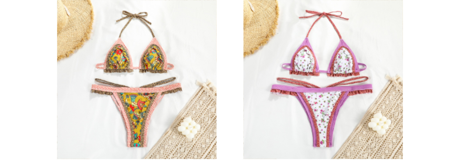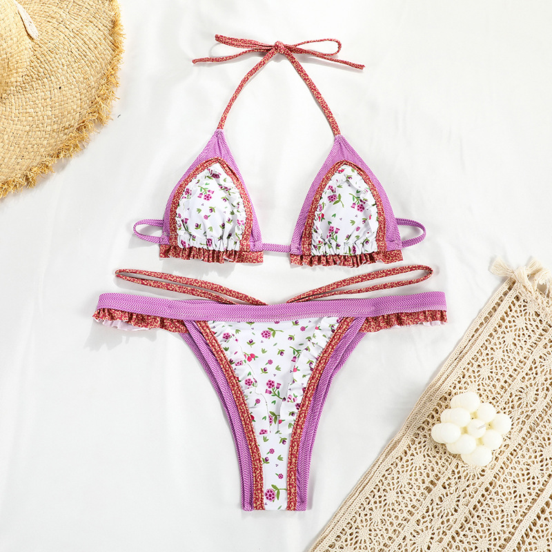 2022 새로운 섹시한 유럽과 미국의 분할 수영복 여성 스티치 인쇄 백리스 비키니