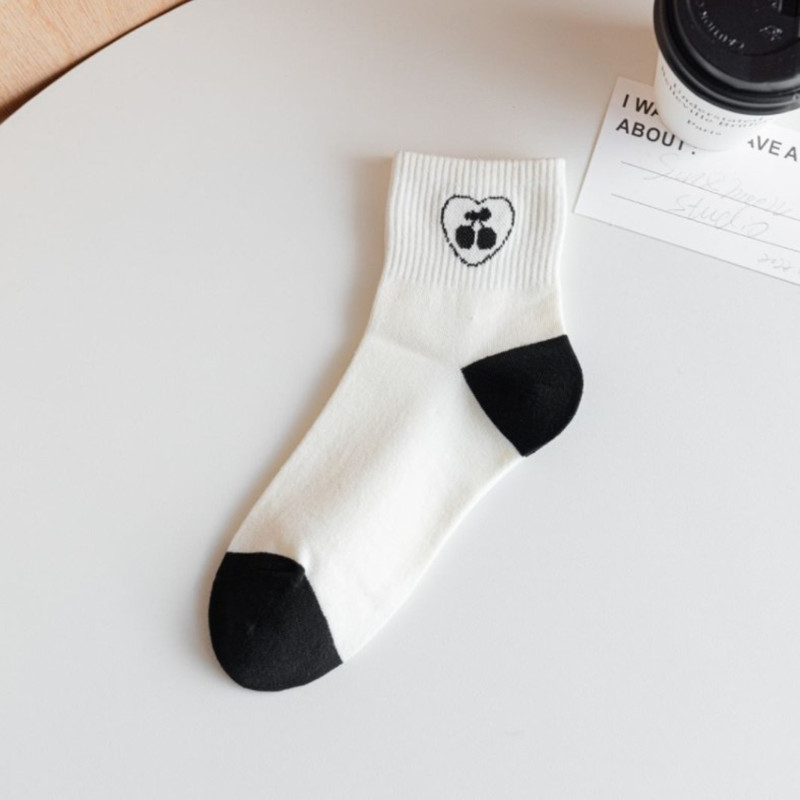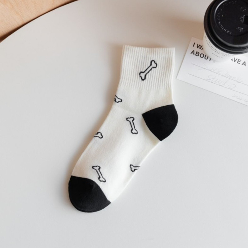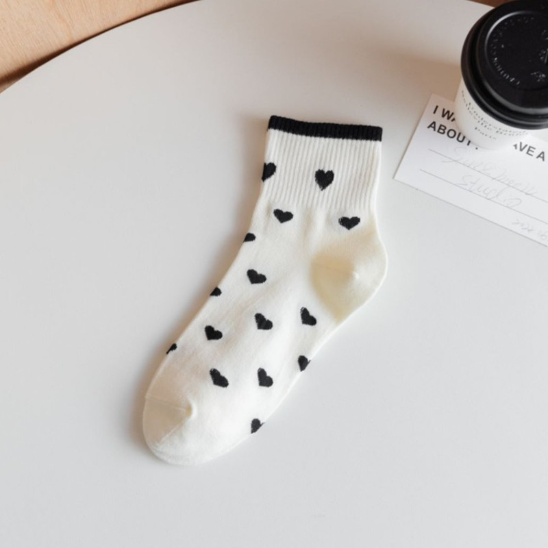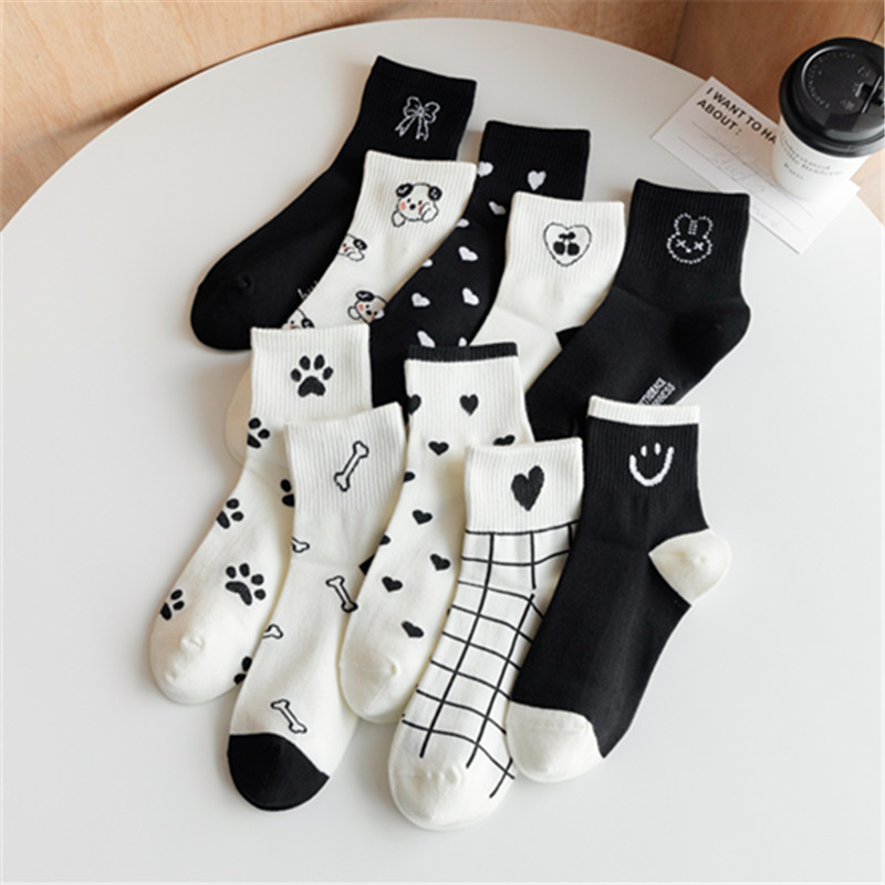 가을과 겨울 새로운 스타일 양말 유행 모든 경기 흑백 곰 사랑 여자의 중간 길이 스타킹 유행 긴 양말스토어 가기