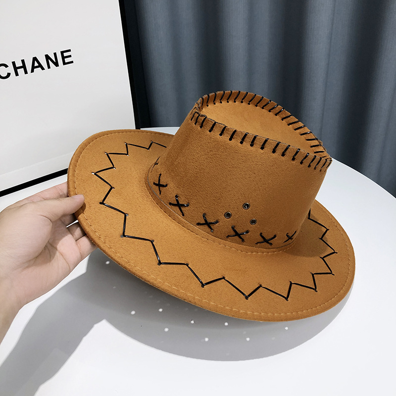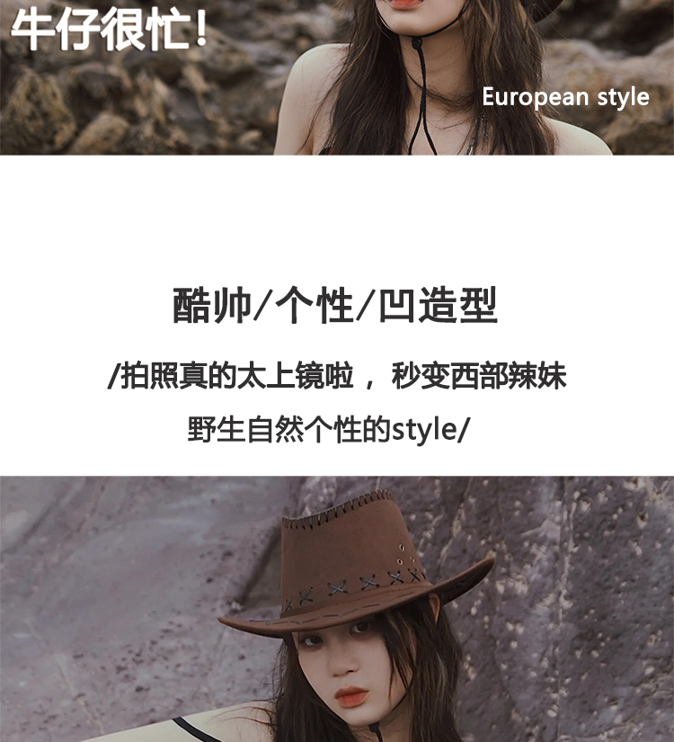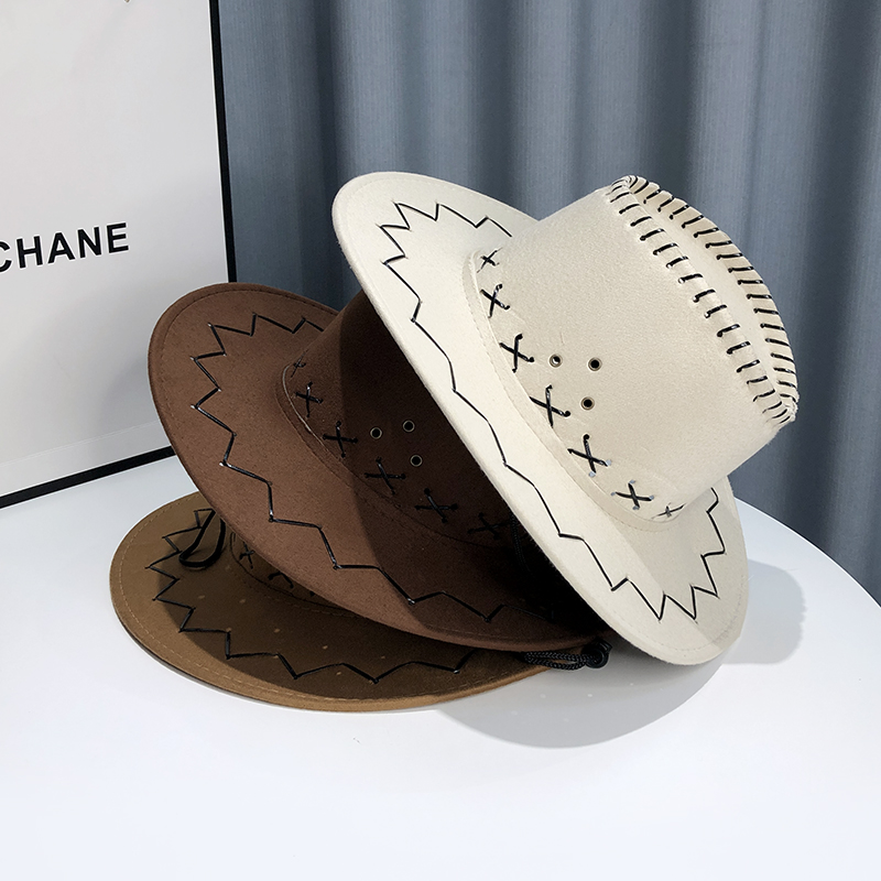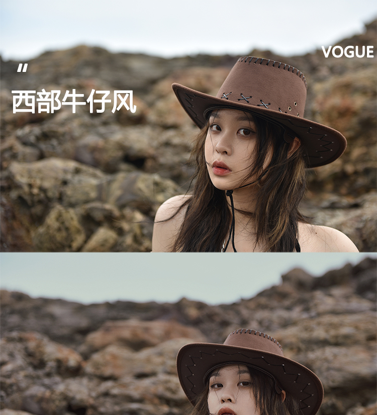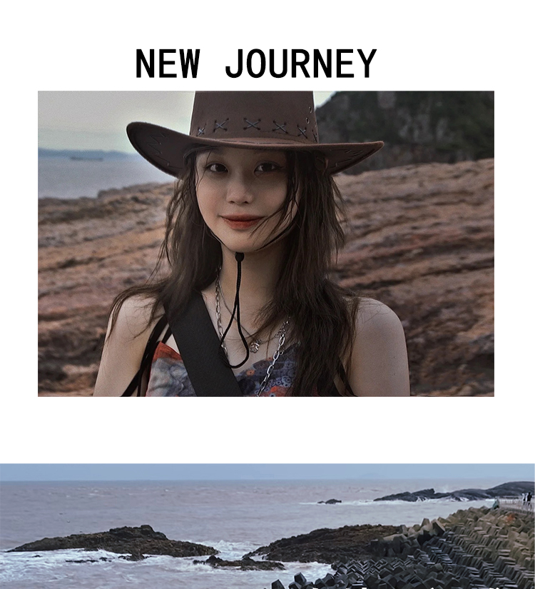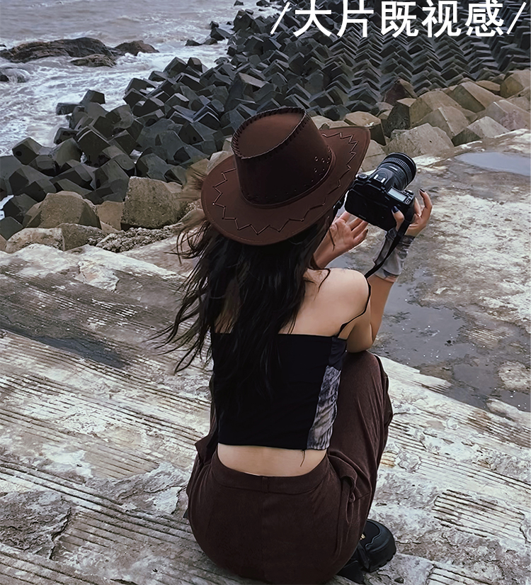 Yufei 웨스턴 카우보이 모자 여자의 여름 자외선 차단 모자 야외 유럽과 미국 스타일 향신료 소녀 복고풍 기사 차양 모자