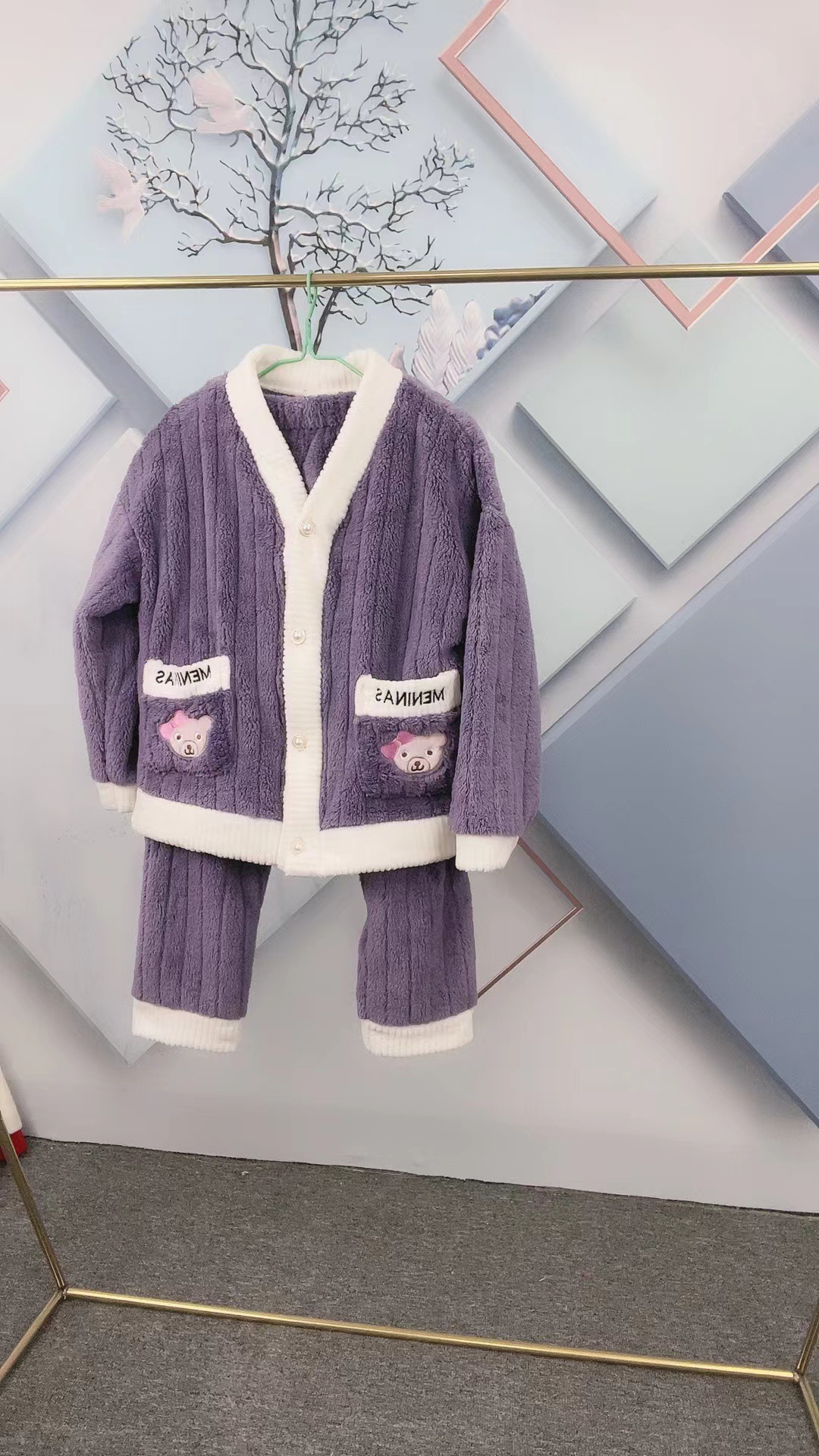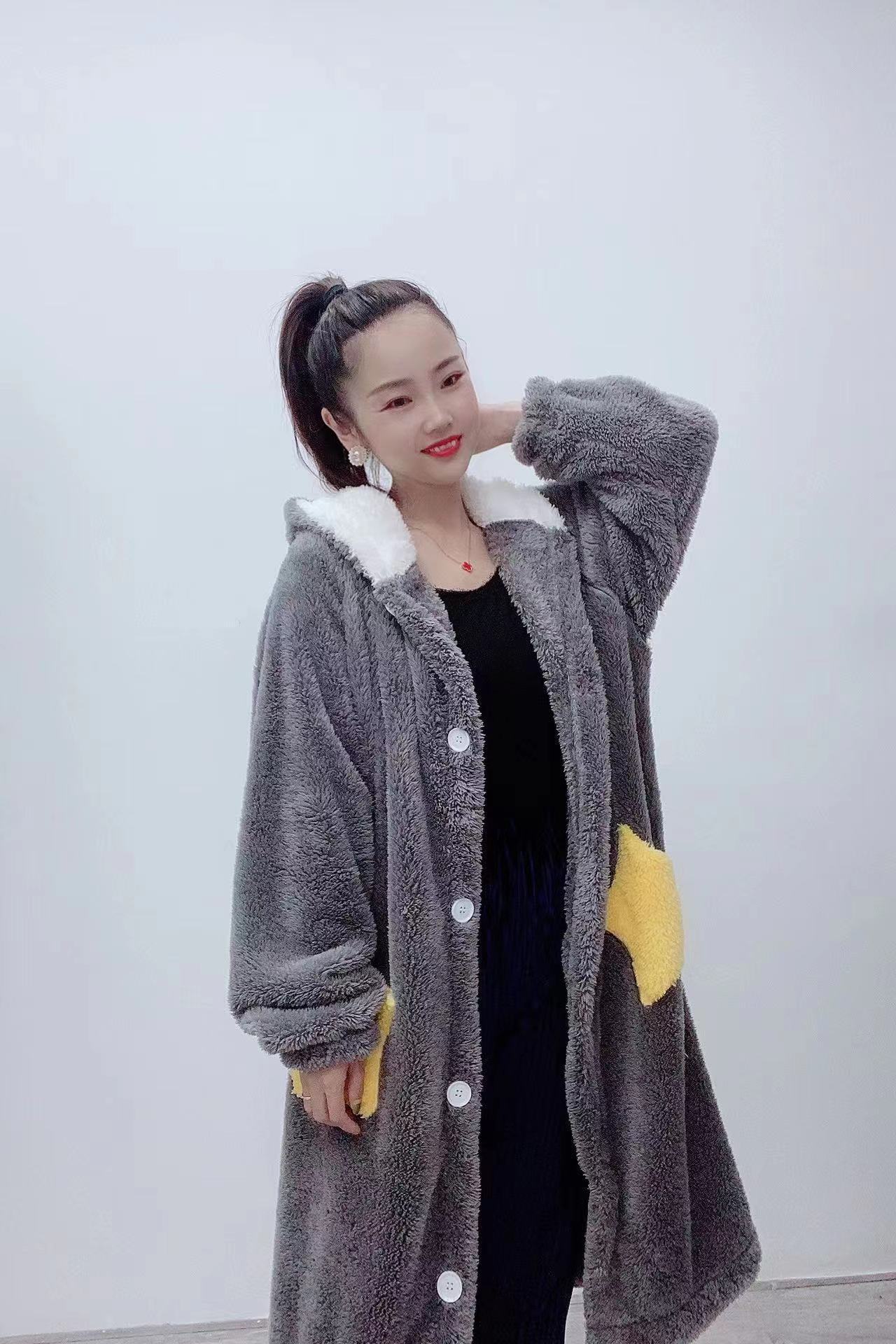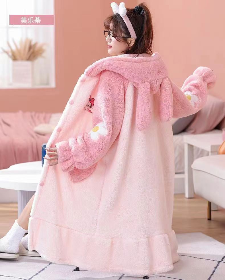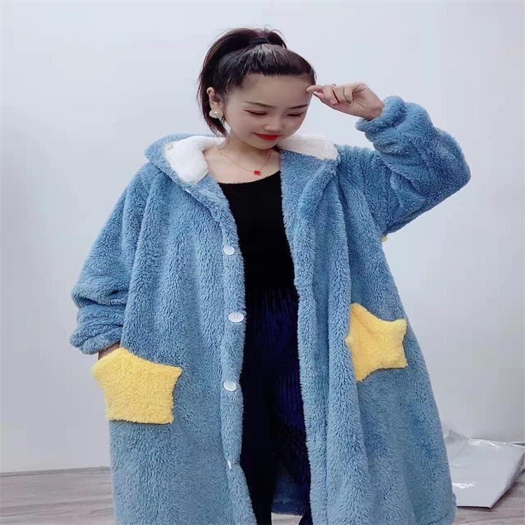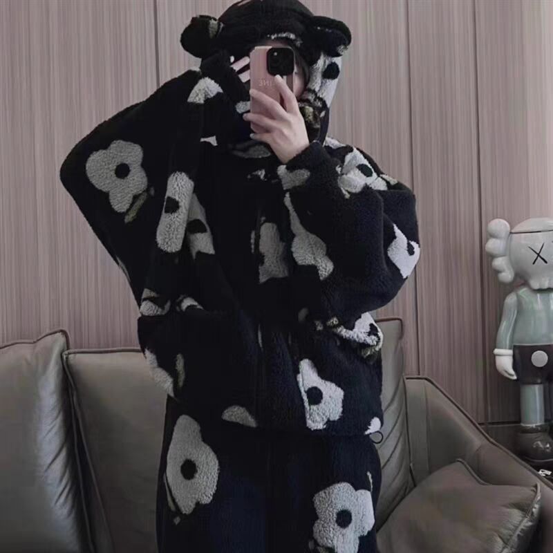 잠옷 여자의 겨울 산호 양털 인터넷 인기 기모 두꺼운 세트 귀여운 복숭아 플란넬 가정 옷 가을과 겨울스토어 가기