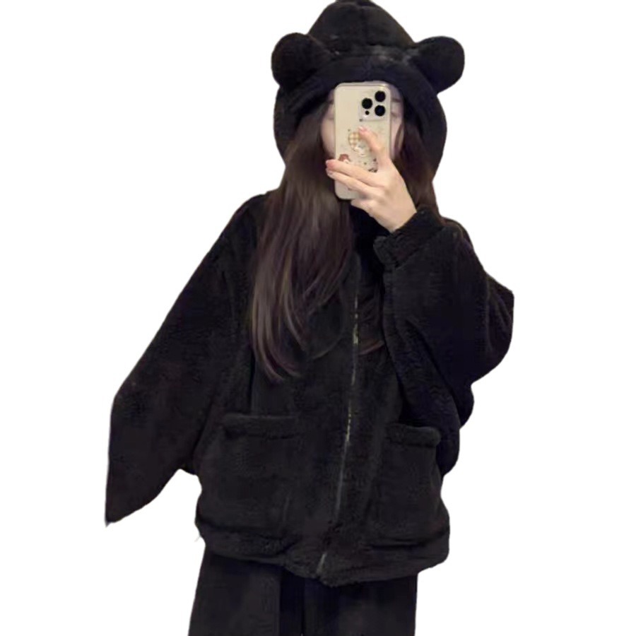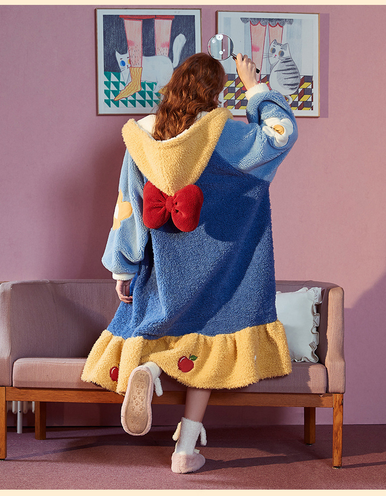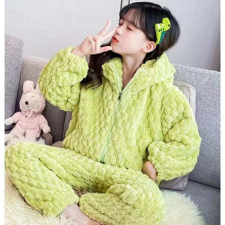 잠옷 여자의 겨울 산호 양털 인터넷 인기 기모 두꺼운 세트 귀여운 복숭아 플란넬 가정 옷 가을과 겨울