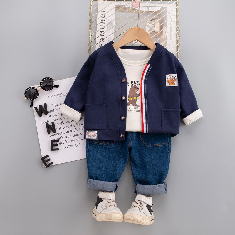 중소 어린이를위한 어린이 가을 의류 잘 생긴 캐주얼 곰 카디건 소년 주간 의류 제조업체 3 종 세트 머리카락