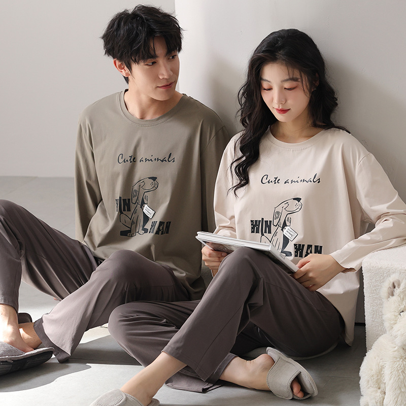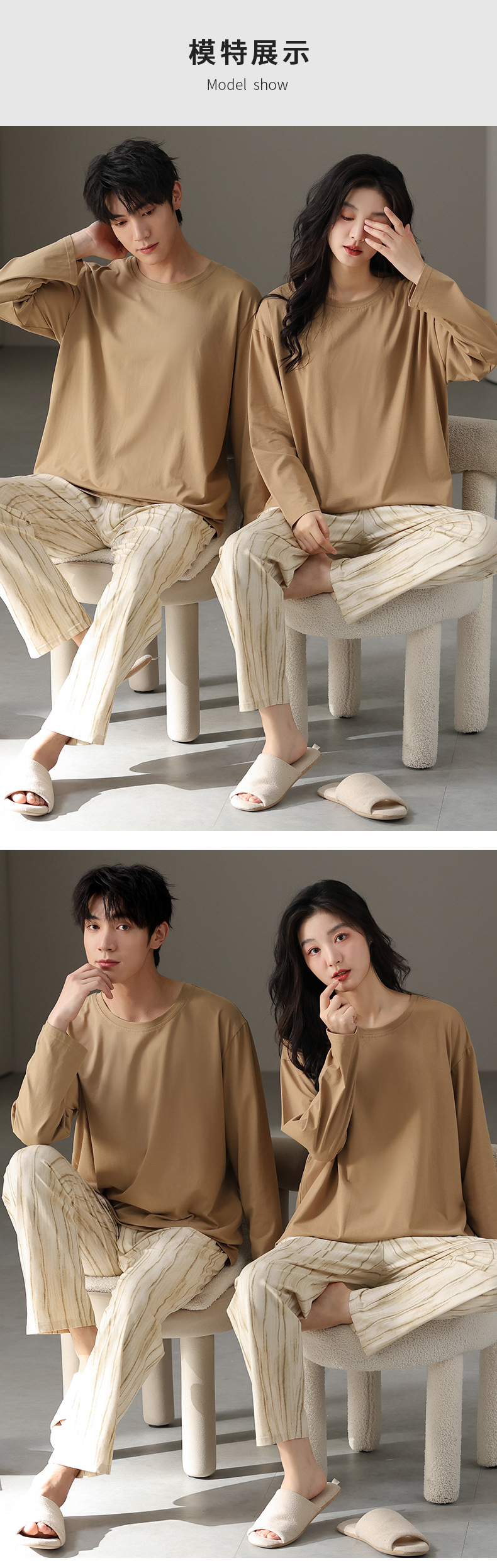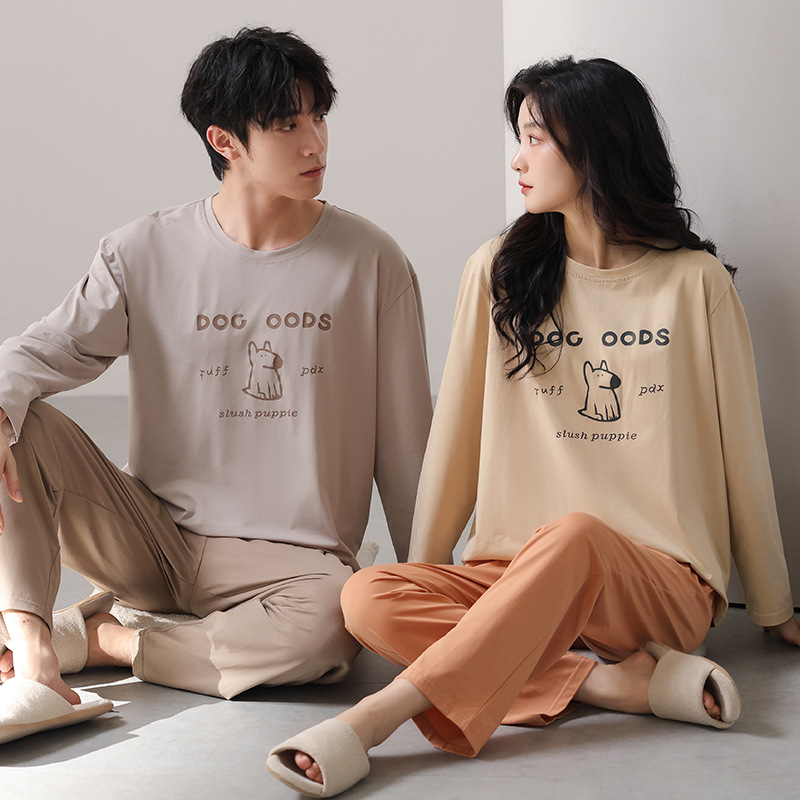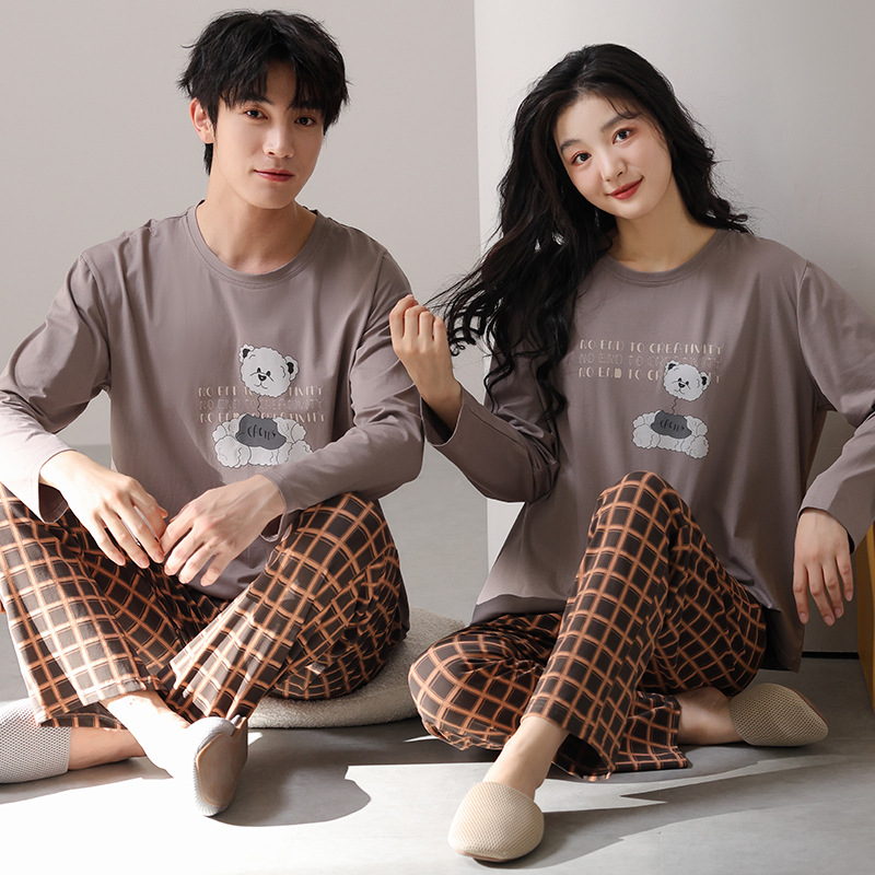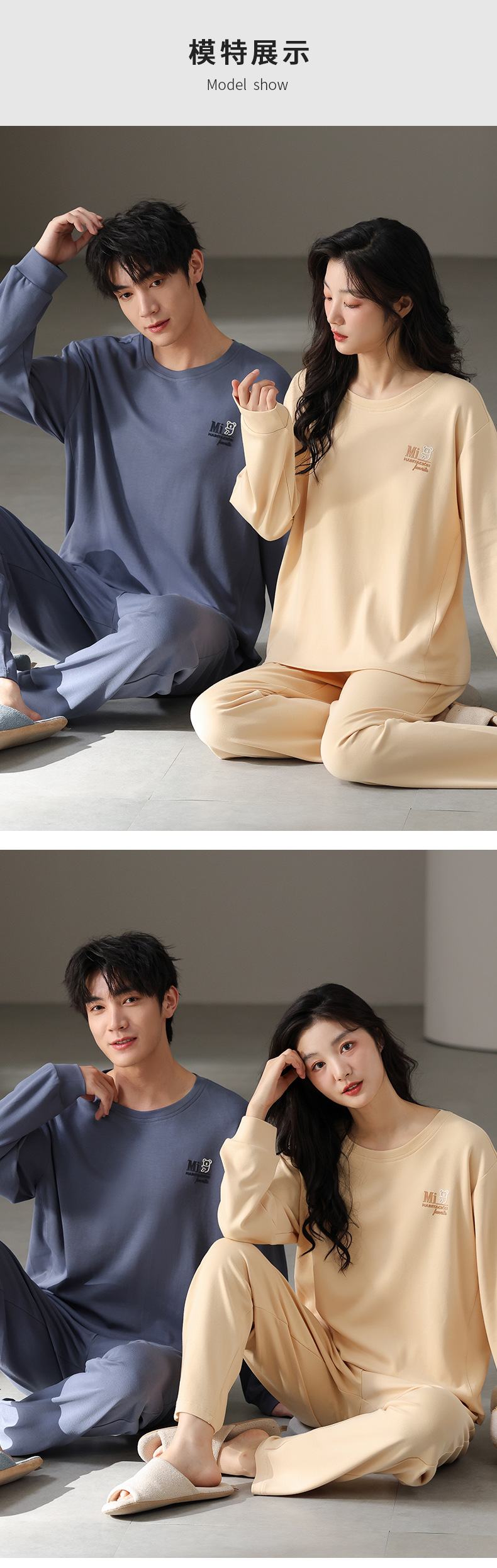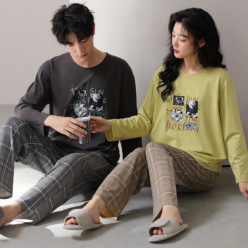 여성용 잠옷 봄 가을 순면 긴팔 라운드넥 신상품 외출 가능 커플 가을 겨울 홈웨어 남성용 라이크라 면 단색스토어 가기