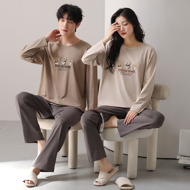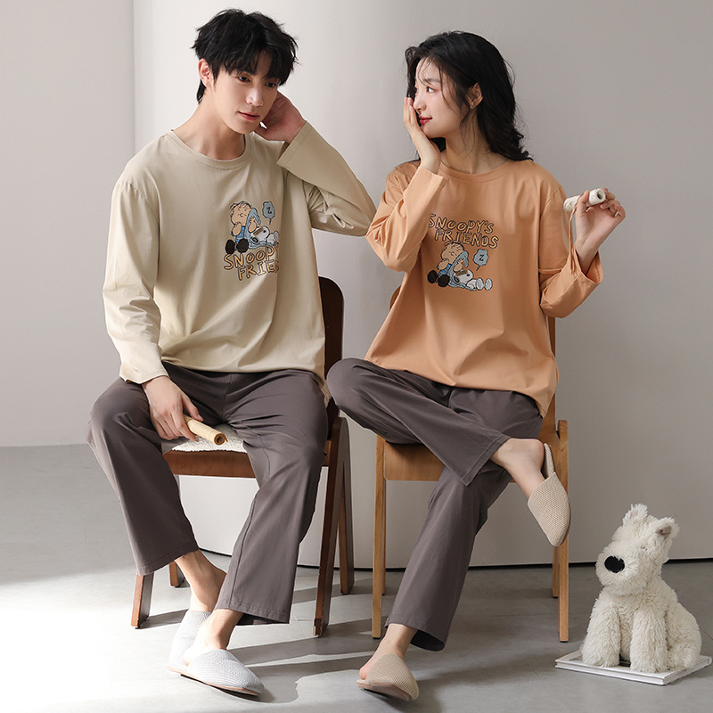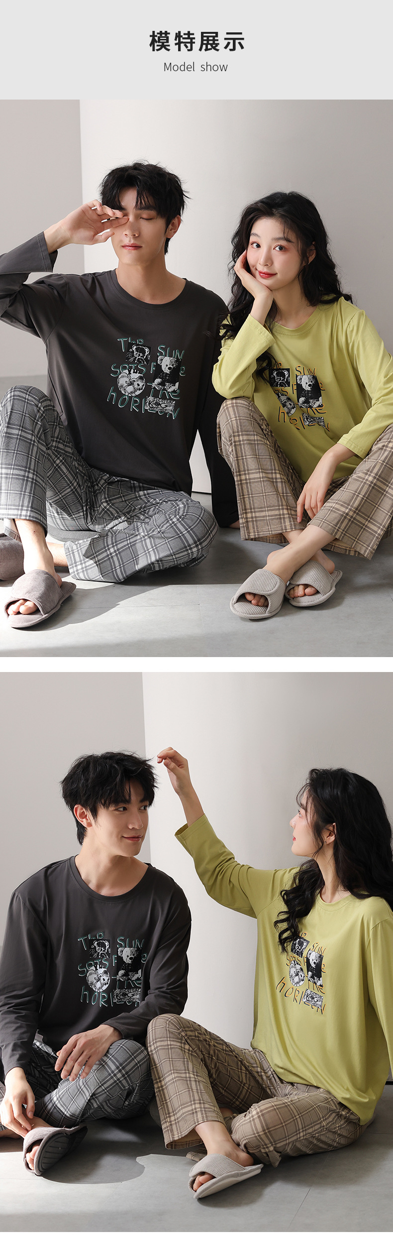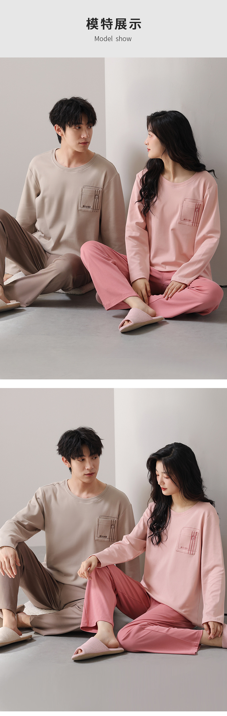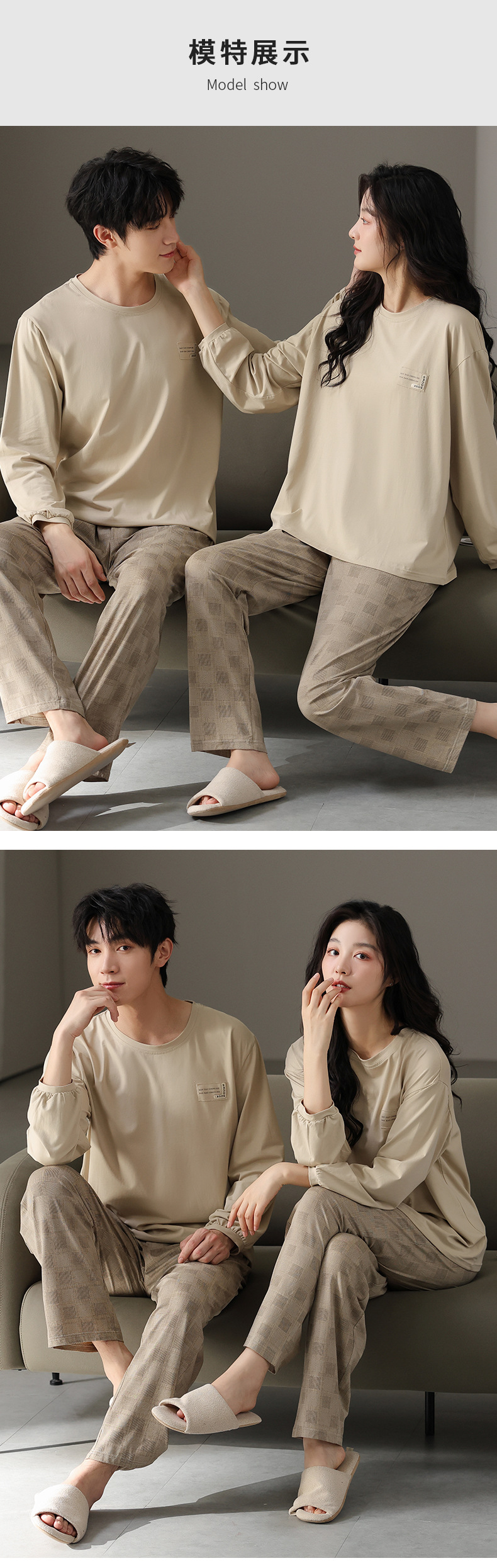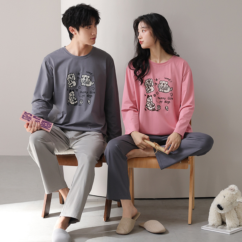 여성용 잠옷 봄 가을 순면 긴팔 라운드넥 신상품 외출 가능 커플 가을 겨울 홈웨어 남성용 라이크라 면 단색스토어 가기