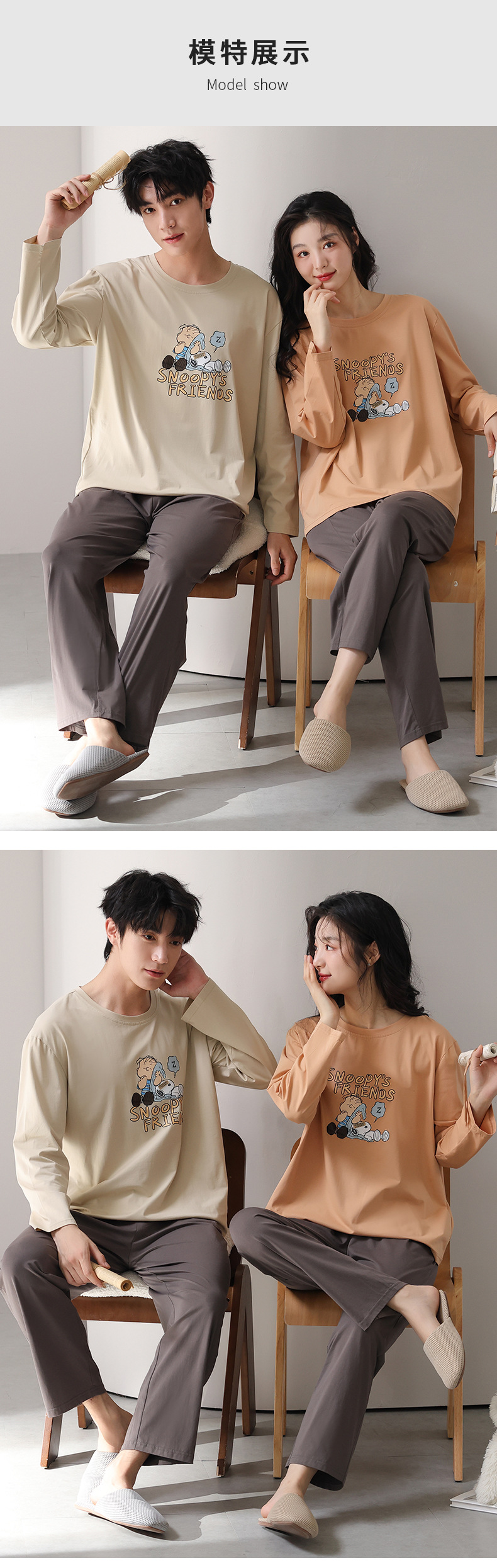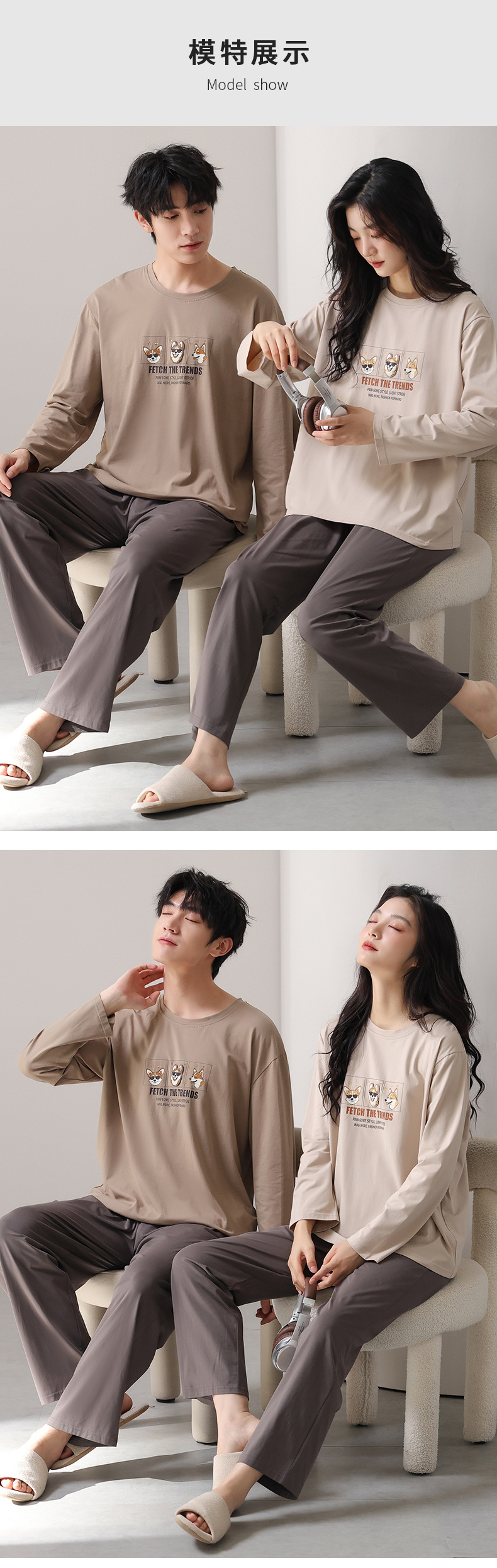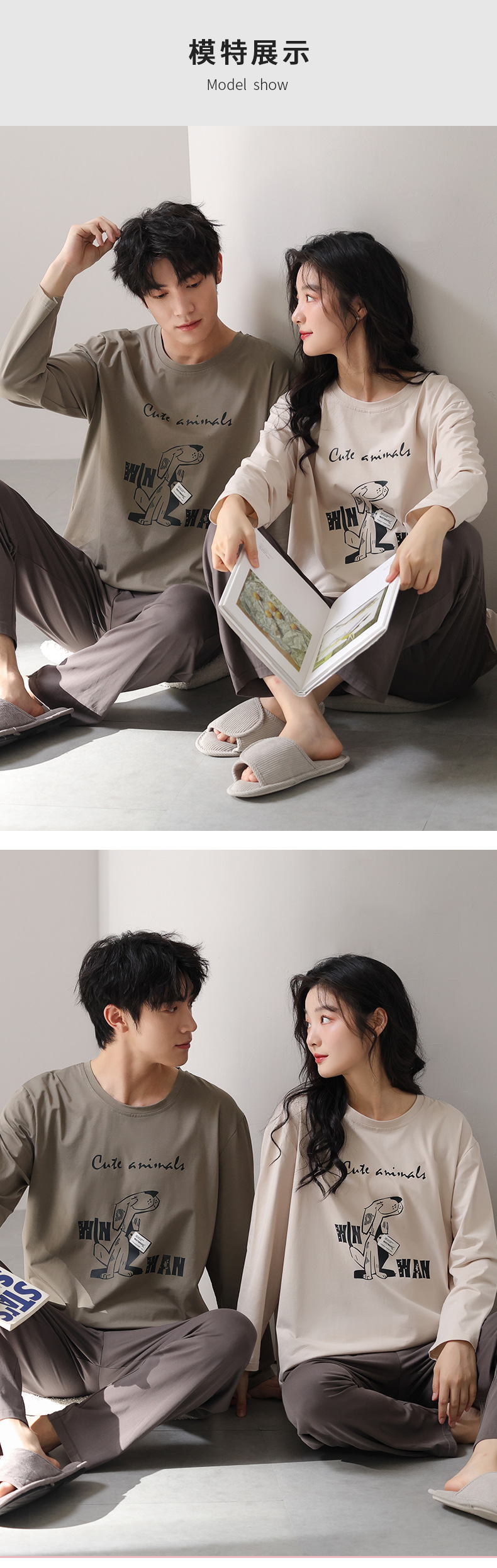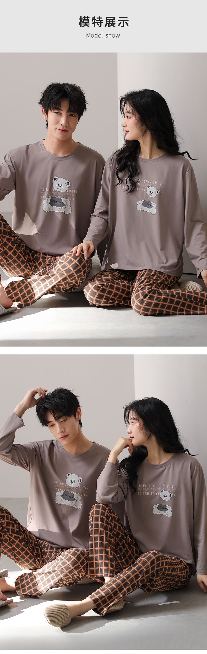 여성용 잠옷 봄 가을 순면 긴팔 라운드넥 신상품 외출 가능 커플 가을 겨울 홈웨어 남성용 라이크라 면 단색스토어 가기