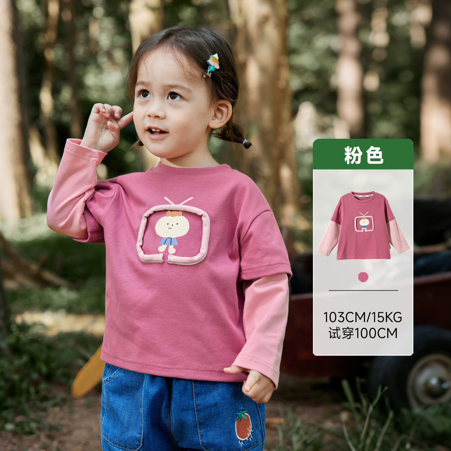 Amila 아동복 25 가을 새 소년 티셔츠 아동용 가짜 투피스 긴팔 내부 컬러 블록 프린트 탑 트렌디스토어 가기