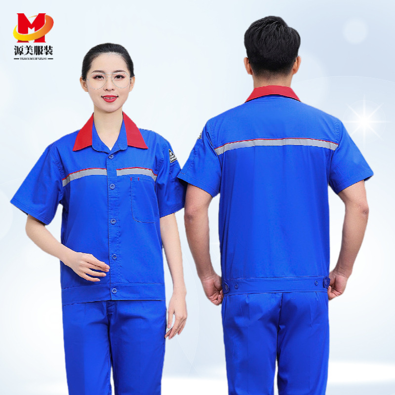 정전기 방지 주유소 작업복 세트 반팔 모자 PetroChina 고정 노동 보호 의류 인쇄 로고스토어 가기
