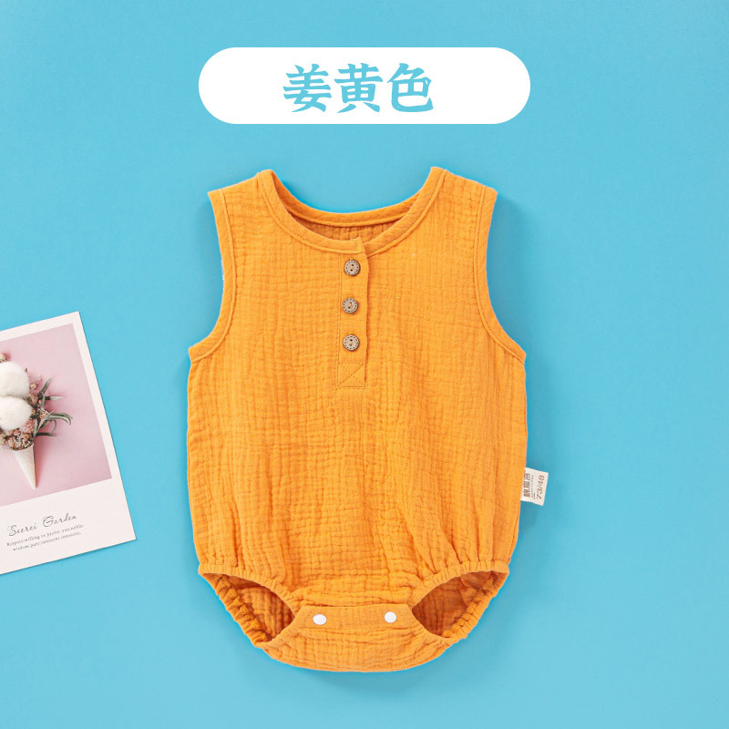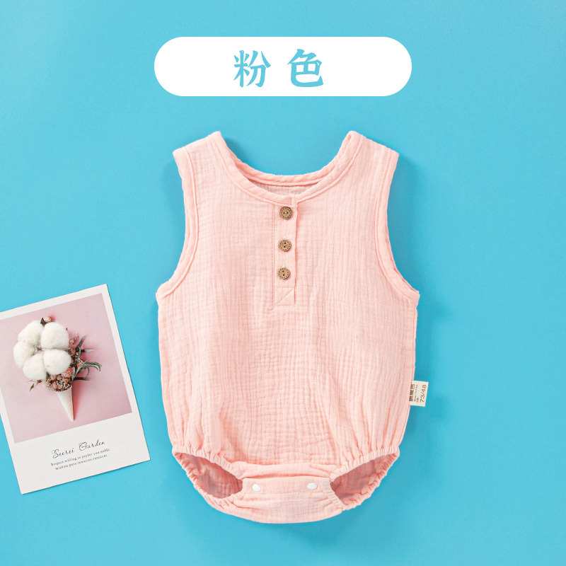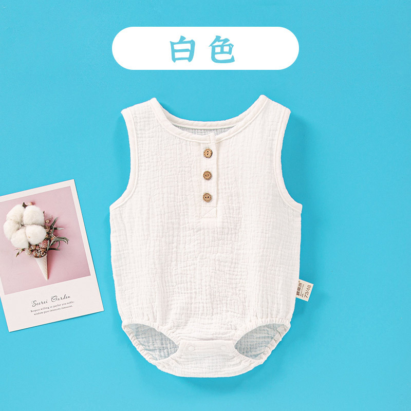여름 순면 거즈 민소매 가방 뚱뚱한 옷 신생아 아기 점프 수트 캐미솔 아기 삼각형 모자 등산 옷