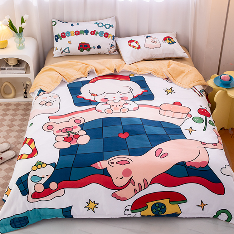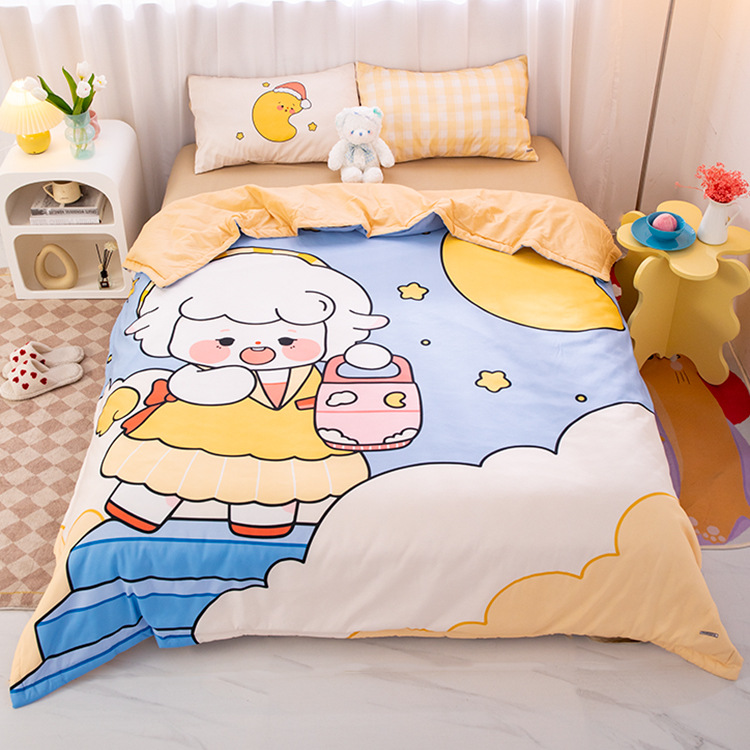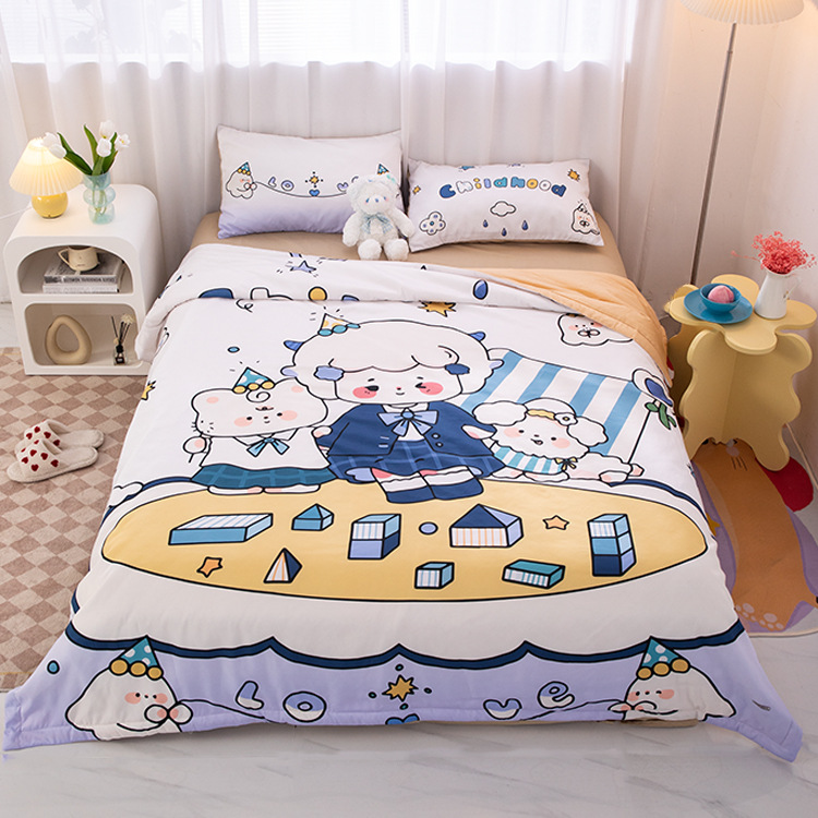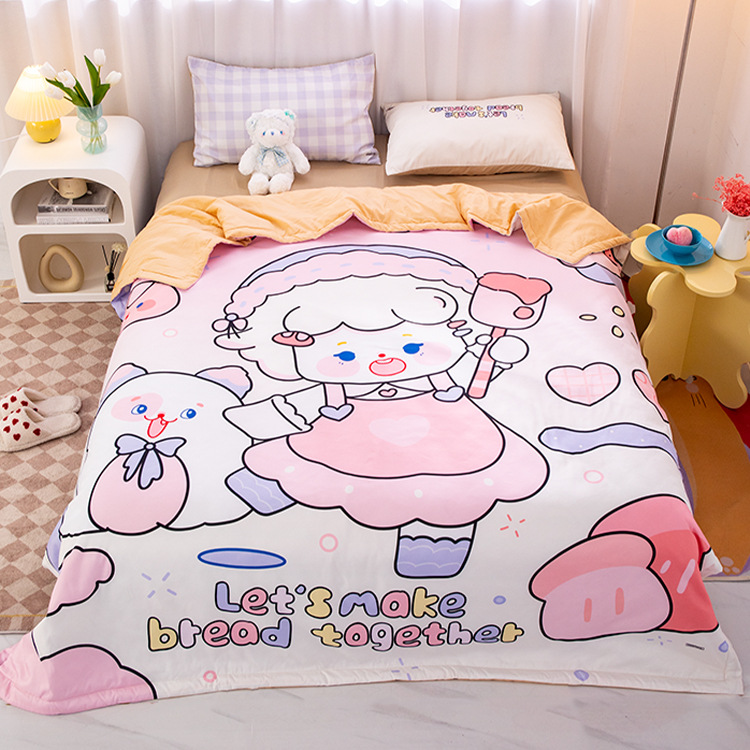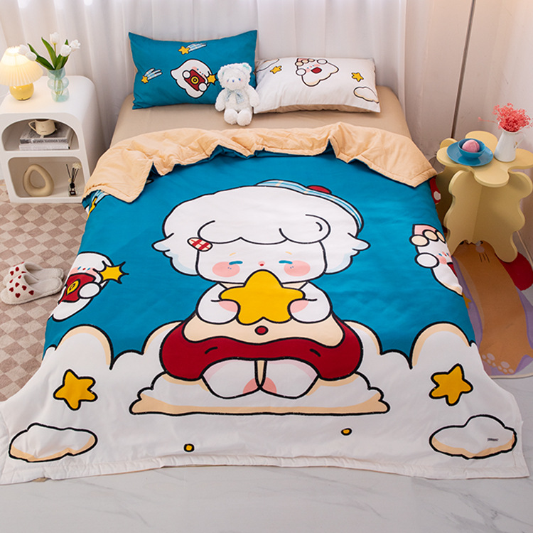만화 귀여운 아기면 에어컨 피부 친화적 인 부드러운 어린이 여름 시원한 이불 학생 기숙사 싱글 더블 얇은 이불스토어 가기