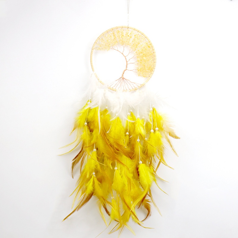 捕梦网源自18世纪,印第安人用它来捕获美丽的梦幻,让恶梦随清晨的阳光而消逝,他们相信夜晚的空气中充满着各种的梦幻,只有捕梦网能将梦过滤,把他们带入美丽的梦乡。传统的捕梦网是用树枝编成一个圆圈,用皮革绕着圆圈把它包起来,然后用牛筋线在圆圈中绕出一个网来。在牛筋线上偶尔会穿些彩色的珠子,圆圈的一端用皮革挂了一些羽毛。网的中间有一个圆洞,传羽只有好梦才能通过那个洞,并顺着羽毛流下来,而恶梦会被困在网中,并随着次日的阳光灰飞烟灭,消失得无影无踪……