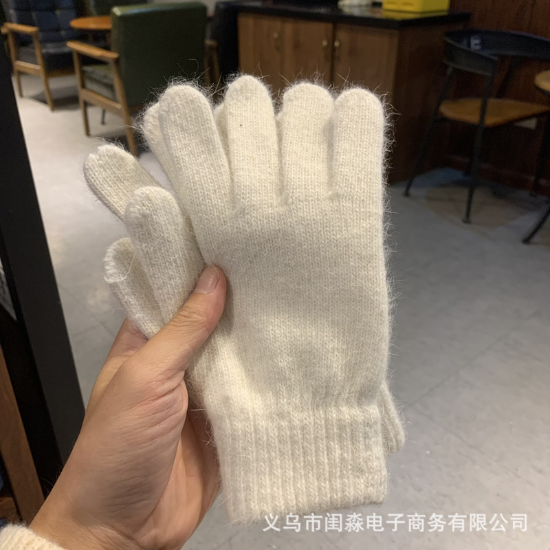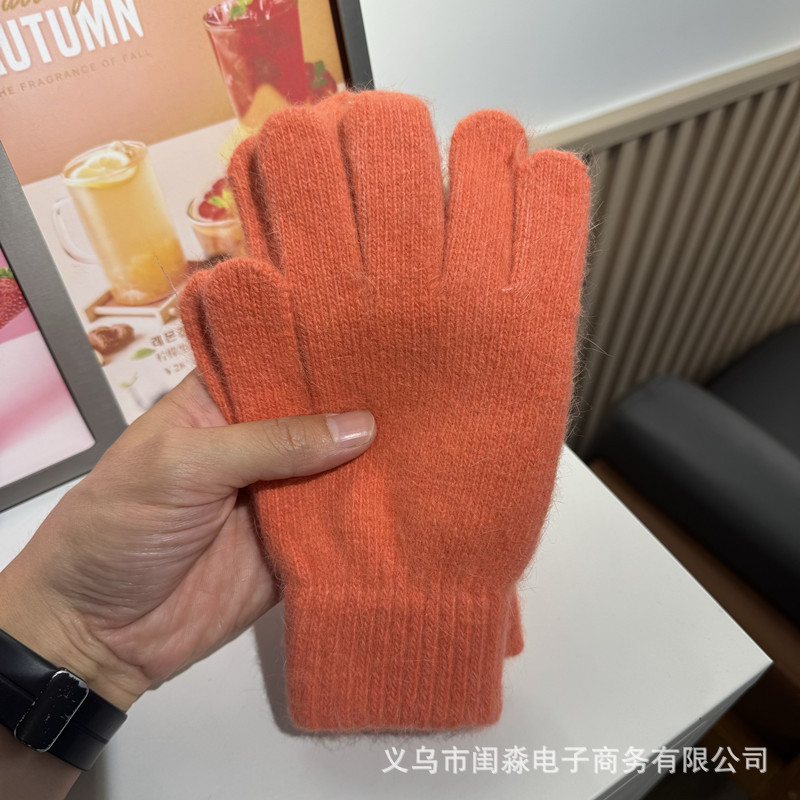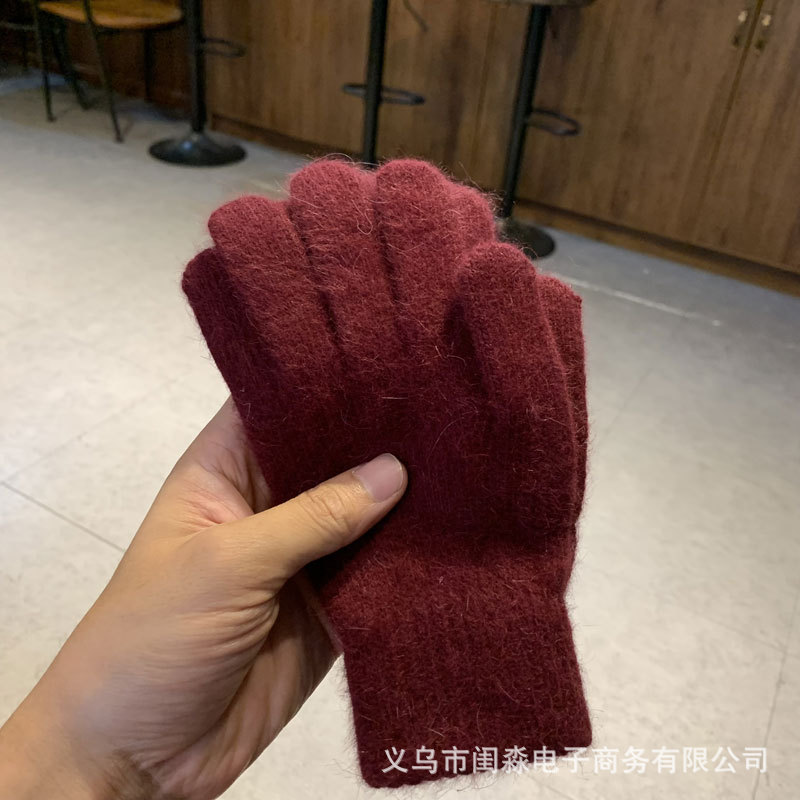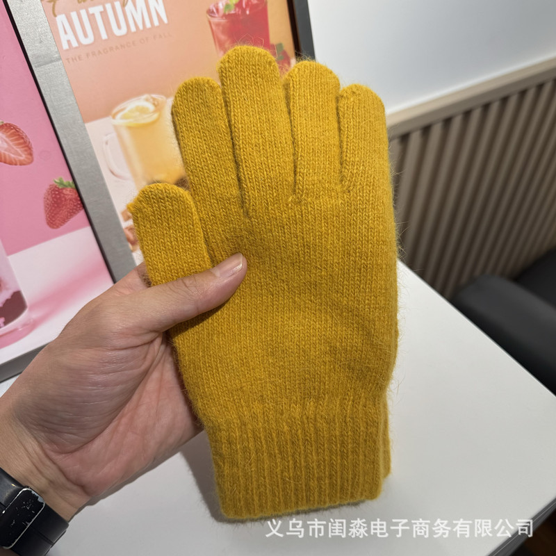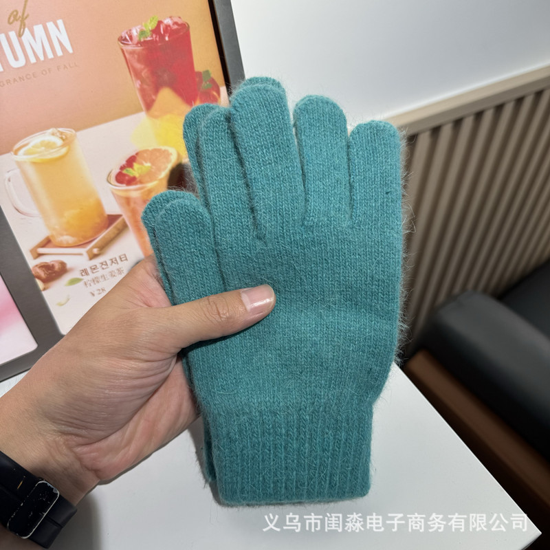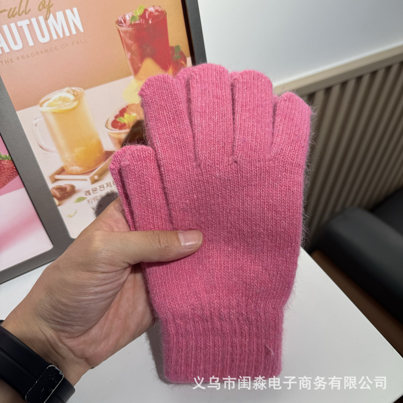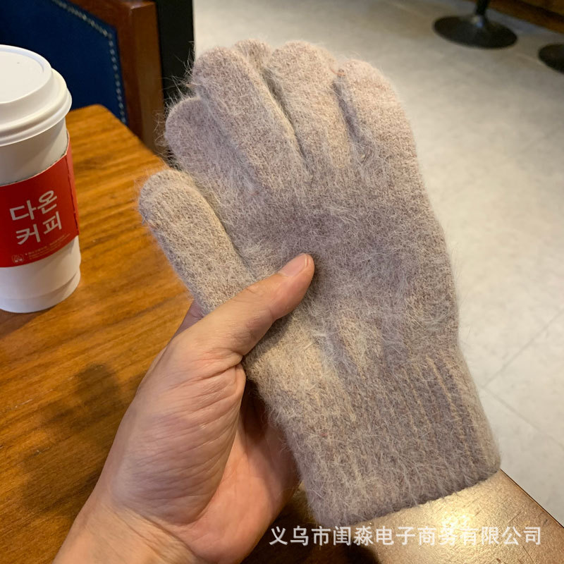 새로운 한국 패션 겨울 단색 울 캐시미어 장갑 다섯 손가락 장갑 사이클링 여성용 토끼 모피 손가락