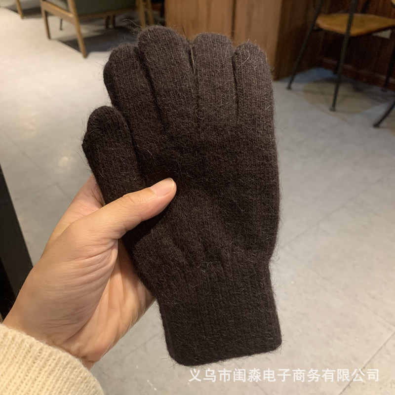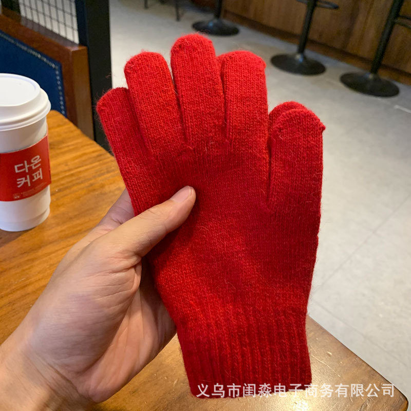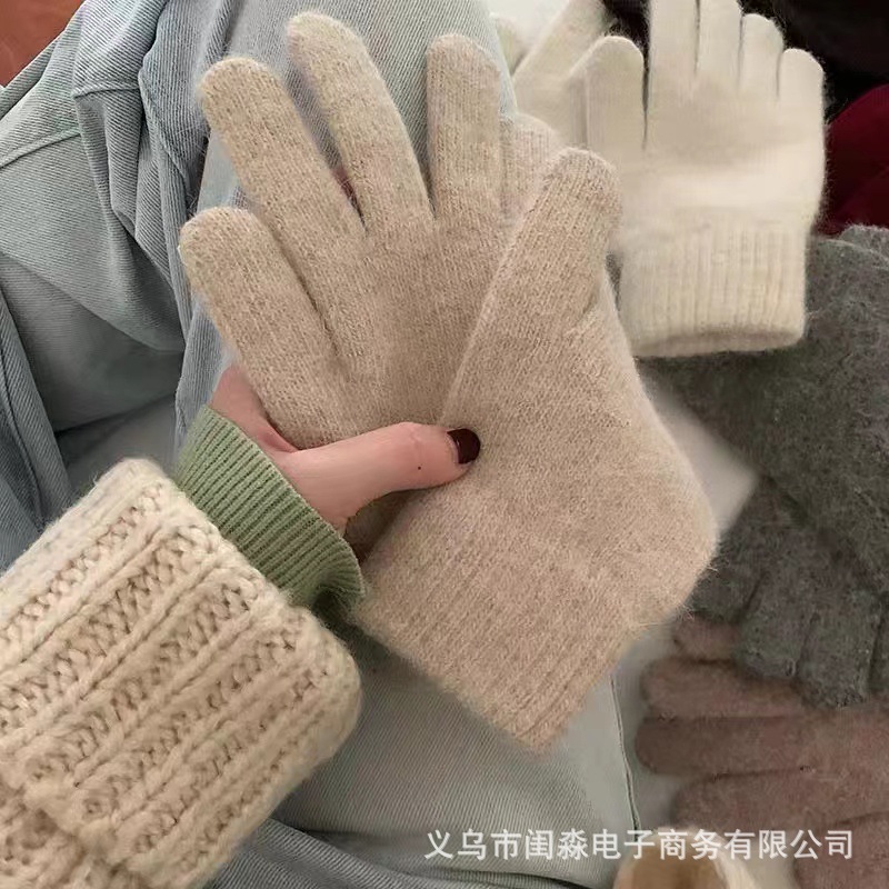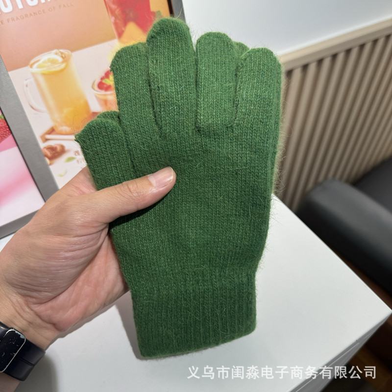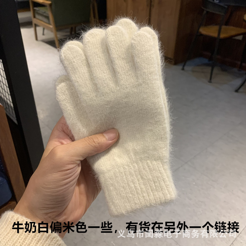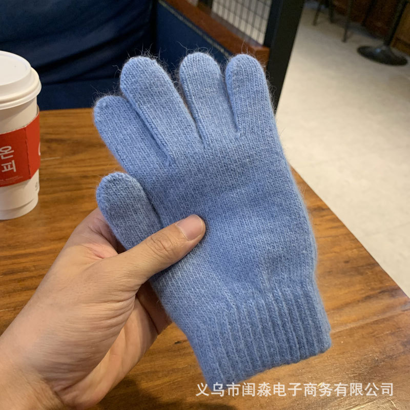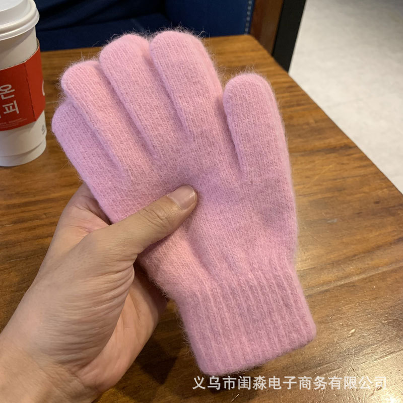 새로운 한국 패션 겨울 단색 울 캐시미어 장갑 다섯 손가락 장갑 사이클링 여성용 토끼 모피 손가락