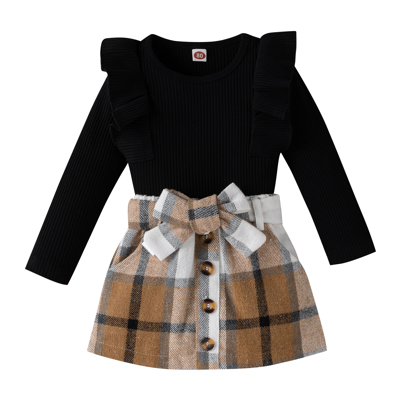 Tengxin 아동복 한국 가을과 겨울 어린이 면화 피트 풀오버 긴 소매 티셔츠 격자 무늬 치마 대학 스타일 여자 세트