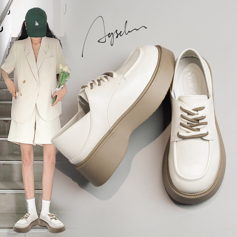 Augustina 가죽 신발 여성 가을 2023 프랑스 복고풍 영국 거친 힐 로퍼 캐주얼 여름 싱글 레이어 신발스토어 가기