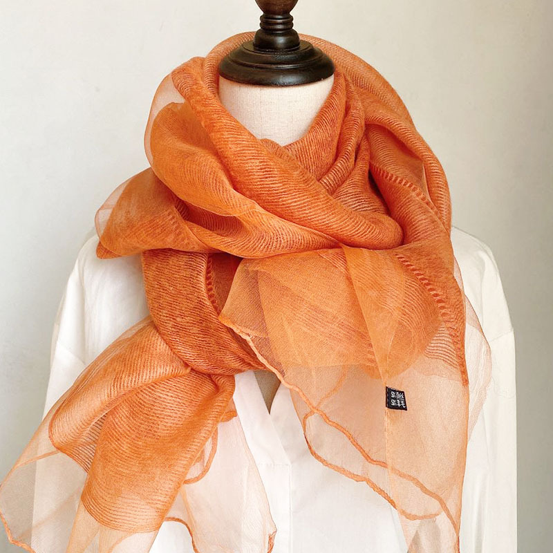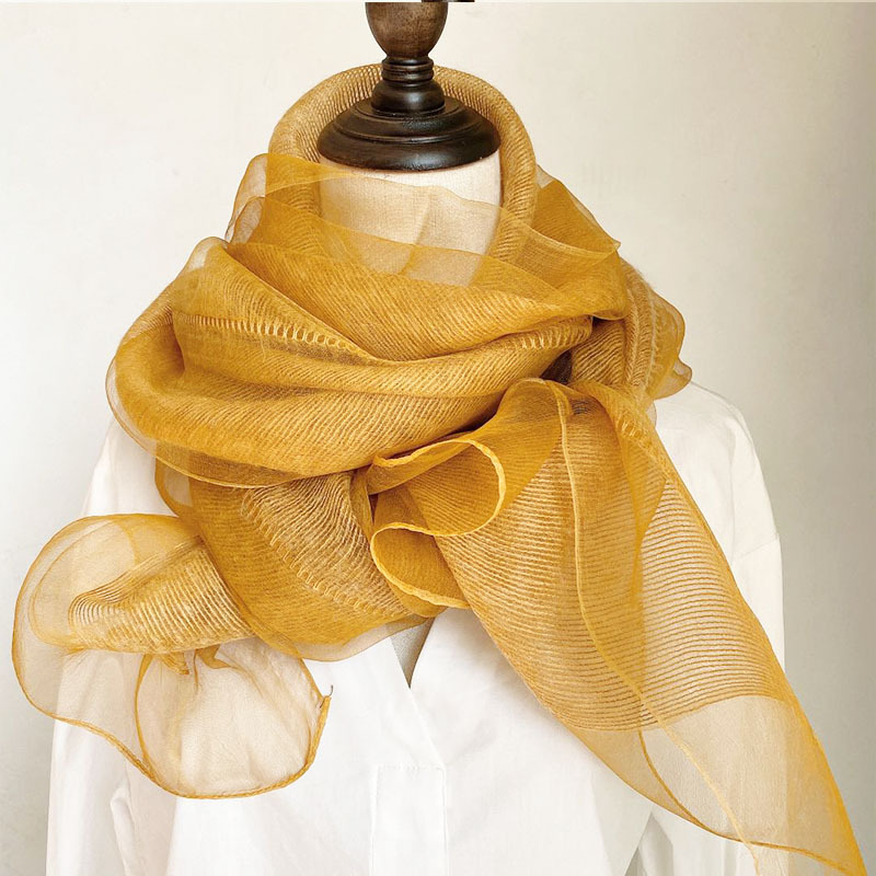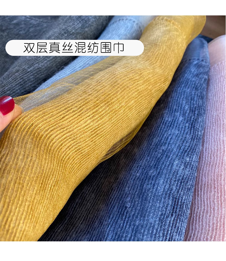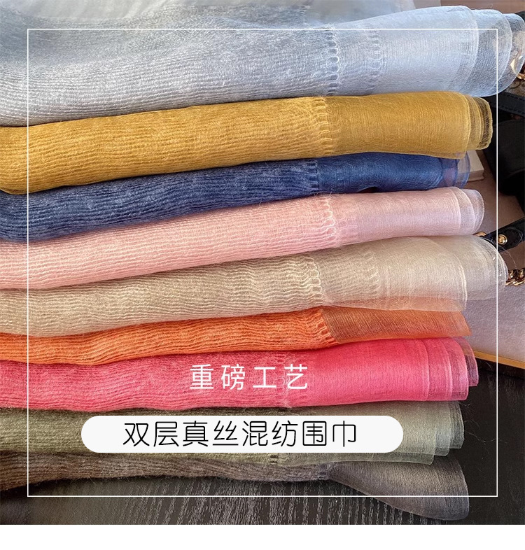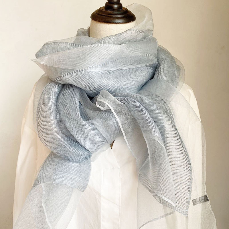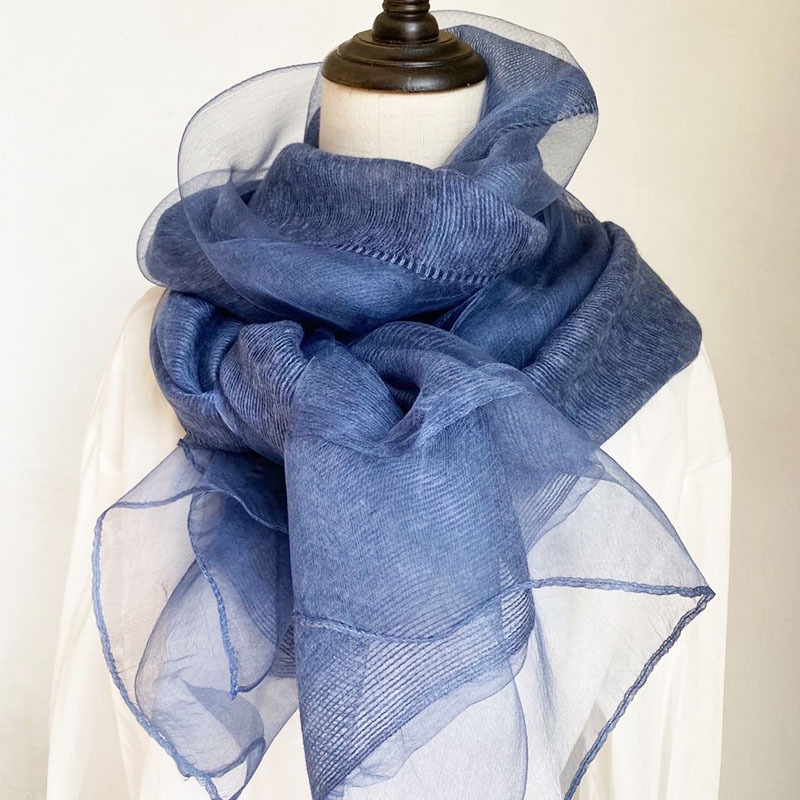 얇은 이중 레이어 블루 실크 혼방 스카프, 봄 가을 패션 고급 단색 뽕나무 실크 스카프, 여성용 스카프/숄스토어 가기