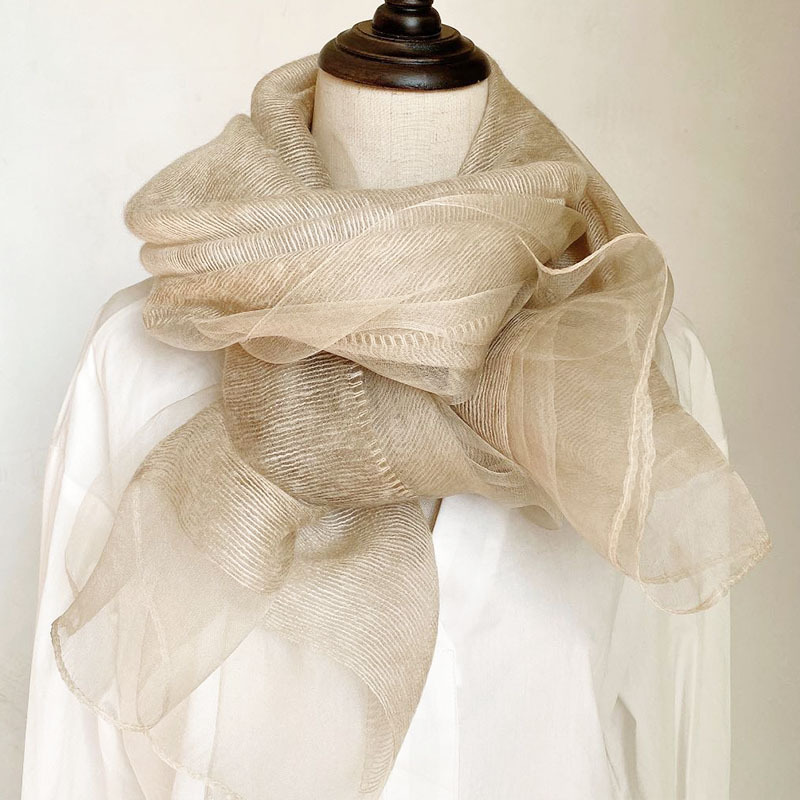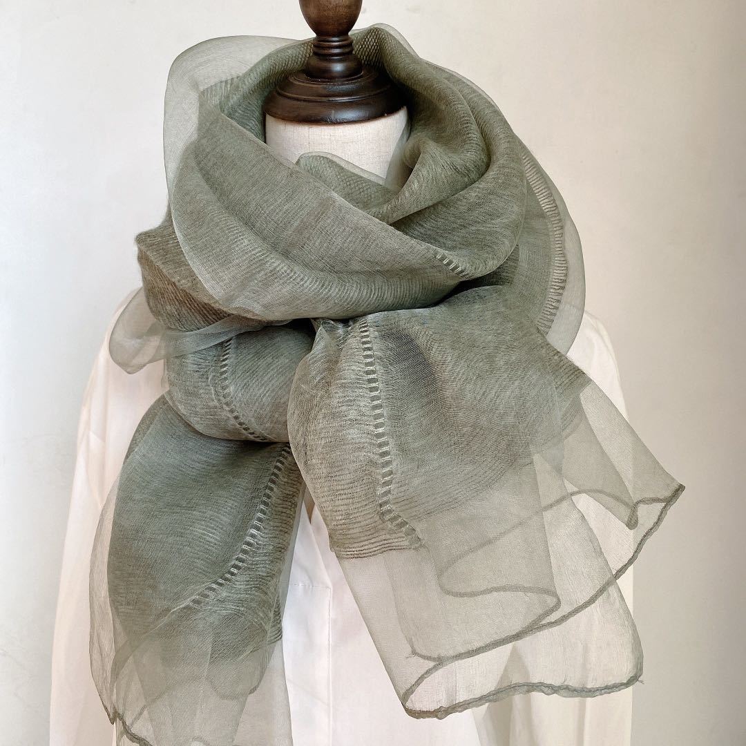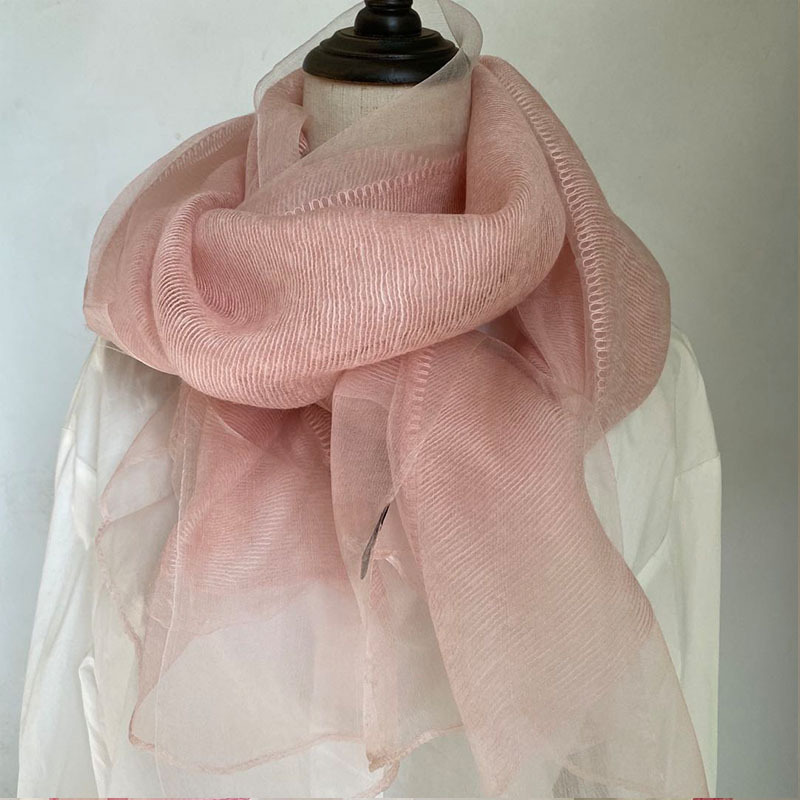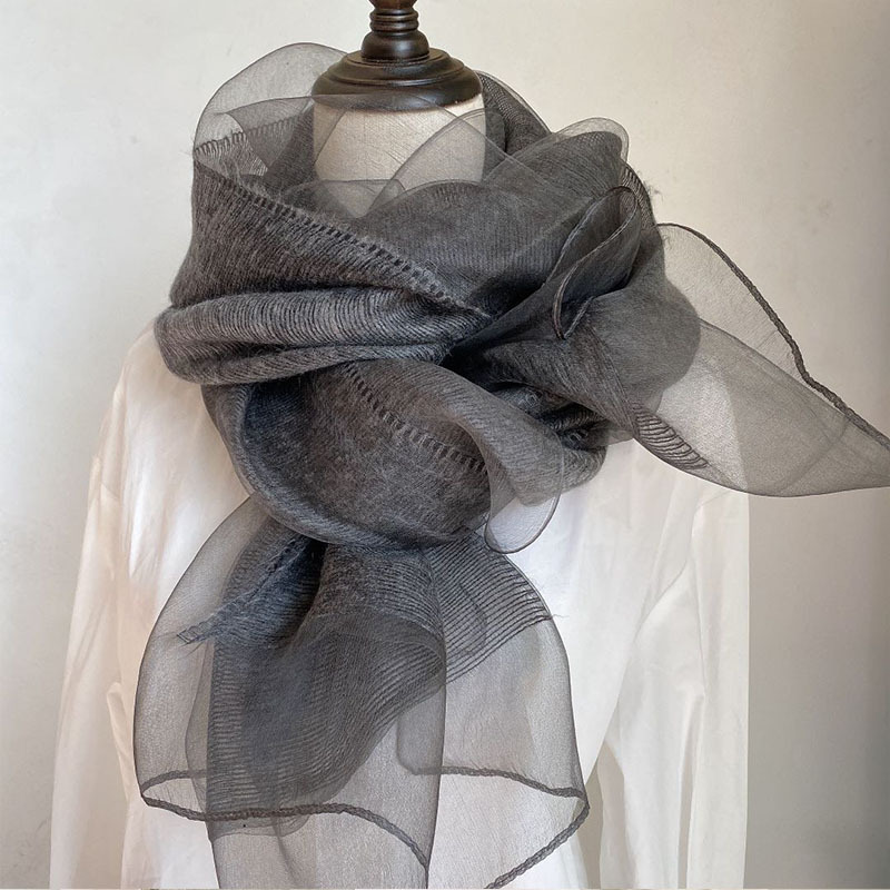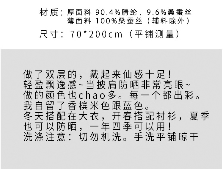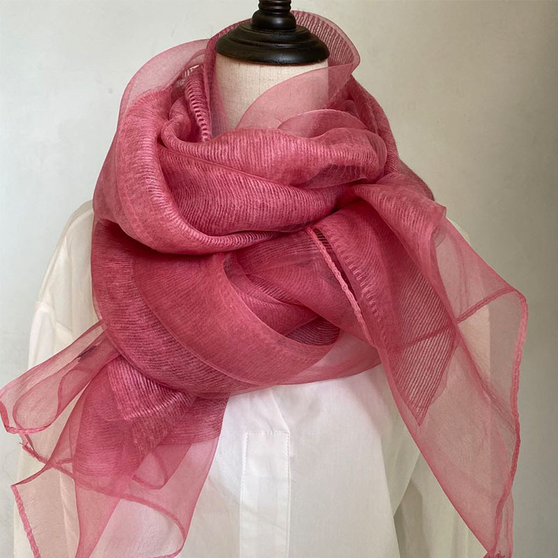 얇은 이중 레이어 블루 실크 혼방 스카프, 봄 가을 패션 고급 단색 뽕나무 실크 스카프, 여성용 스카프/숄스토어 가기