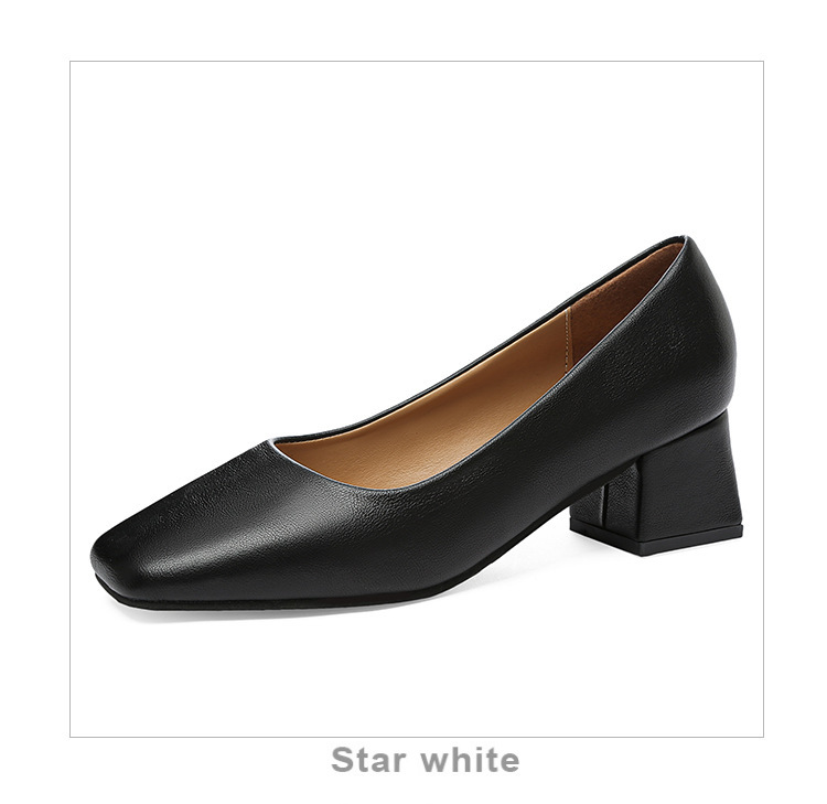 2023 새로운 봄 스퀘어 발가락 얕은 두꺼운 굽 싱글 신발 미들 힐 블랙 작업 작은 가죽 신발 플러스 사이즈 여성 신발