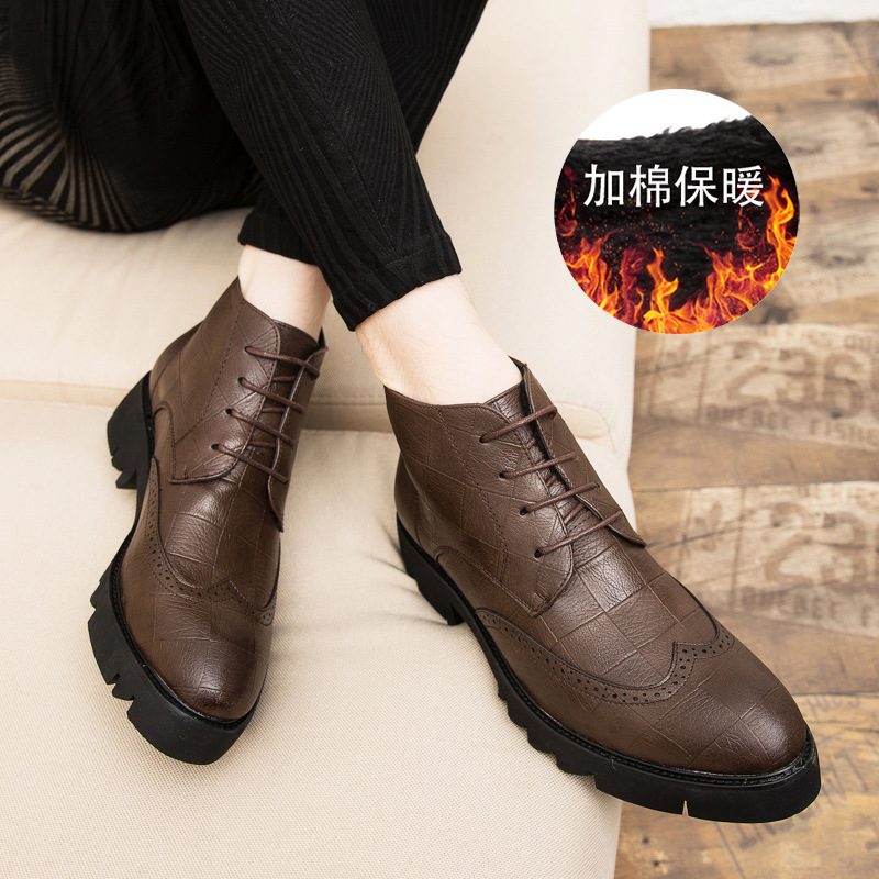 新款马丁靴男布洛克复古高帮鞋男靴英伦雕花潮流皮鞋韩版男鞋潮靴