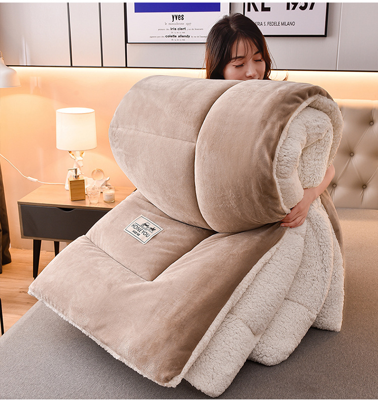 2023 새로운 단색 따뜻한 눈송이 벨벳 양고기 벨벳 겨울 이불 코어 기모 두꺼운 겨울 이불 실크 코튼 이불스토어 가기