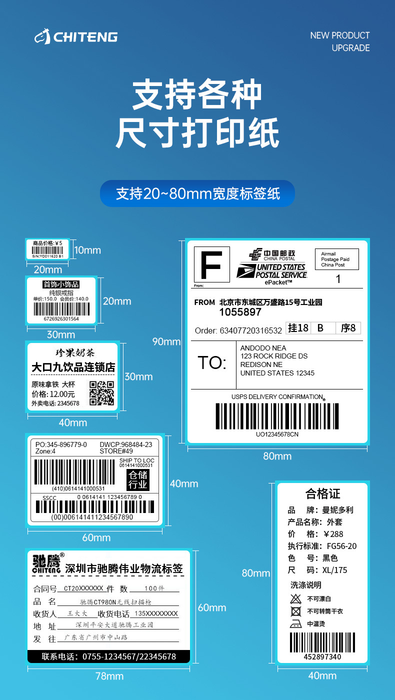 • 320D-80MM/블루투스 버전 [휴대폰 + 컴퓨터 인쇄] (라벨 3롤 무료)