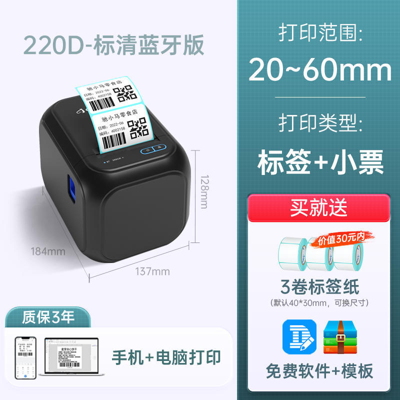 • 220D-60MM/블루투스 버전 [휴대 전화 컴퓨터 인쇄] 레이블의 3 볼륨을 보낼 수)
