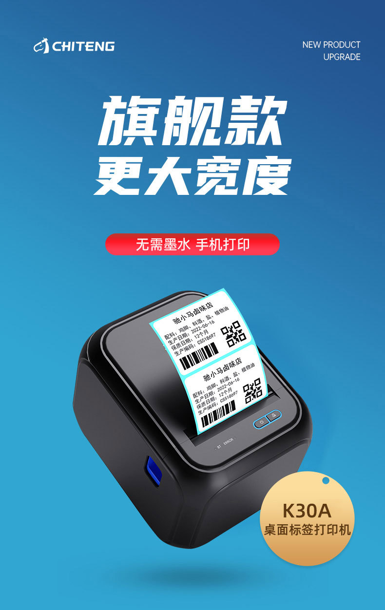 치텐 K30A 라벨 프린터 무선 블루투스 소형 접착식 식품 태그 바코드 열전사 프린터 휴대용스토어 가기