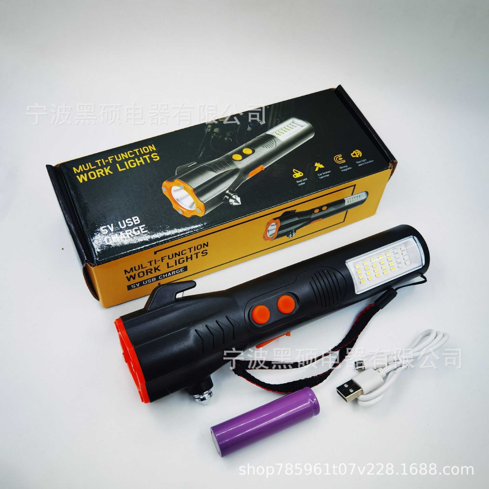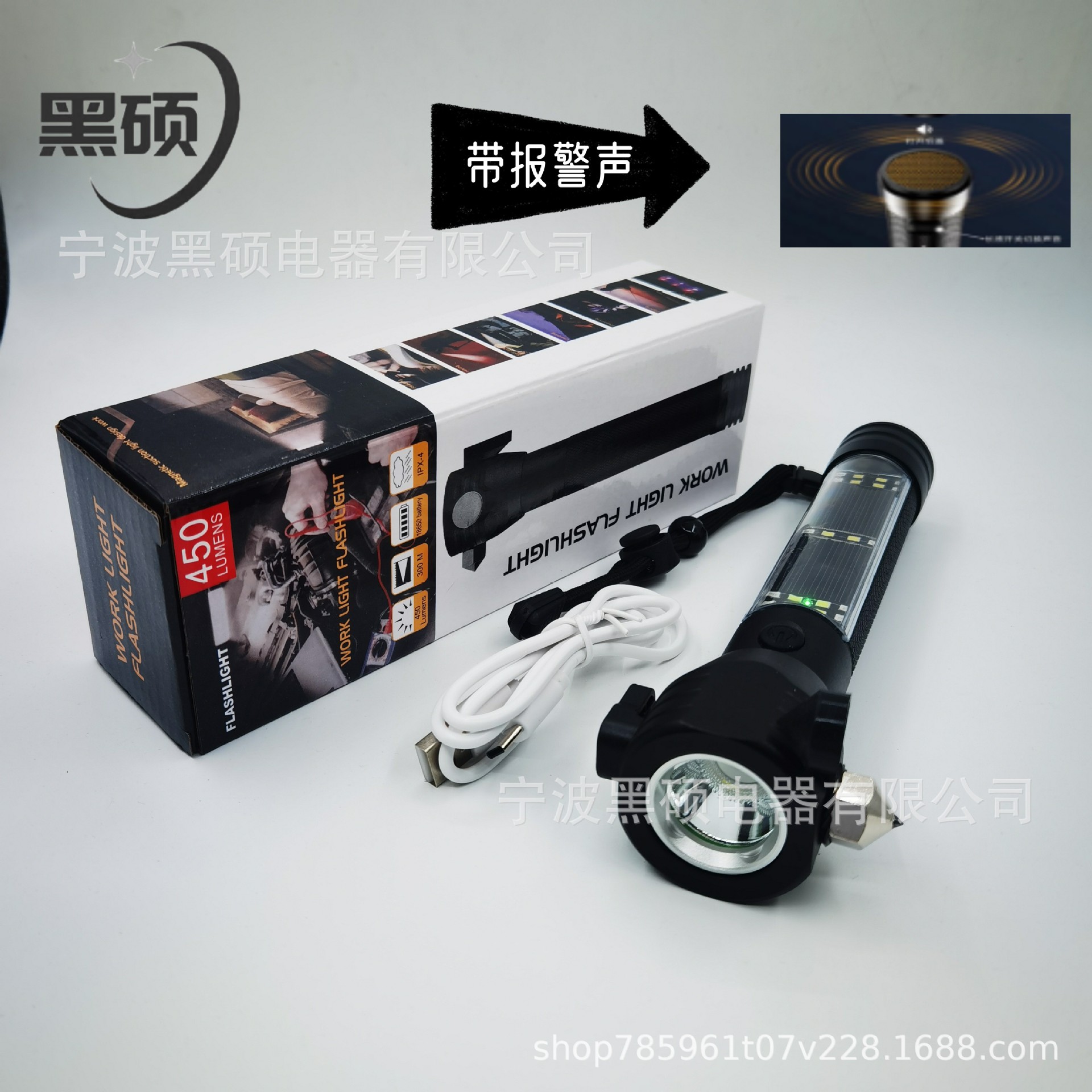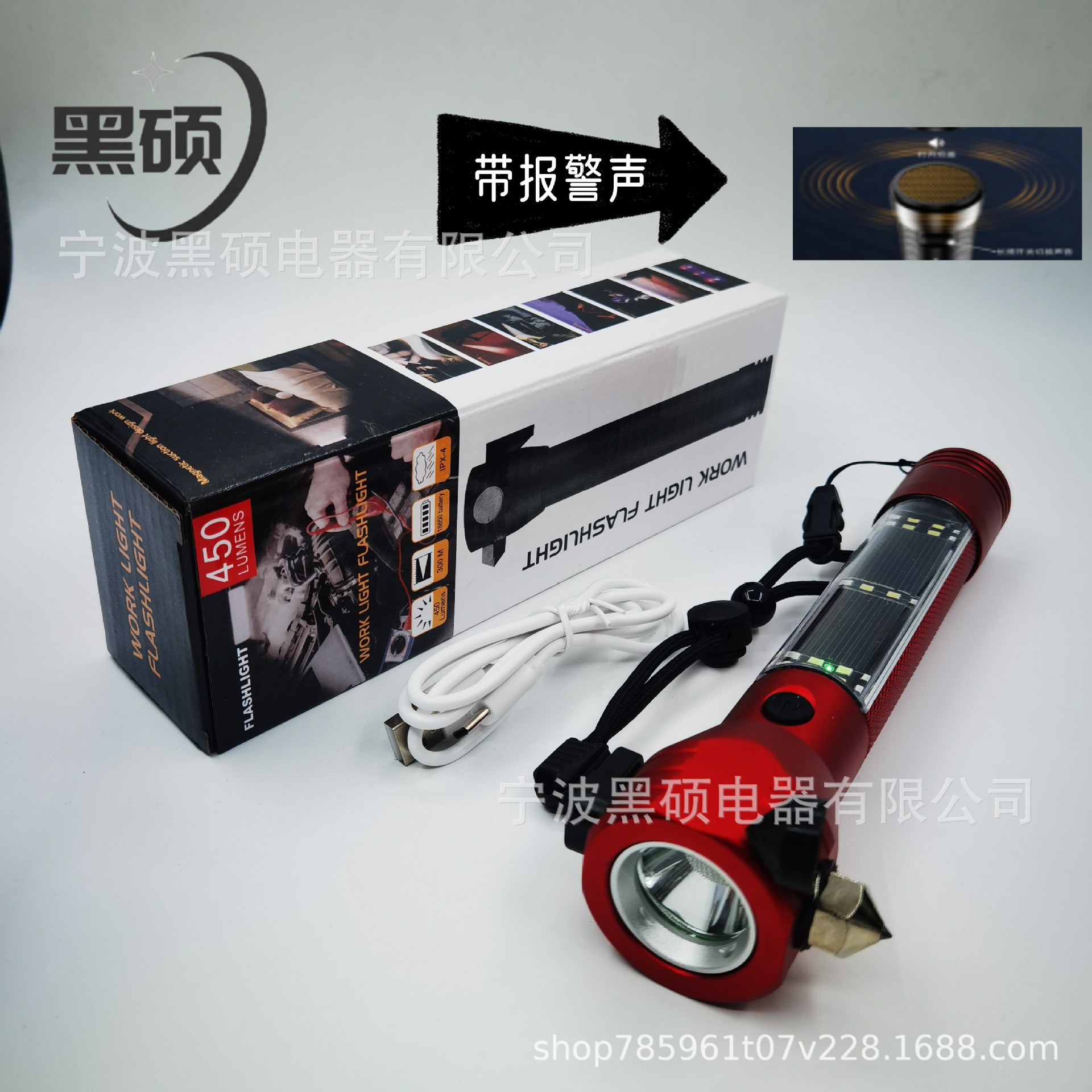 야외 비상 자가 구조 자동차 안전 망치 손전등 화재 창 파괴자 태양열 충전식 강한 빛 경고 작업 조명