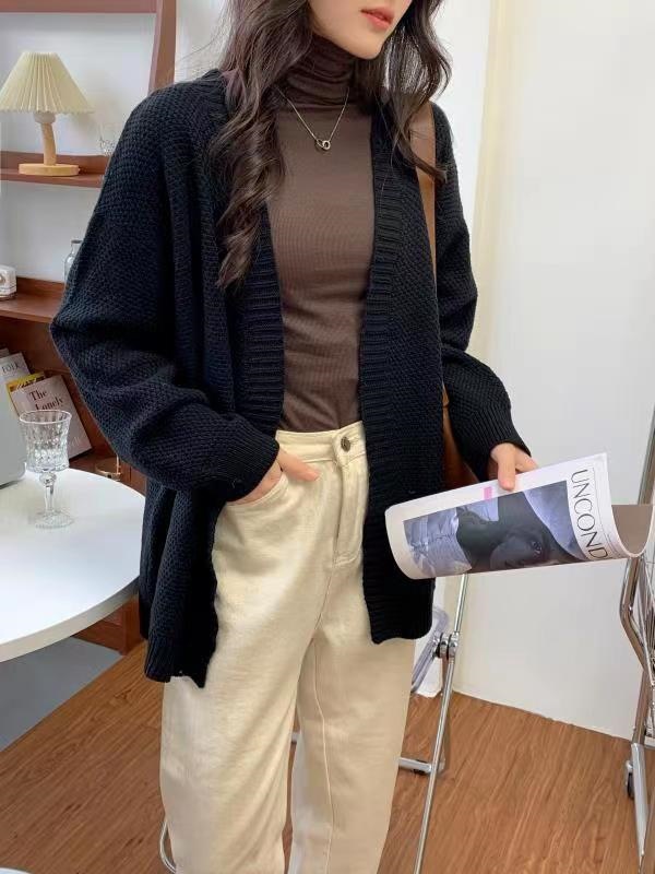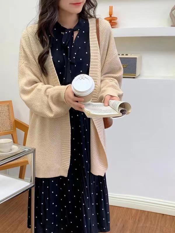 Maoning 프랑스어 복고풍 중간 길이 코트 가을, 겨울 새로운 두꺼운 스레드 느슨한 통근 스웨터 여성 니트 카디건스토어 가기