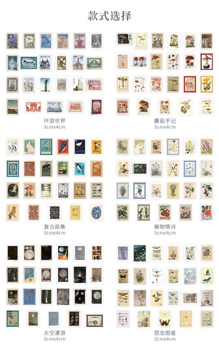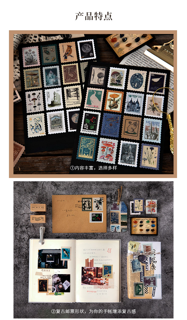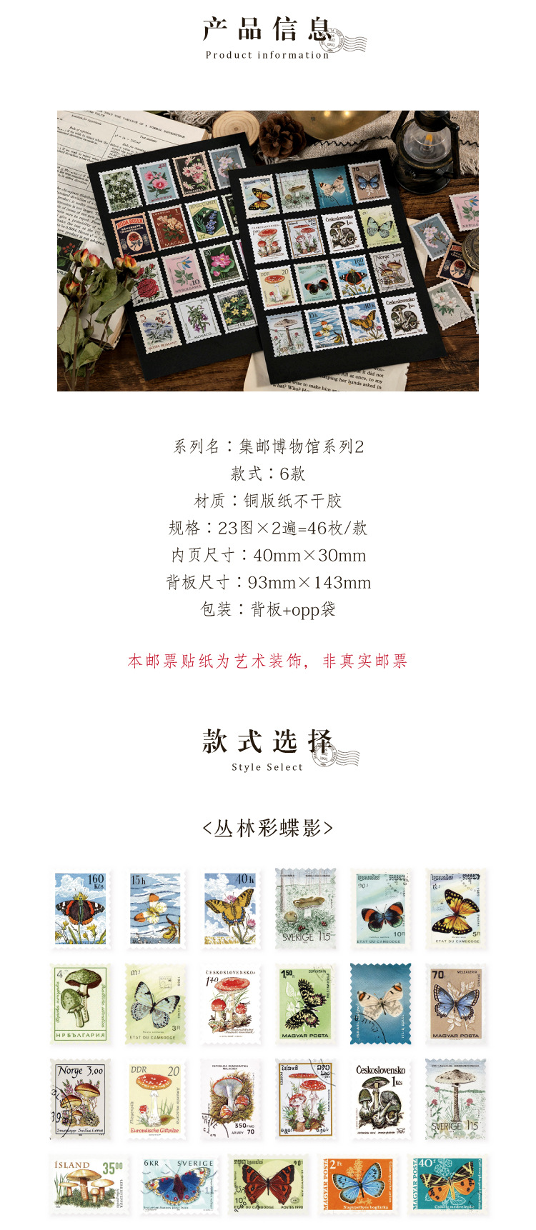 필라델피아 박물관 스탬프 스티커 팩 레트로 식물 동물 손 계정 스티커 사진 앨범 일기 손 계정 장식 재료스토어 가기