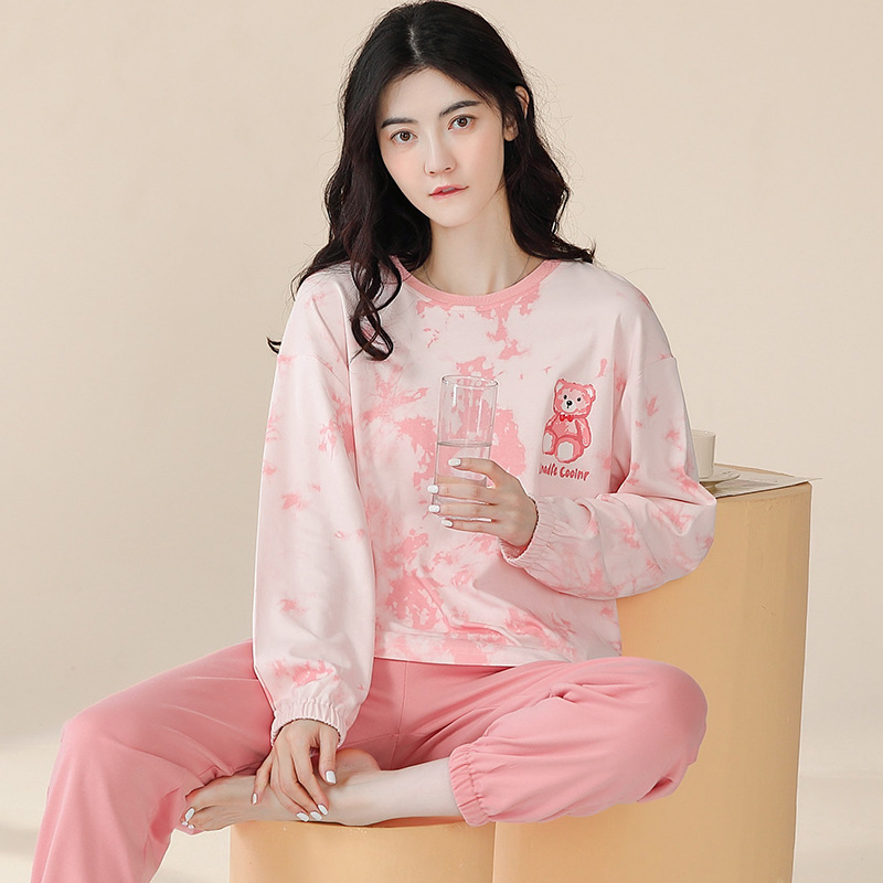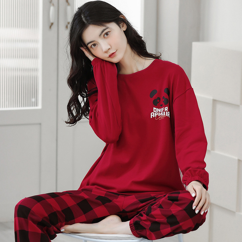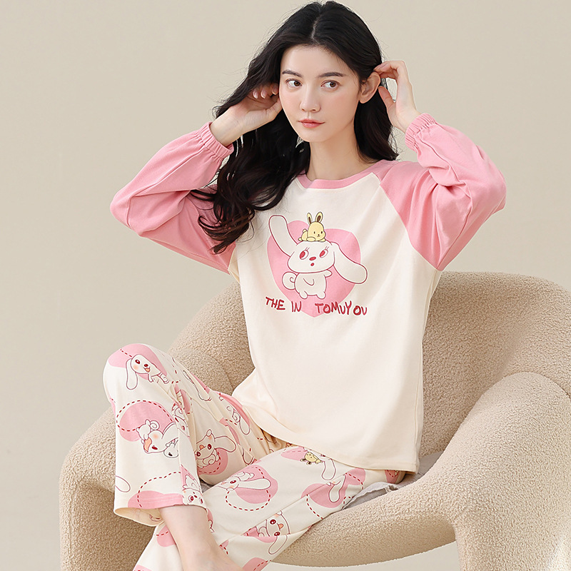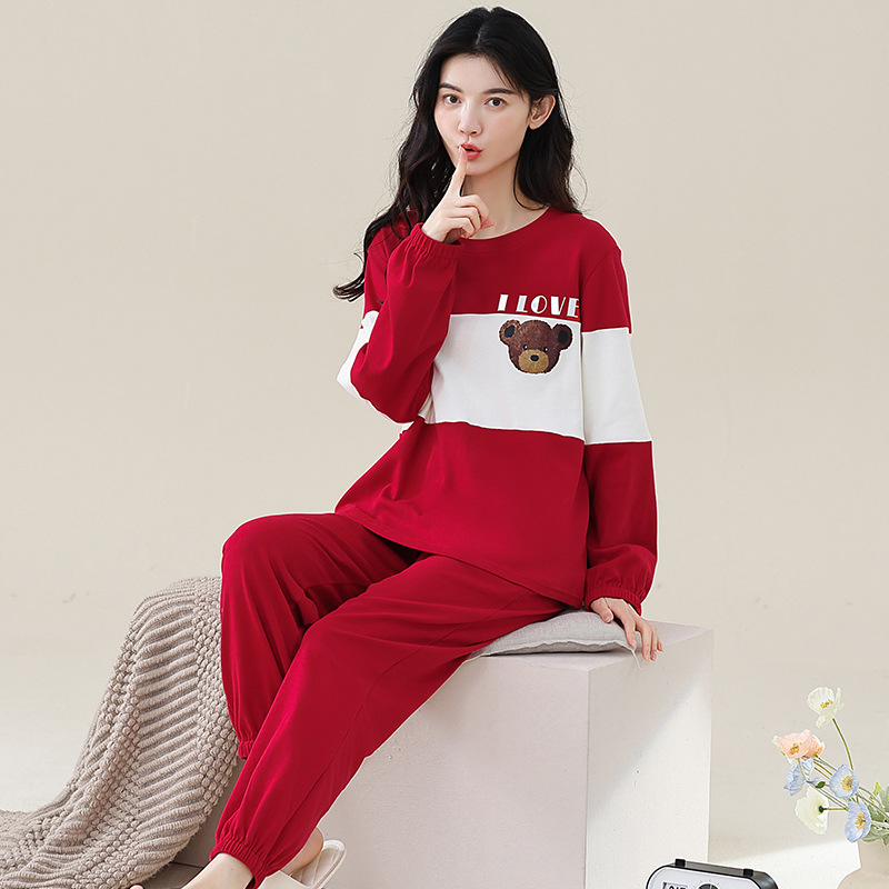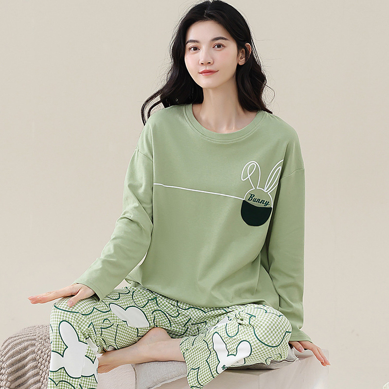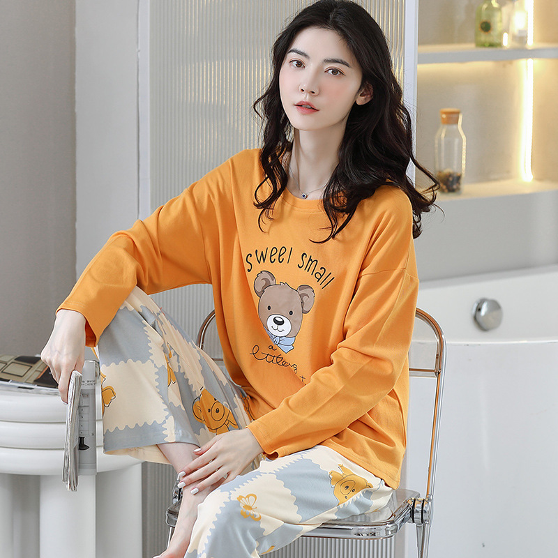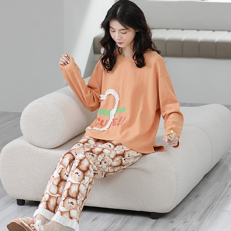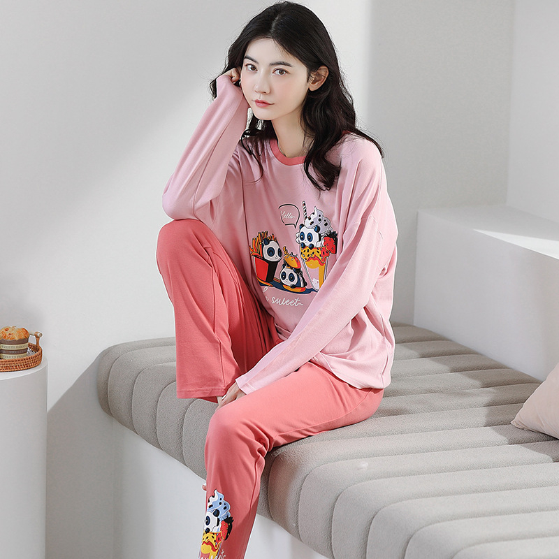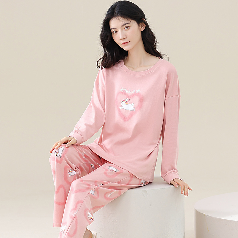 여성용 순면 잠옷, 가을 겨울 긴팔 라운드넥, 편안하고 피부 친화적인 신장면, 순면 봄 가을 홈웨어 세트
