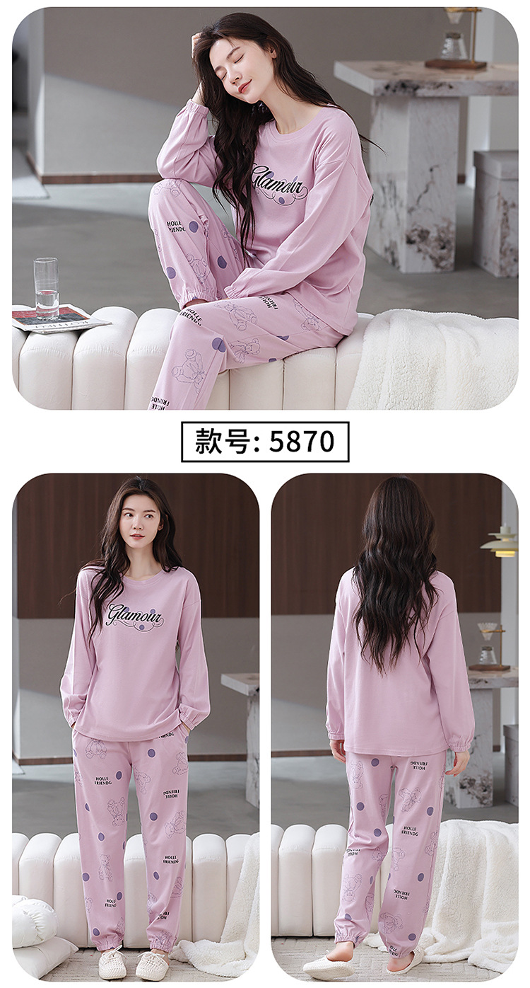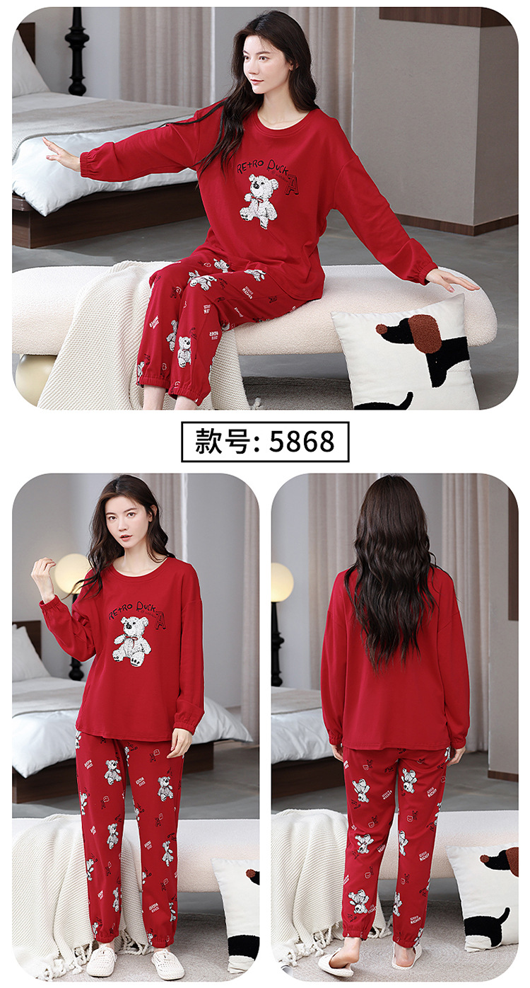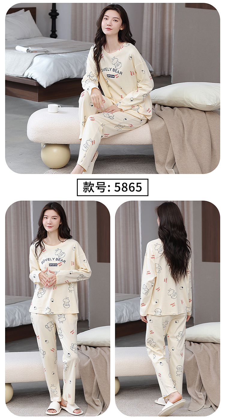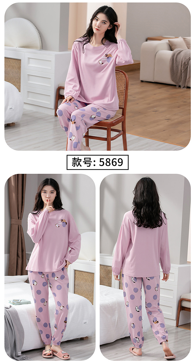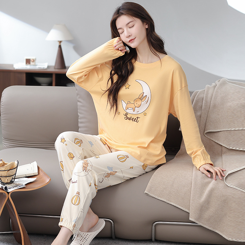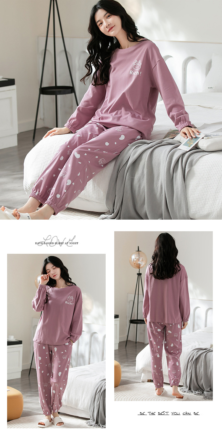 여성용 순면 잠옷, 가을 겨울 긴팔 라운드넥, 편안하고 피부 친화적인 신장면, 순면 봄 가을 홈웨어 세트스토어 가기