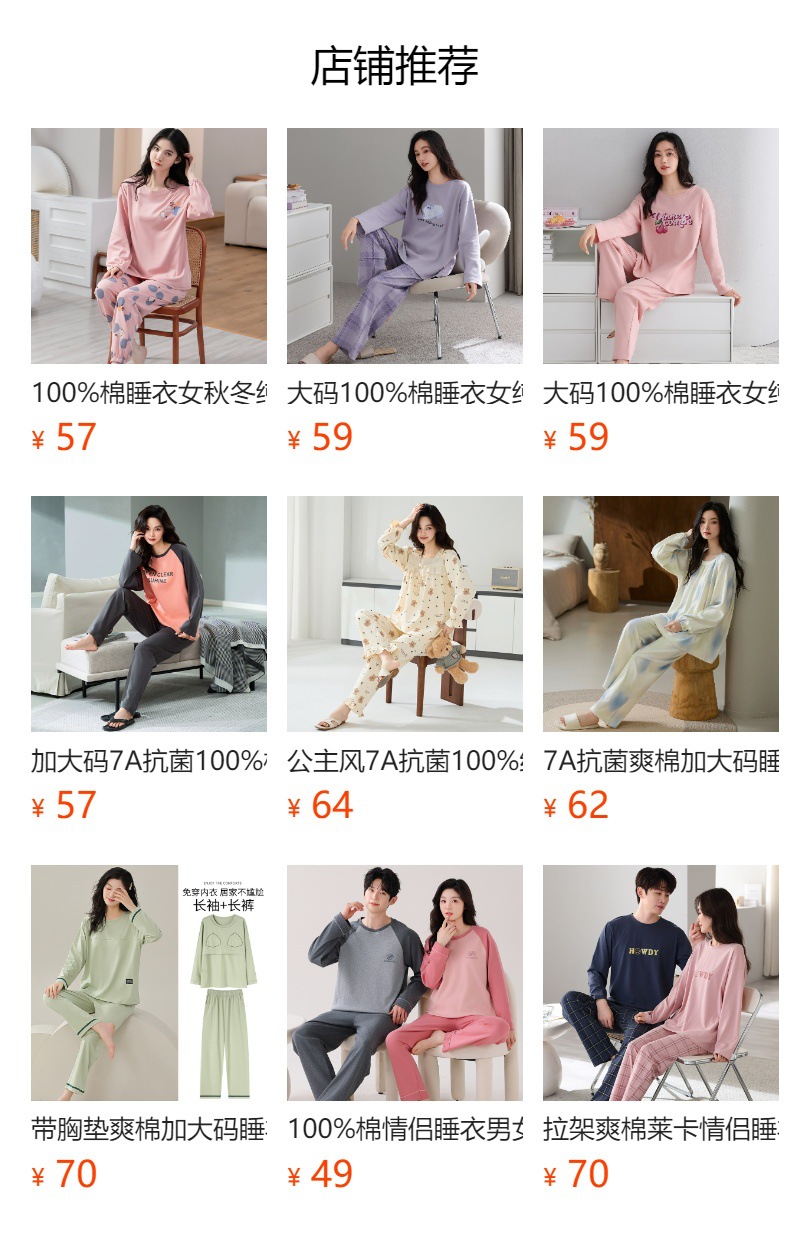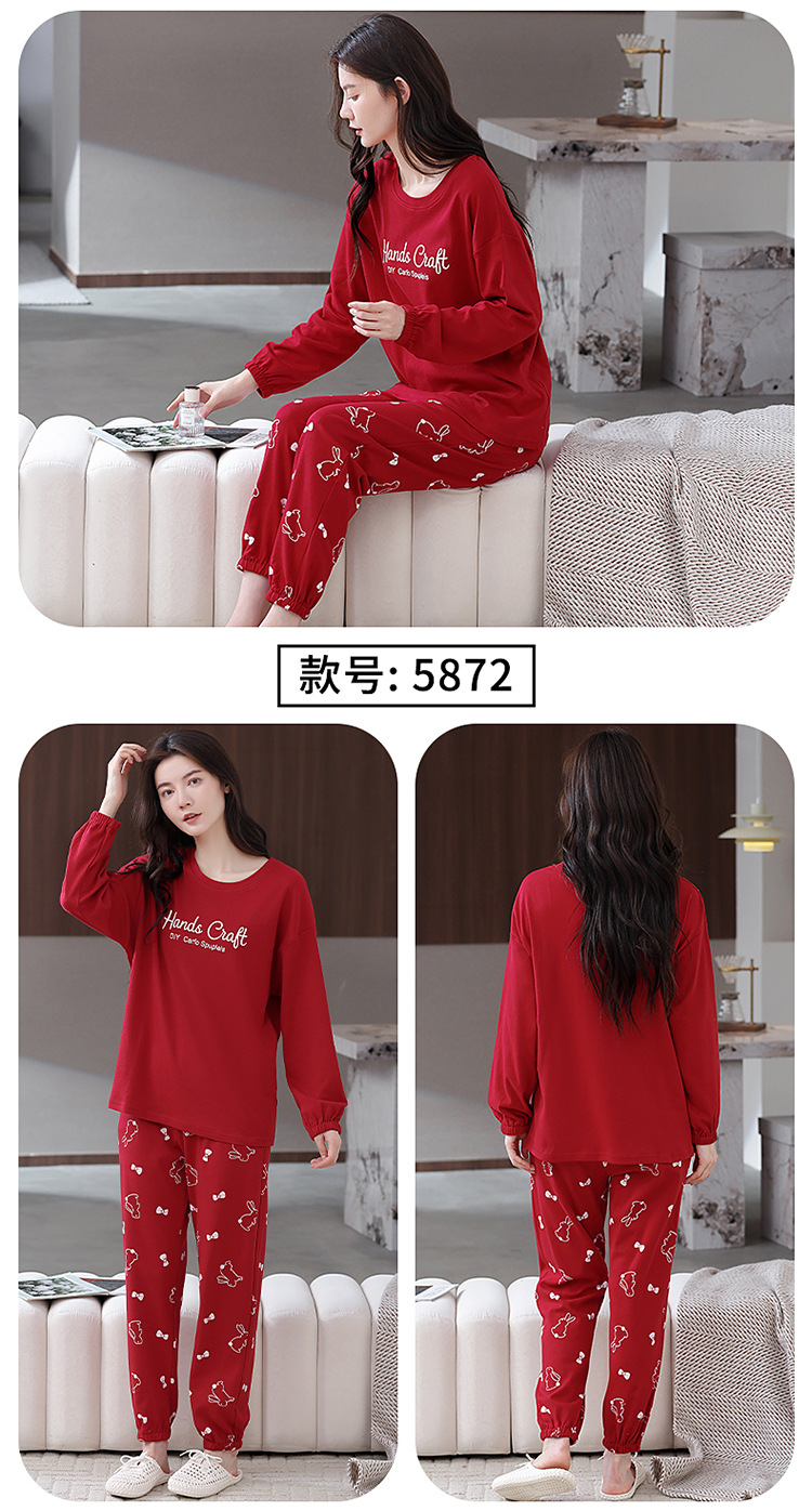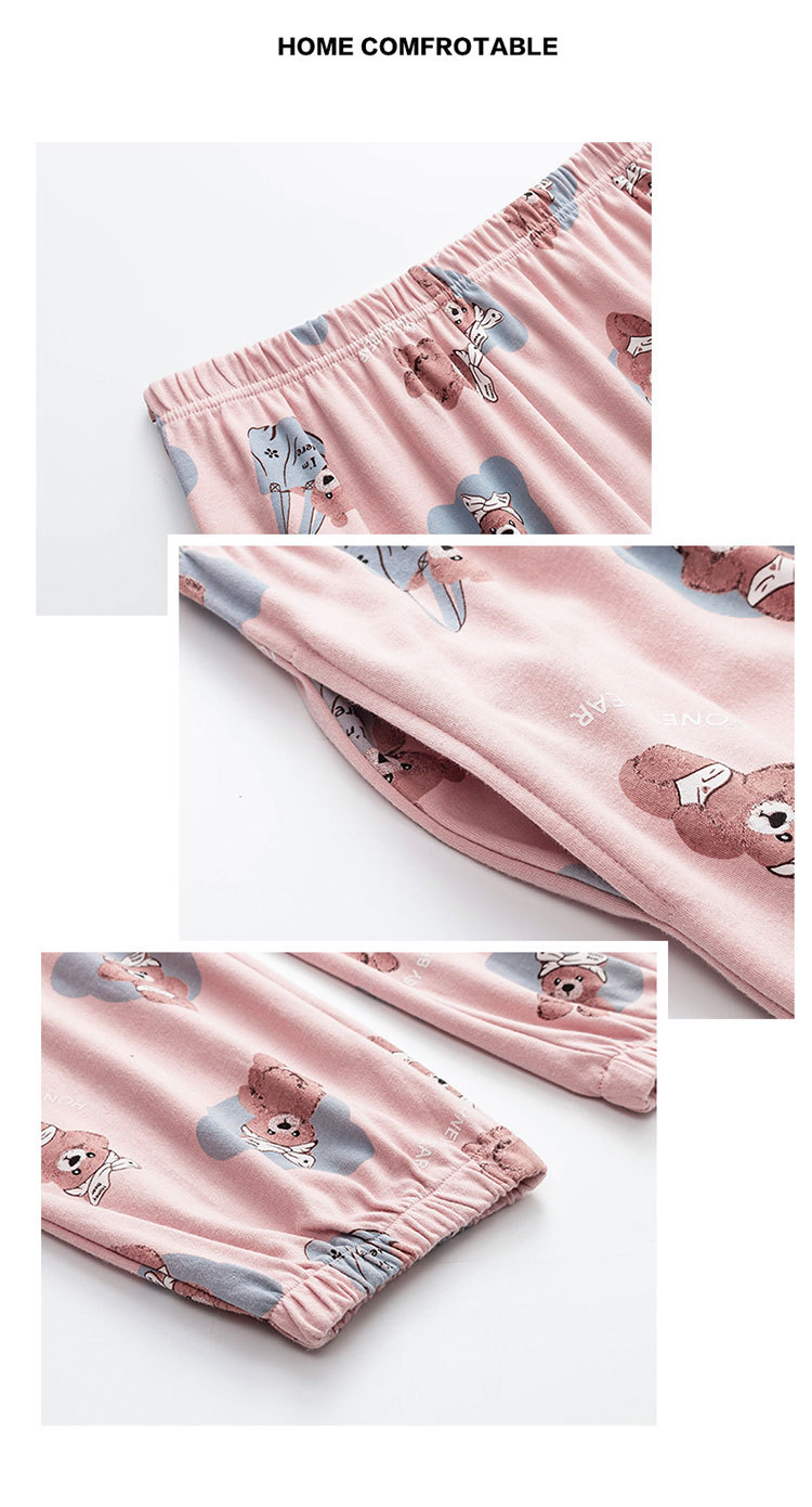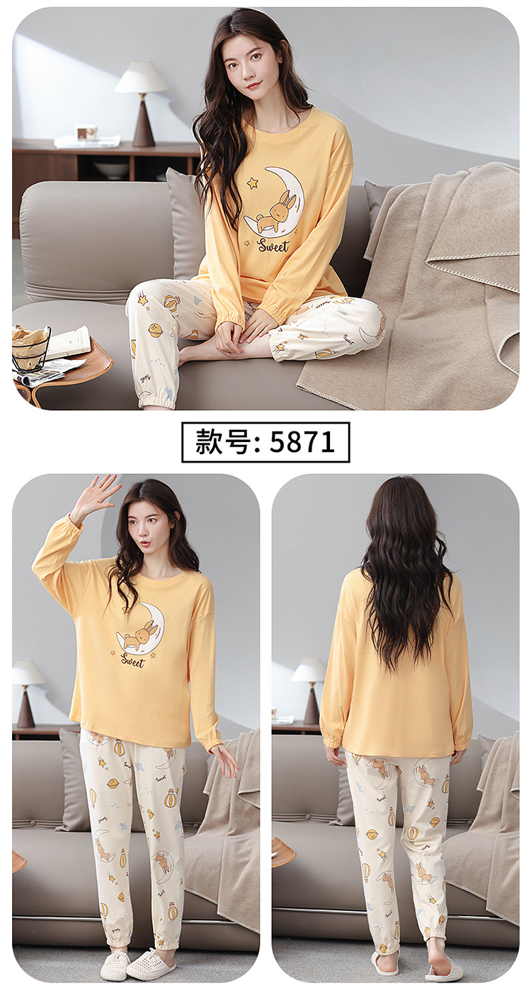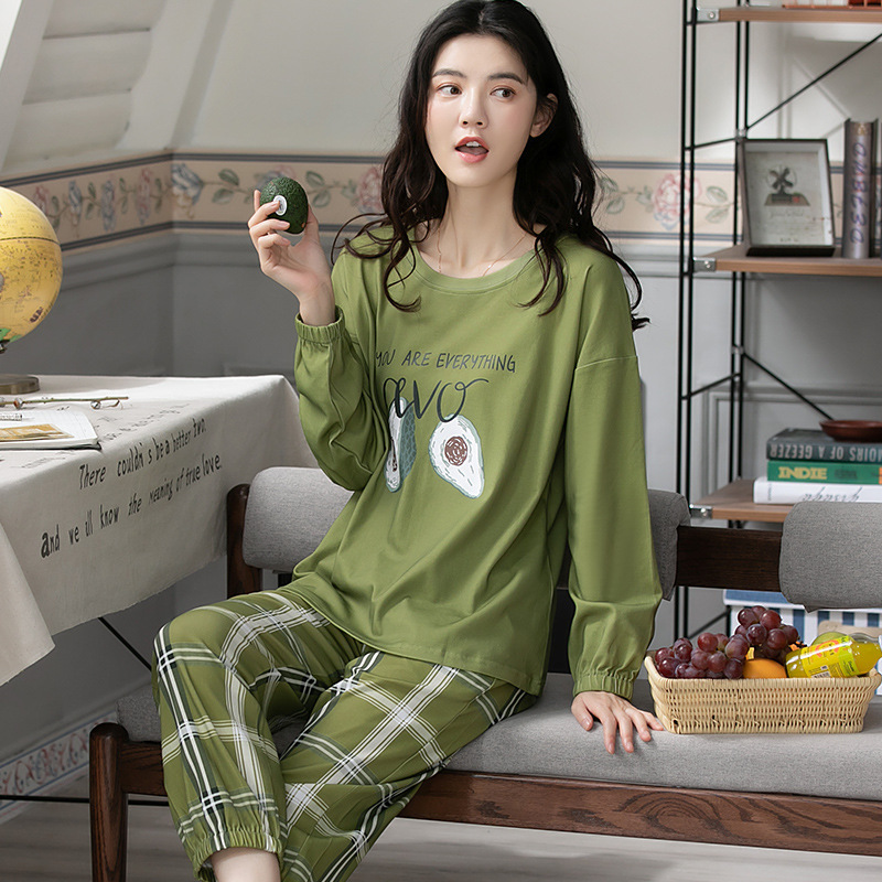 여성용 순면 잠옷, 가을 겨울 긴팔 라운드넥, 편안하고 피부 친화적인 신장면, 순면 봄 가을 홈웨어 세트스토어 가기