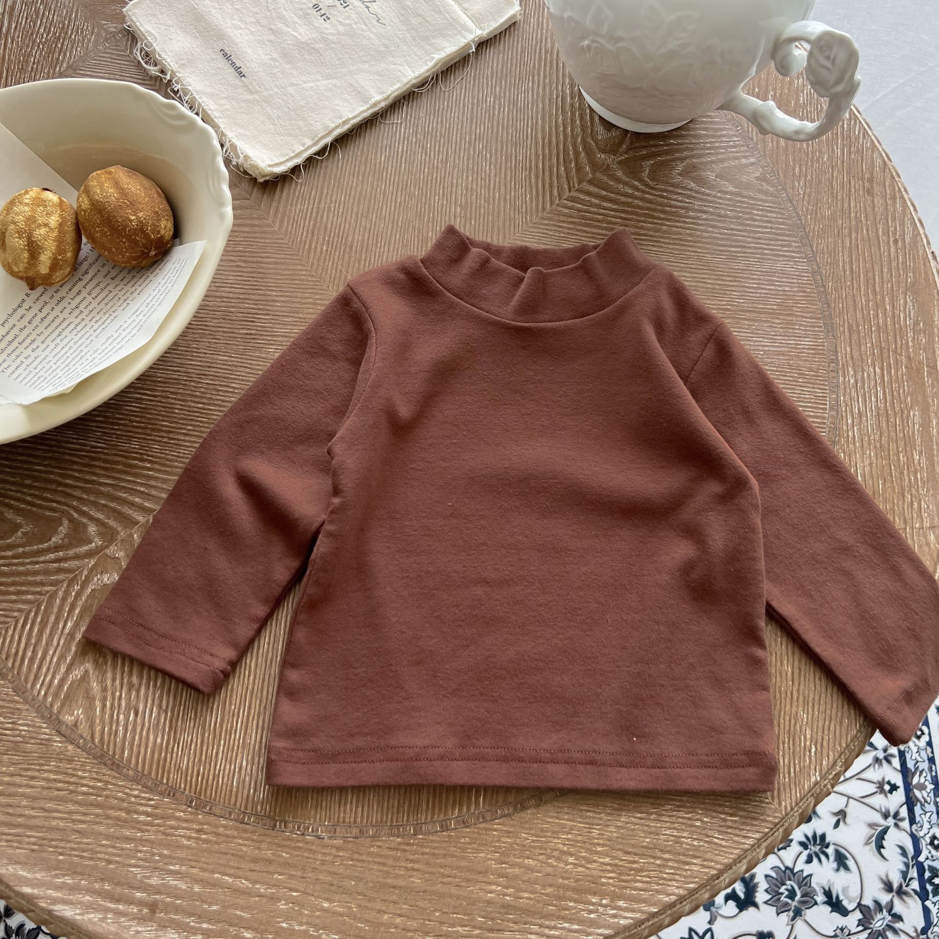 婴童t恤秋冬2022婴幼儿宝宝衣服简约棉质长袖上衣半领纯色打底衫