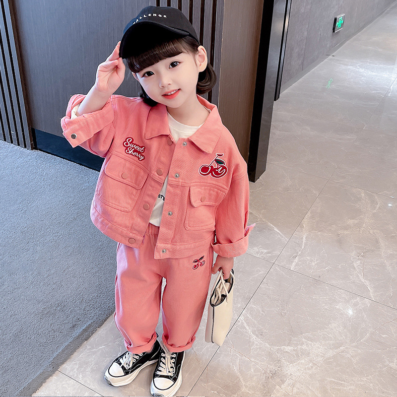 여자 데님 작업복 투피스 봄, 가을 2025 중소 어린이를위한 새로운 유행 아기 소녀 봄 정장스토어 가기