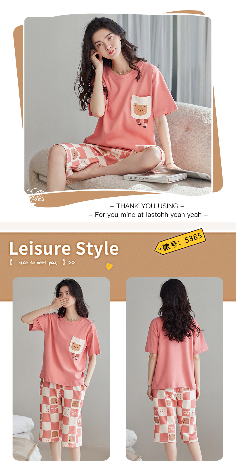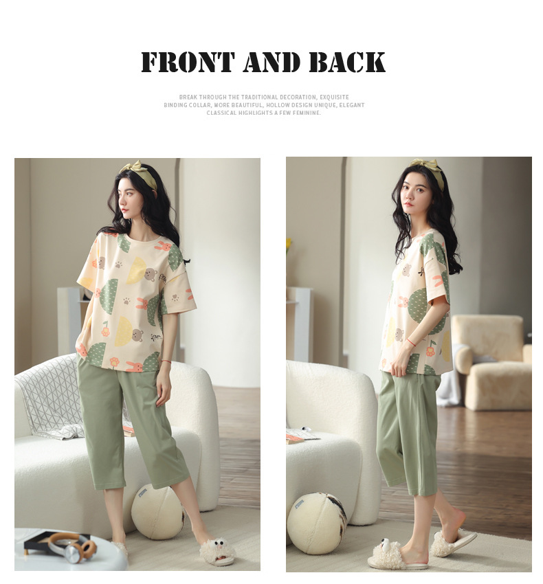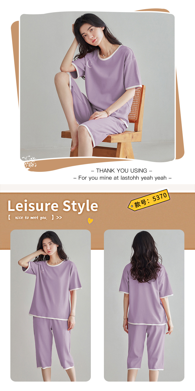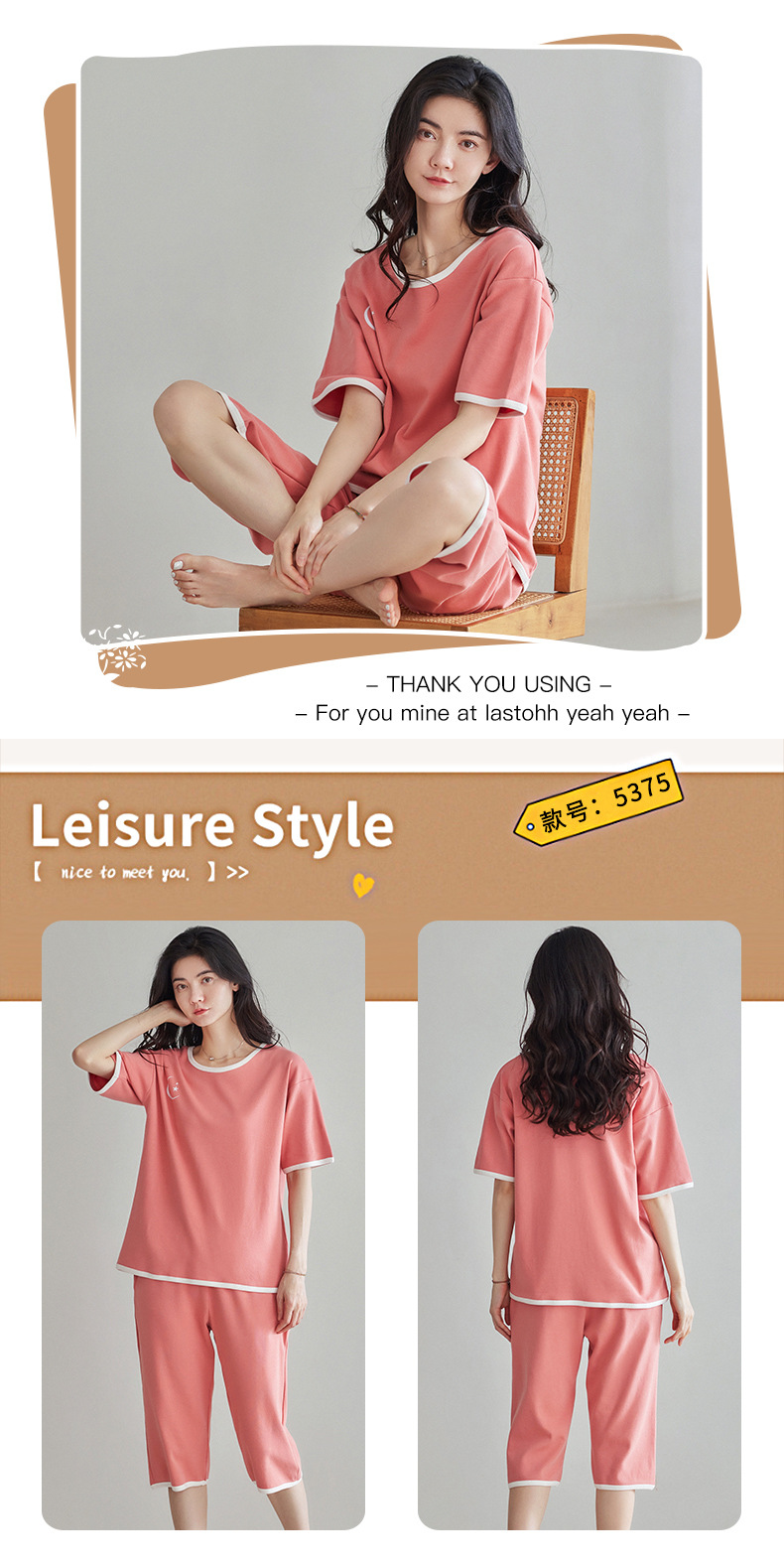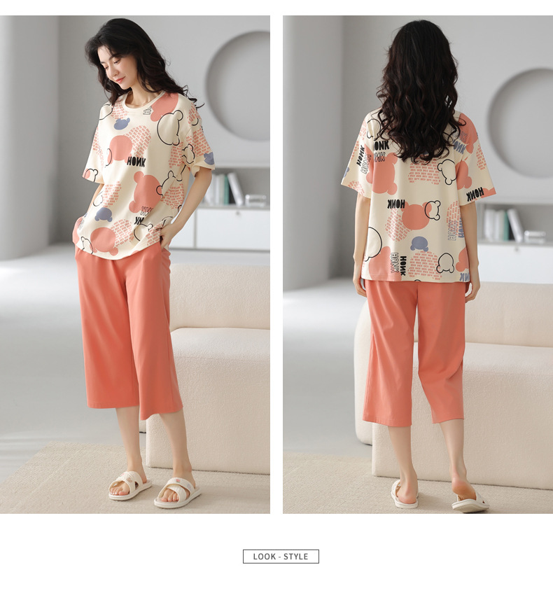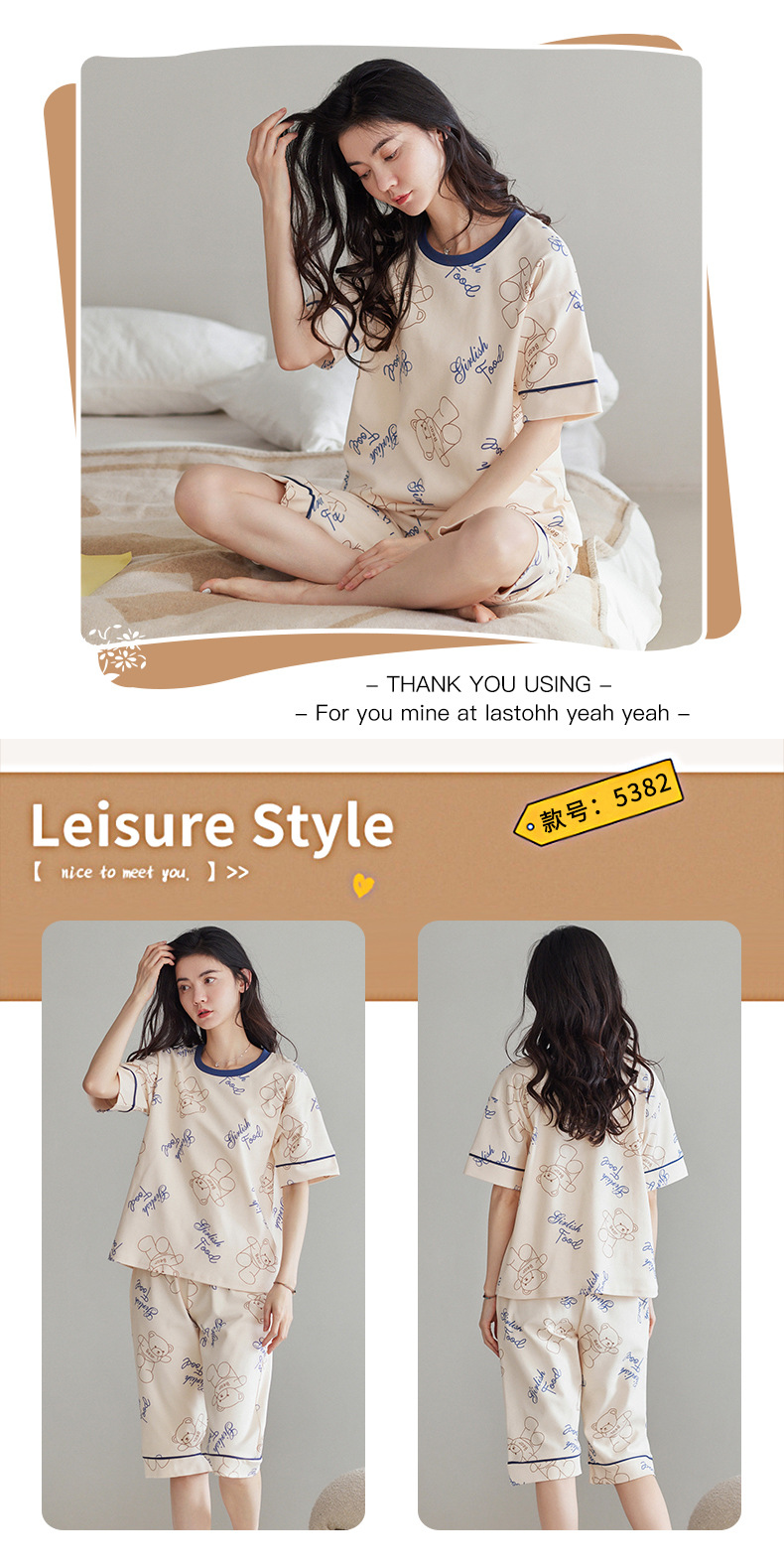2025 순면 잠옷 여성 여름 반팔 세트 달콤하고 캐주얼한 심플한 7부 바지 편안한 홈웨어 외출복으로도 가능
