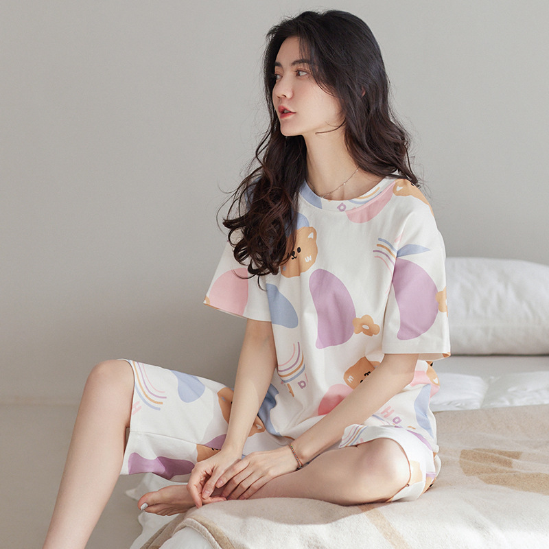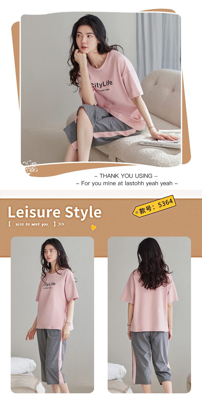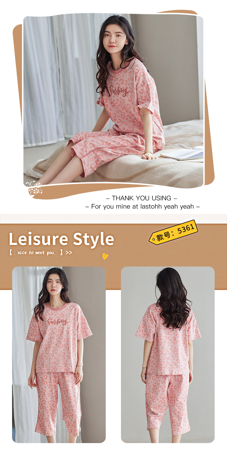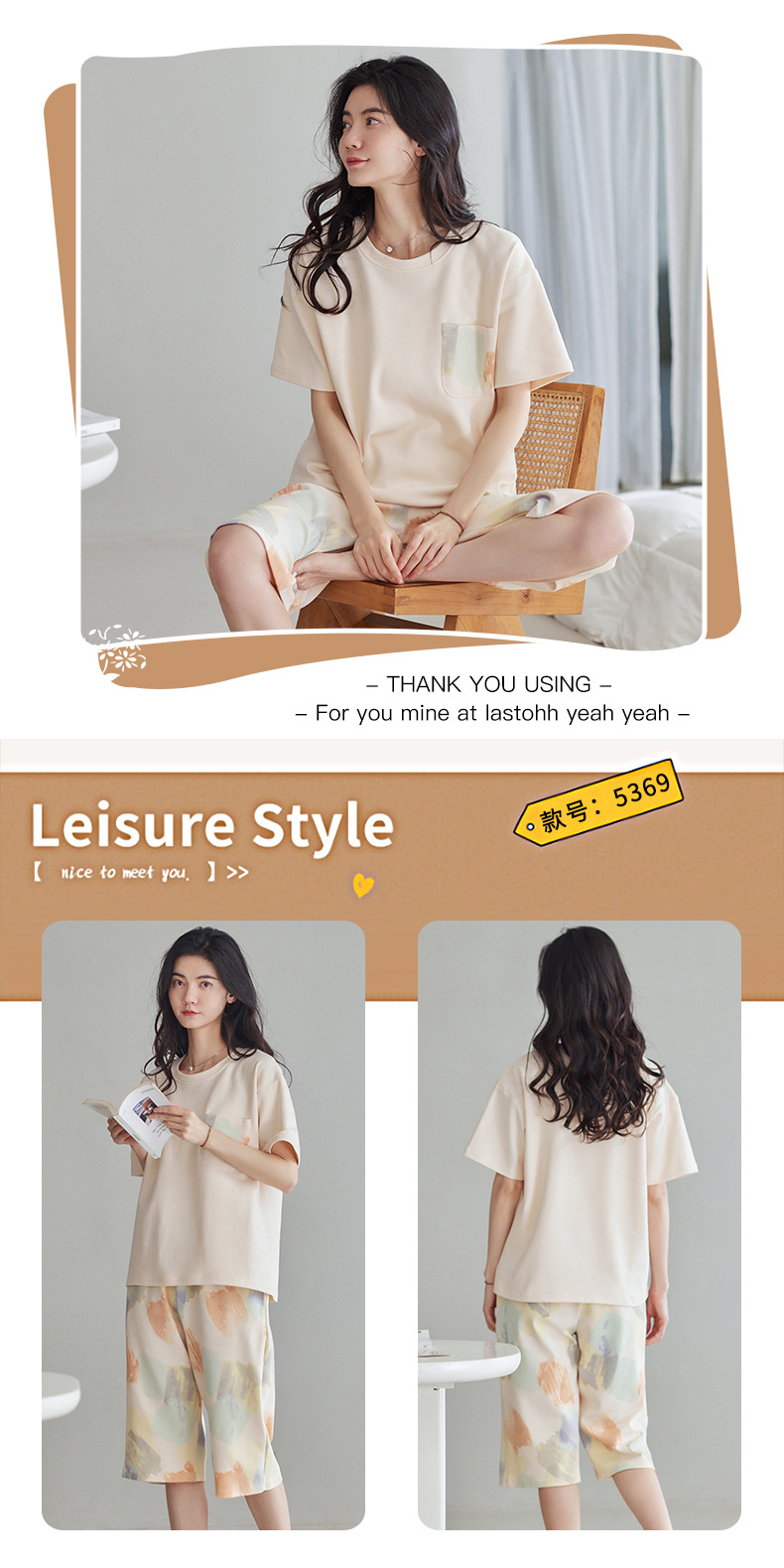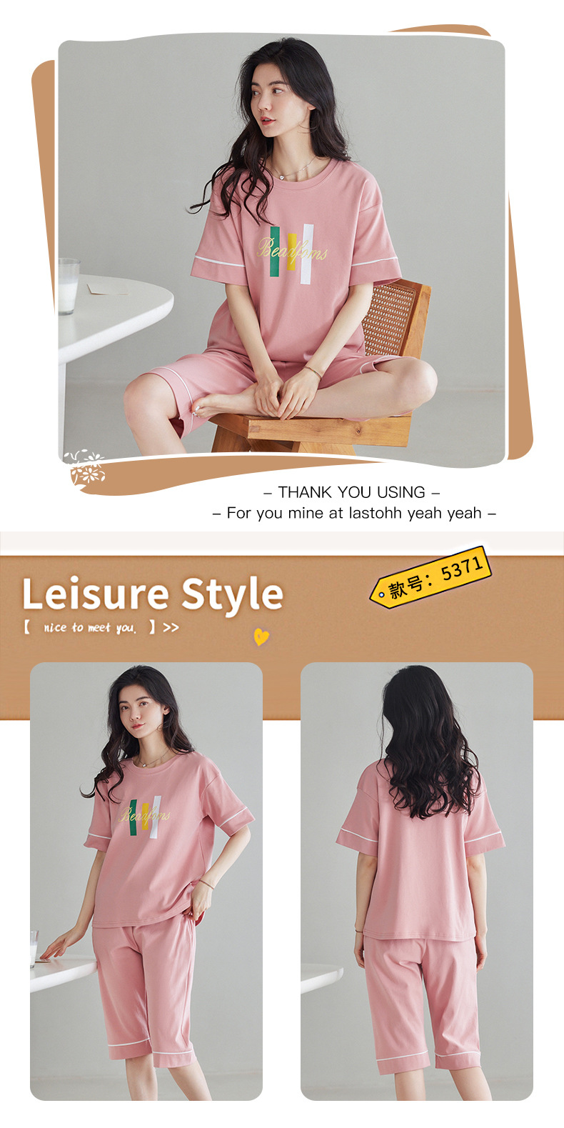2025 순면 잠옷 여성 여름 반팔 세트 달콤하고 캐주얼한 심플한 7부 바지 편안한 홈웨어 외출복으로도 가능