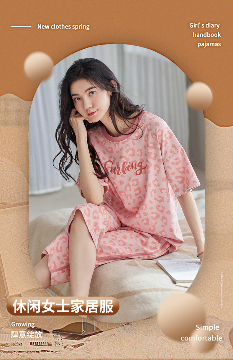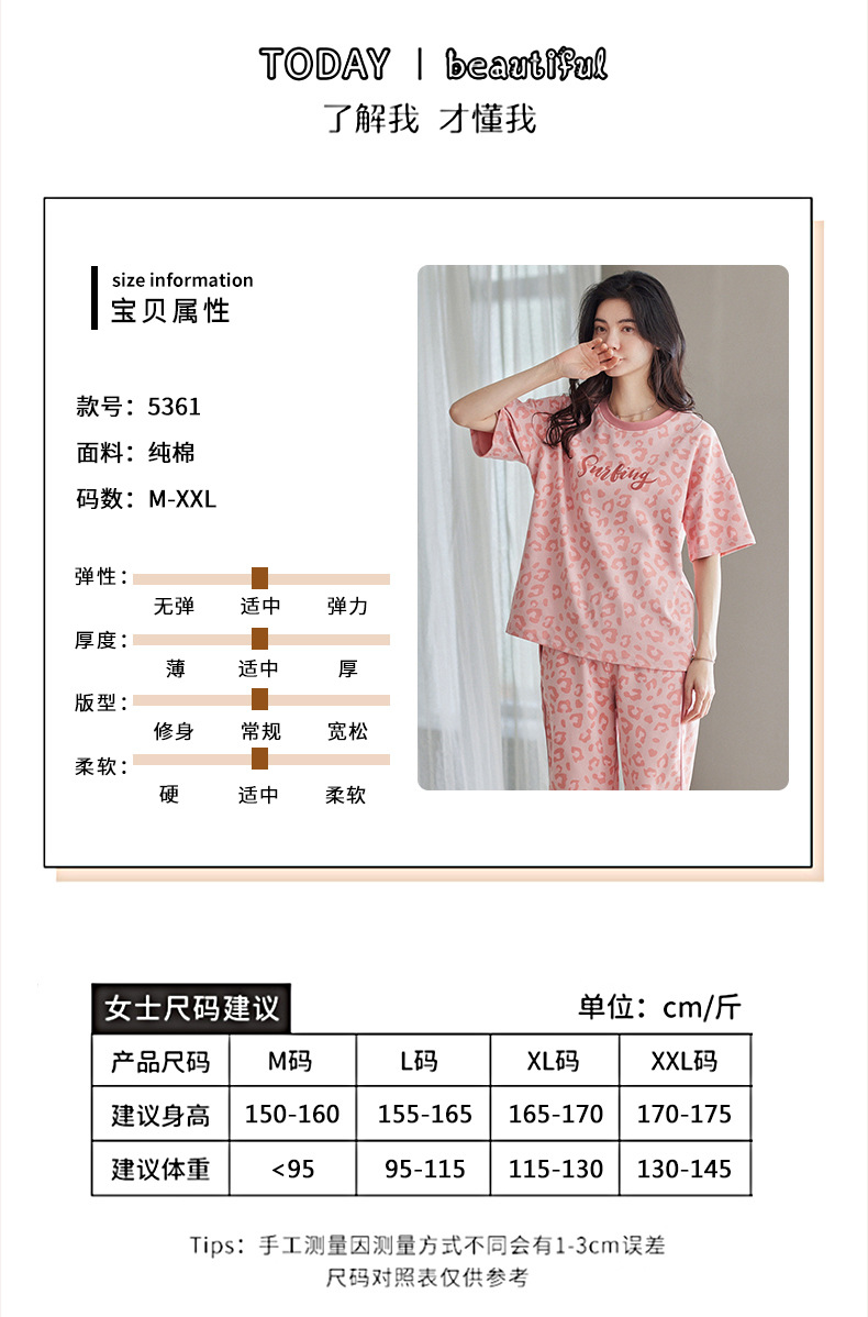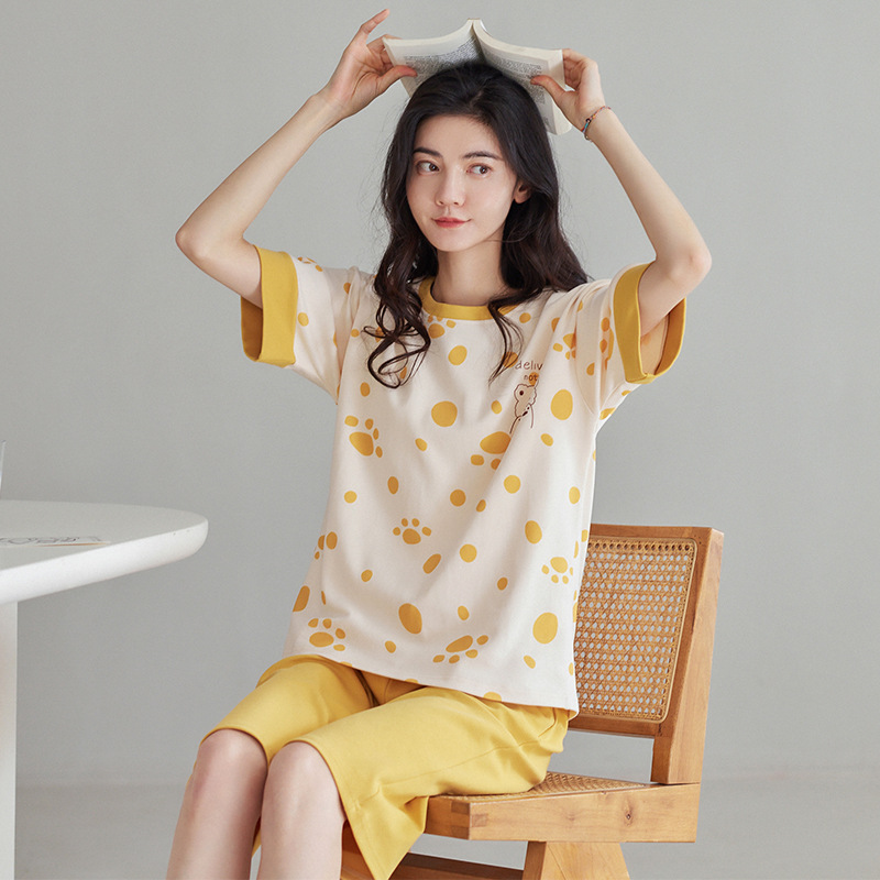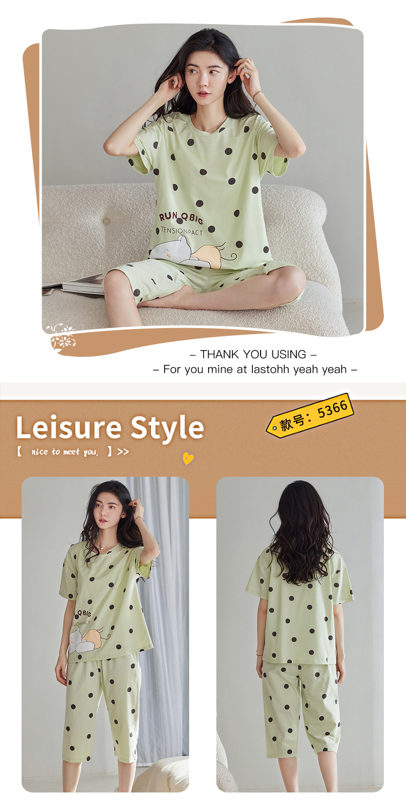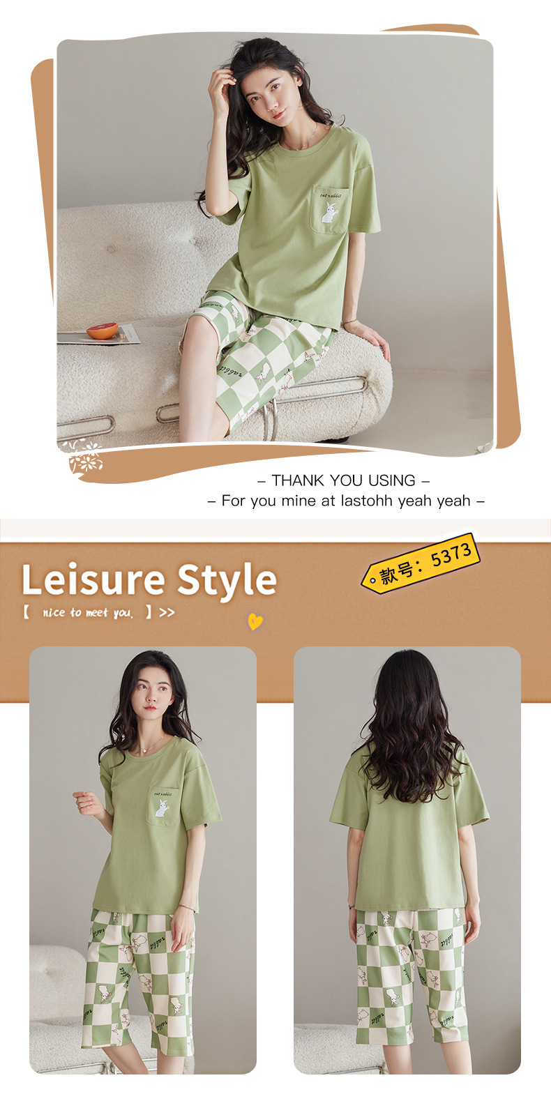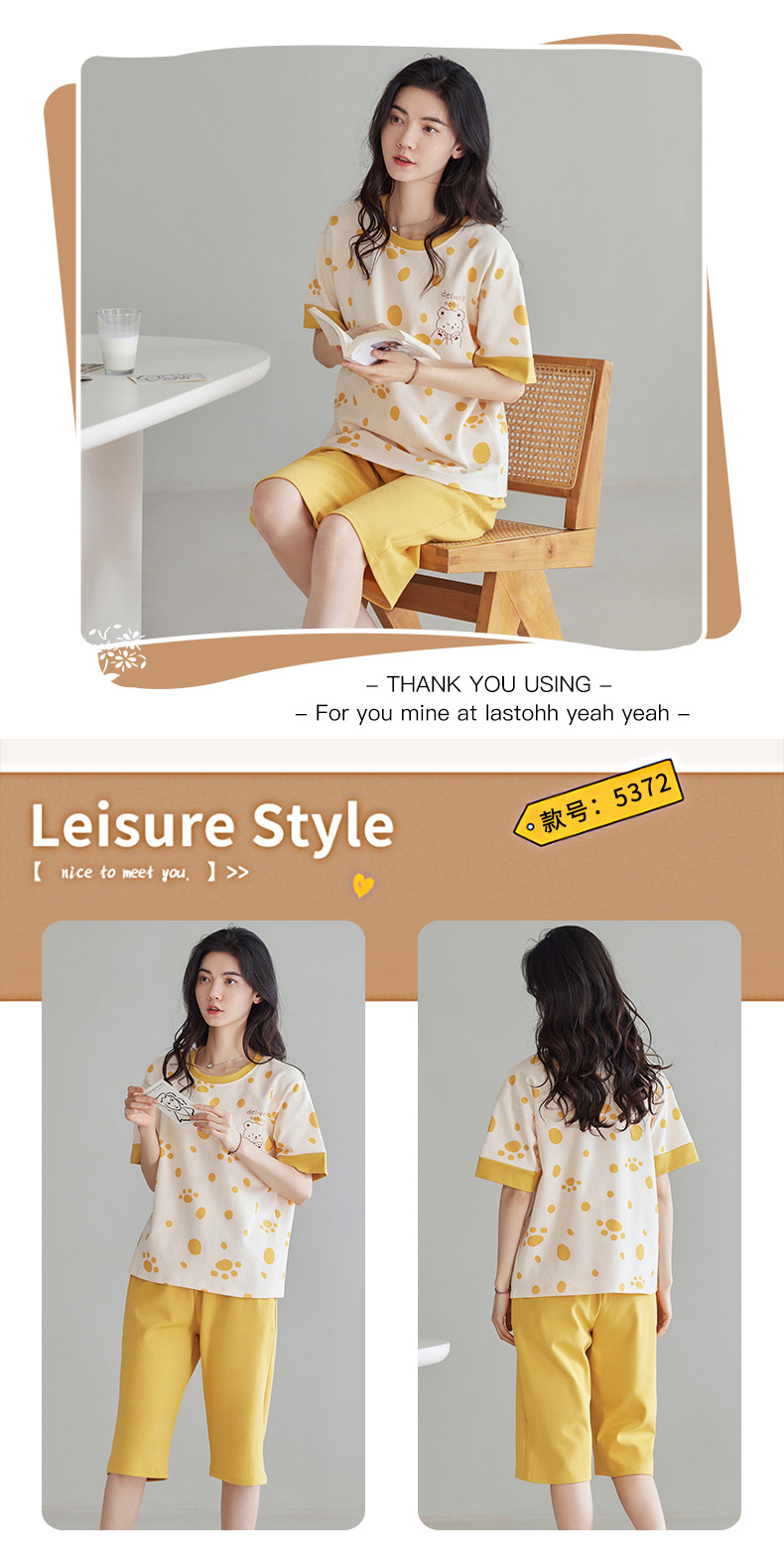 2025 순면 잠옷 여성 여름 반팔 세트 달콤하고 캐주얼한 심플한 7부 바지 편안한 홈웨어 외출복으로도 가능