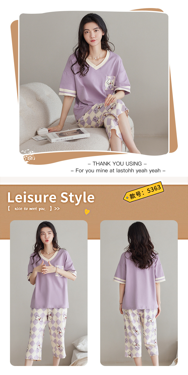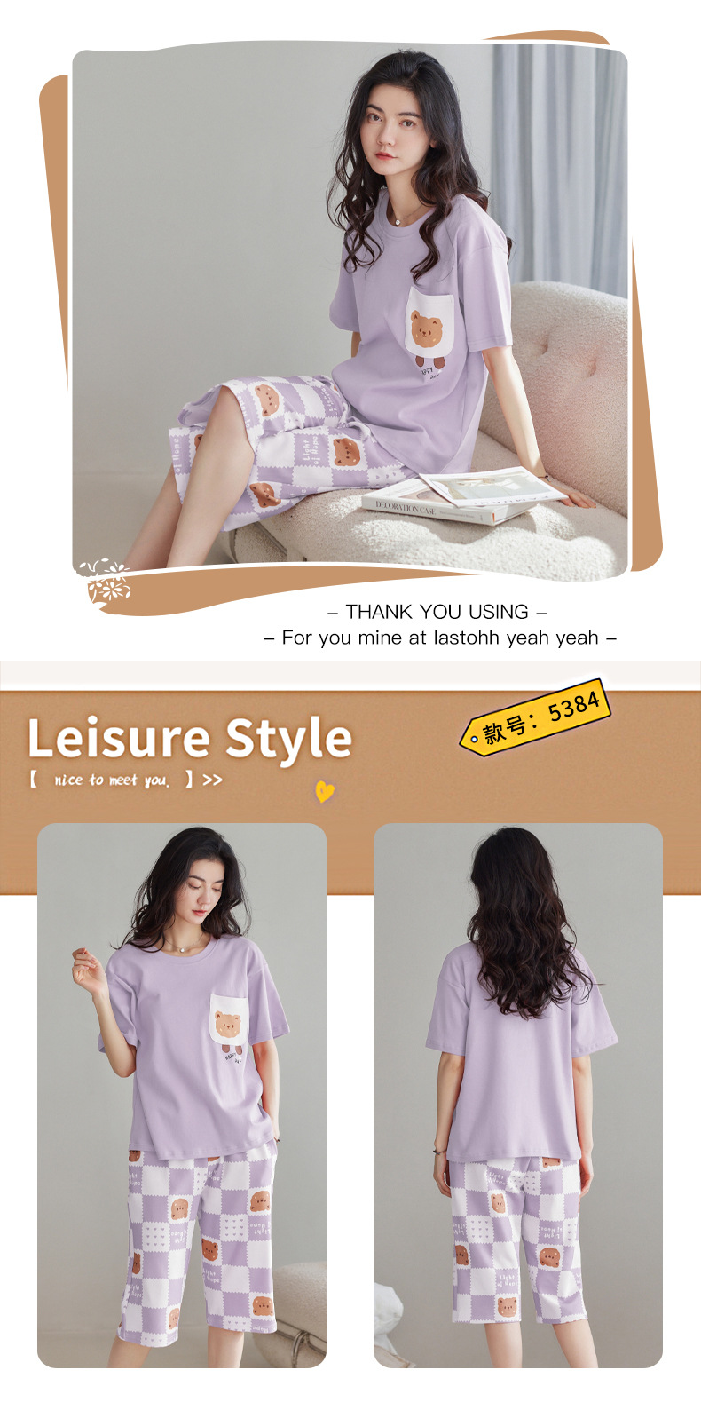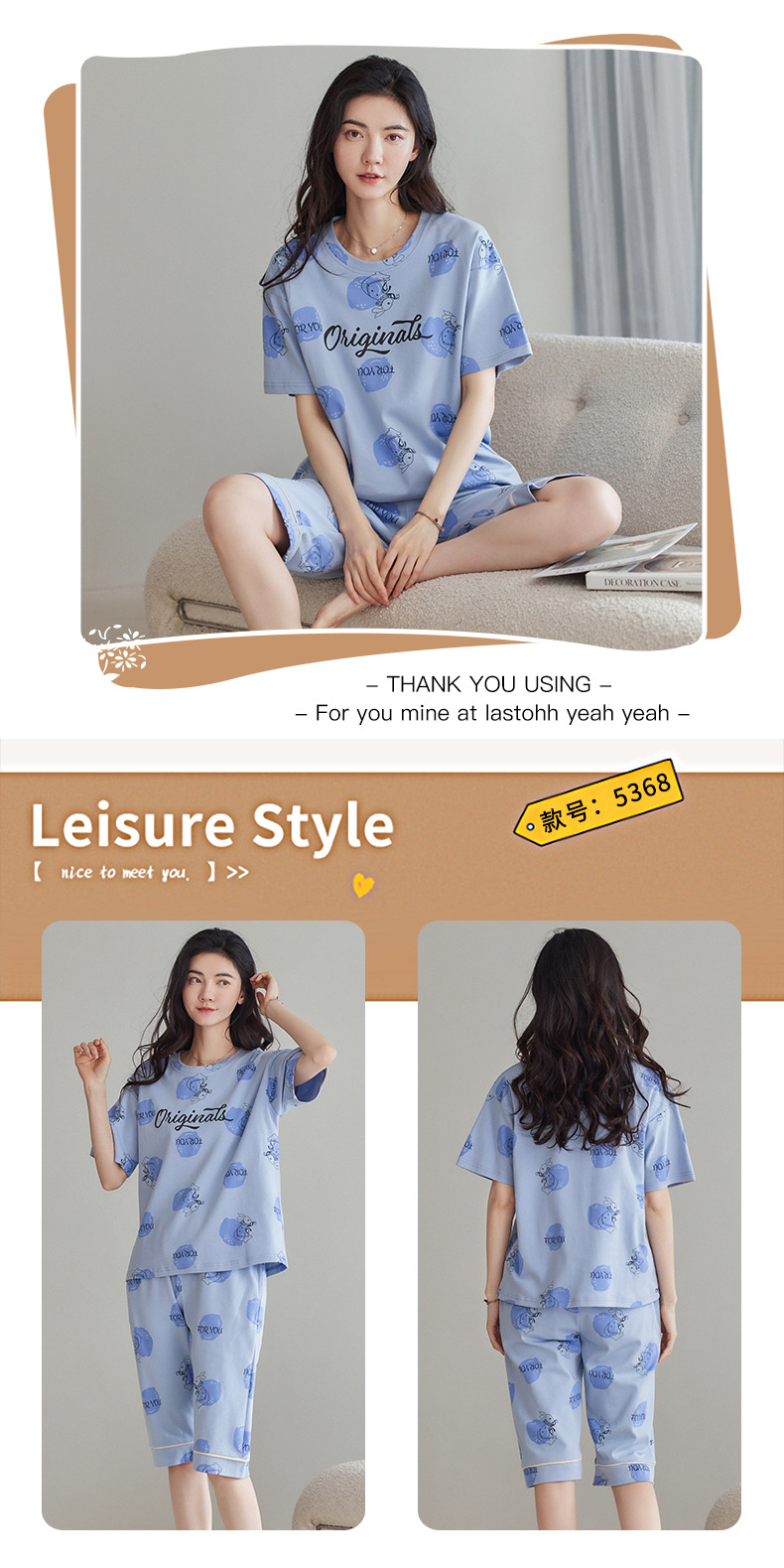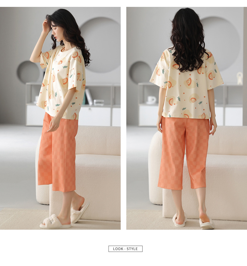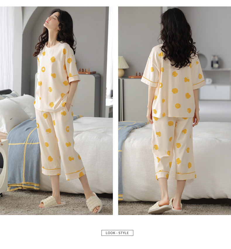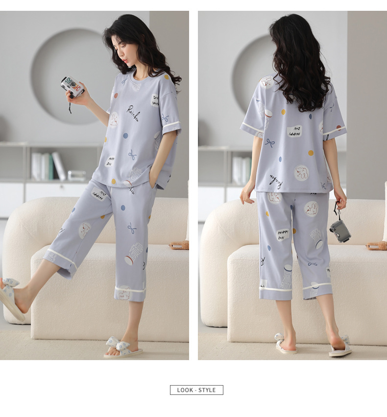 2025 순면 잠옷 여성 여름 반팔 세트 달콤하고 캐주얼한 심플한 7부 바지 편안한 홈웨어 외출복으로도 가능스토어 가기