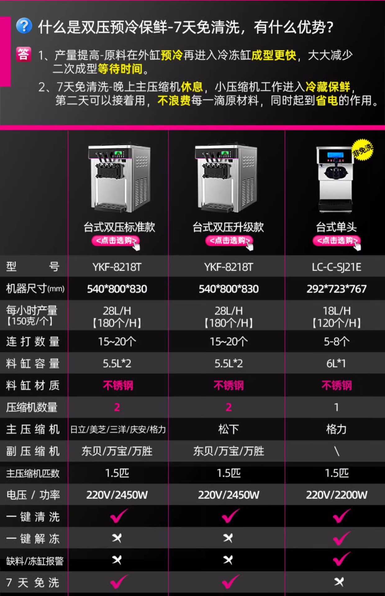 • 수직 YKF-8228H (사전 냉각/이중 압력/7 일 청소 없음)