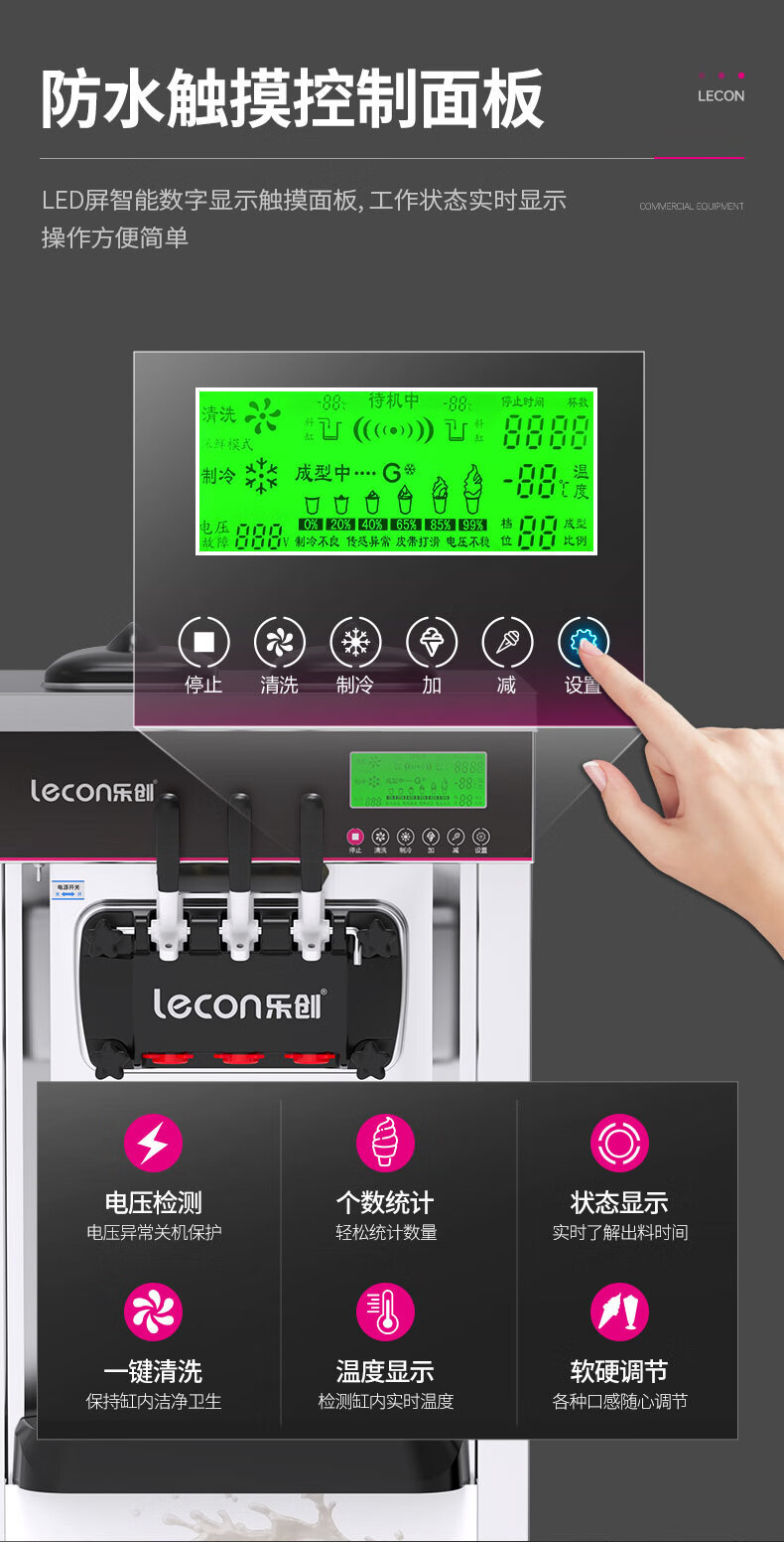 LeChuang 아이스크림 기계 상업용 콘 아이스크림 기계 스테인레스 수직 데스크탑 자동 소프트 아이스크림 기계스토어 가기