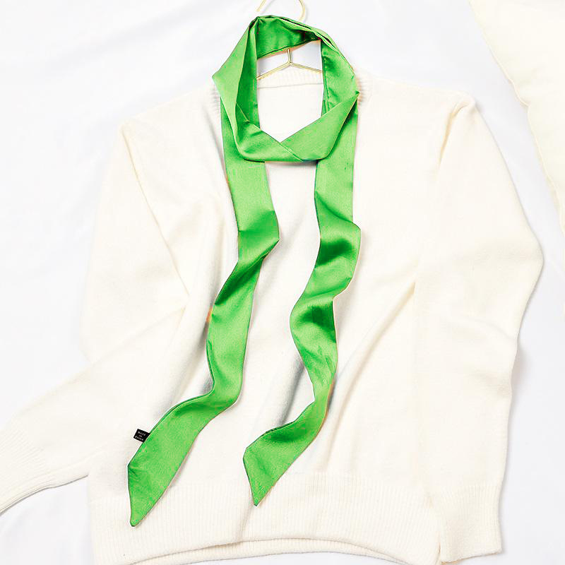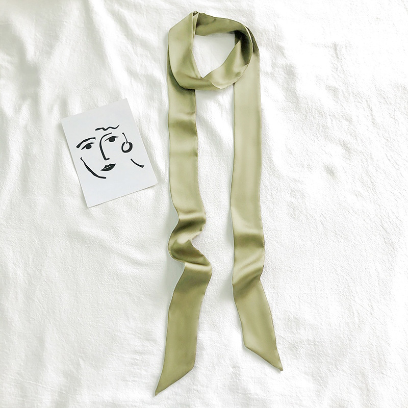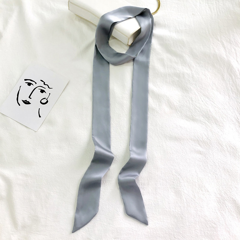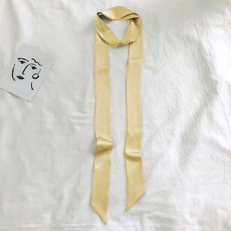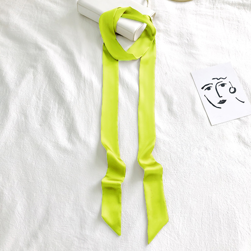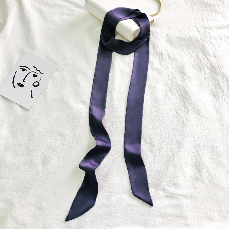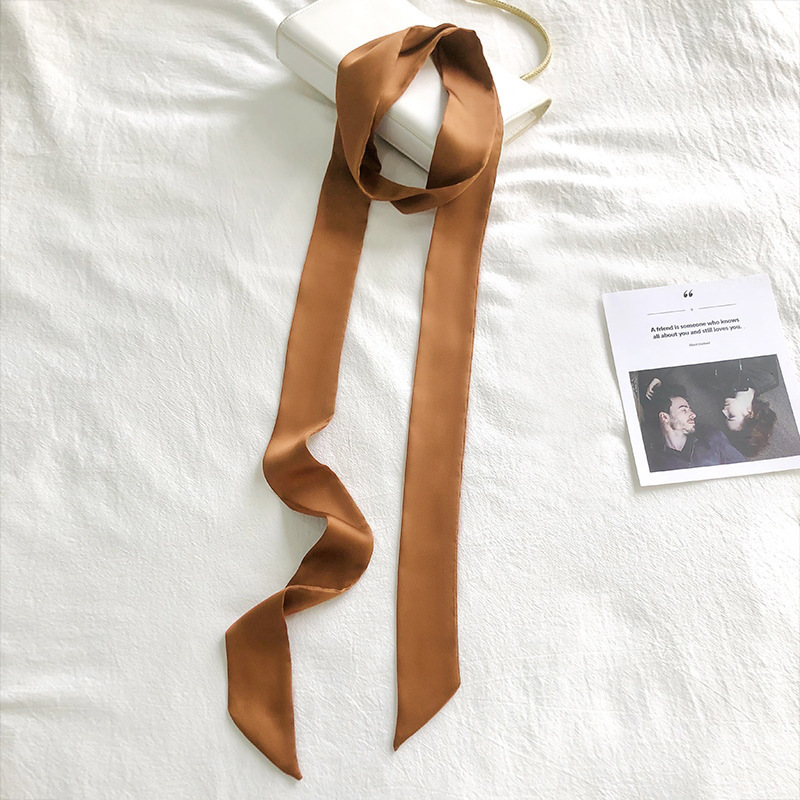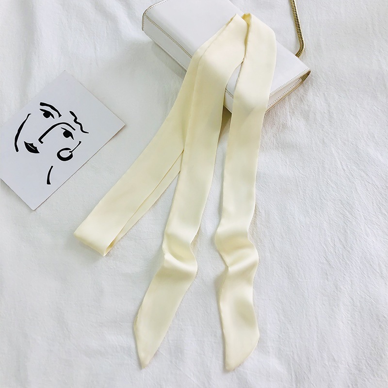 단색 긴 작은 실크 스카프 리본 넥타이 가방 핸들 실크 스카프 넥타이 머리 작은 리본 장식 스카프 머리 선도
